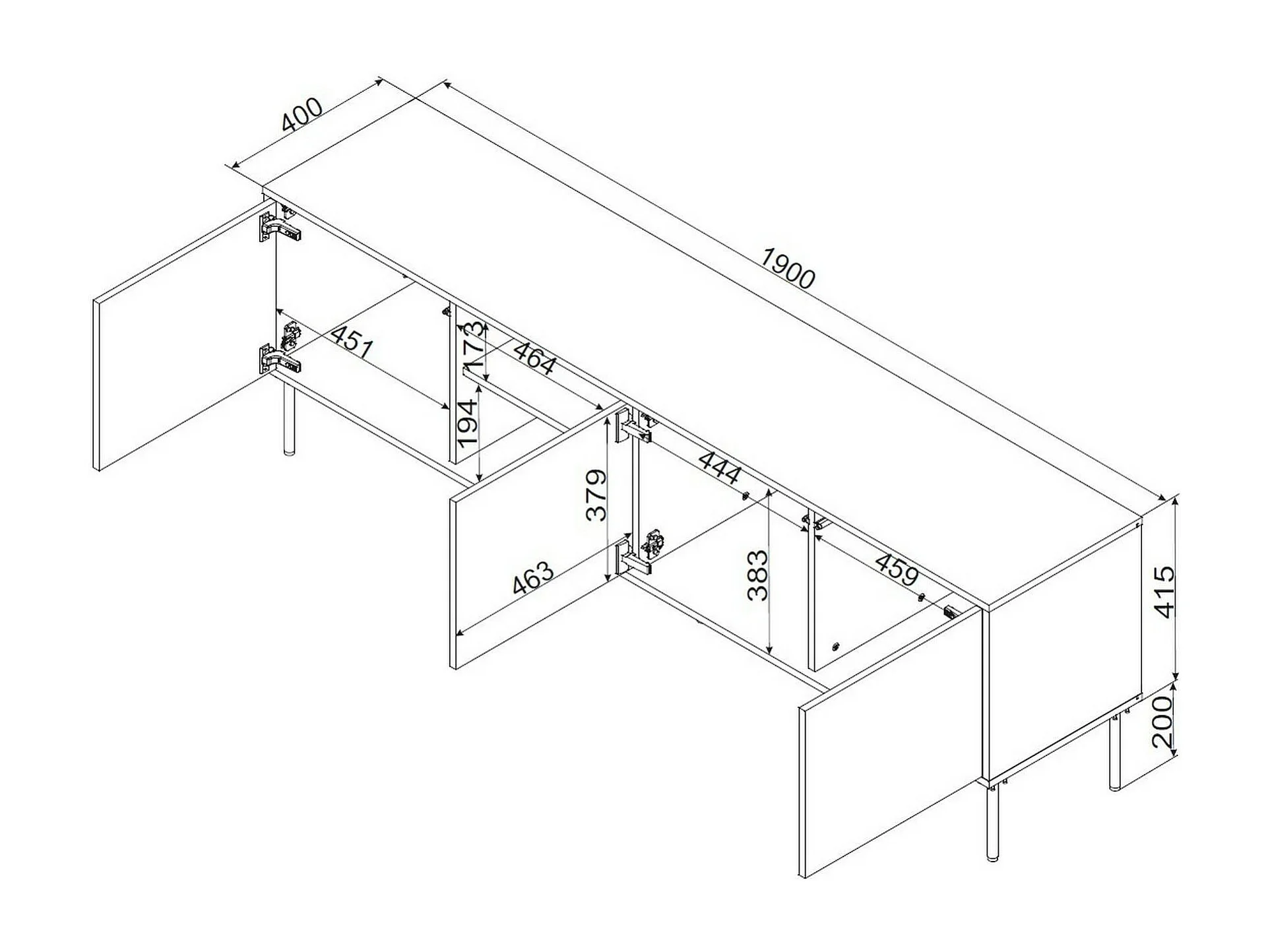 Mobile Porta tv Feira, 2 Ripiani, 40x190x61.5h cm Nero