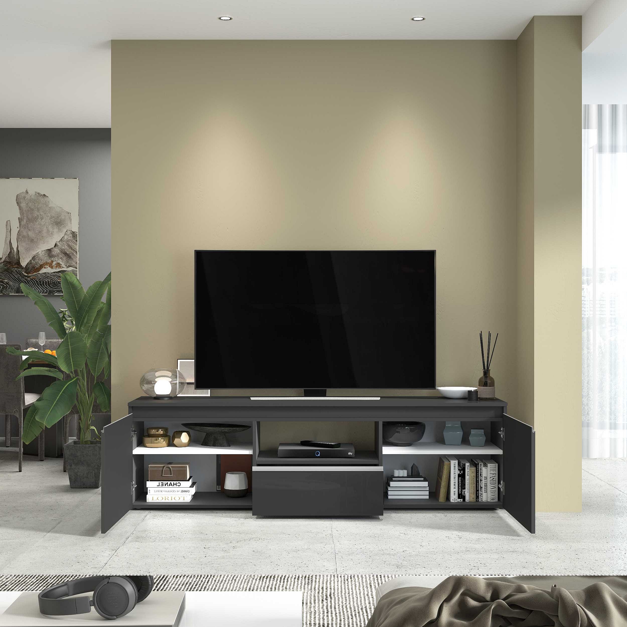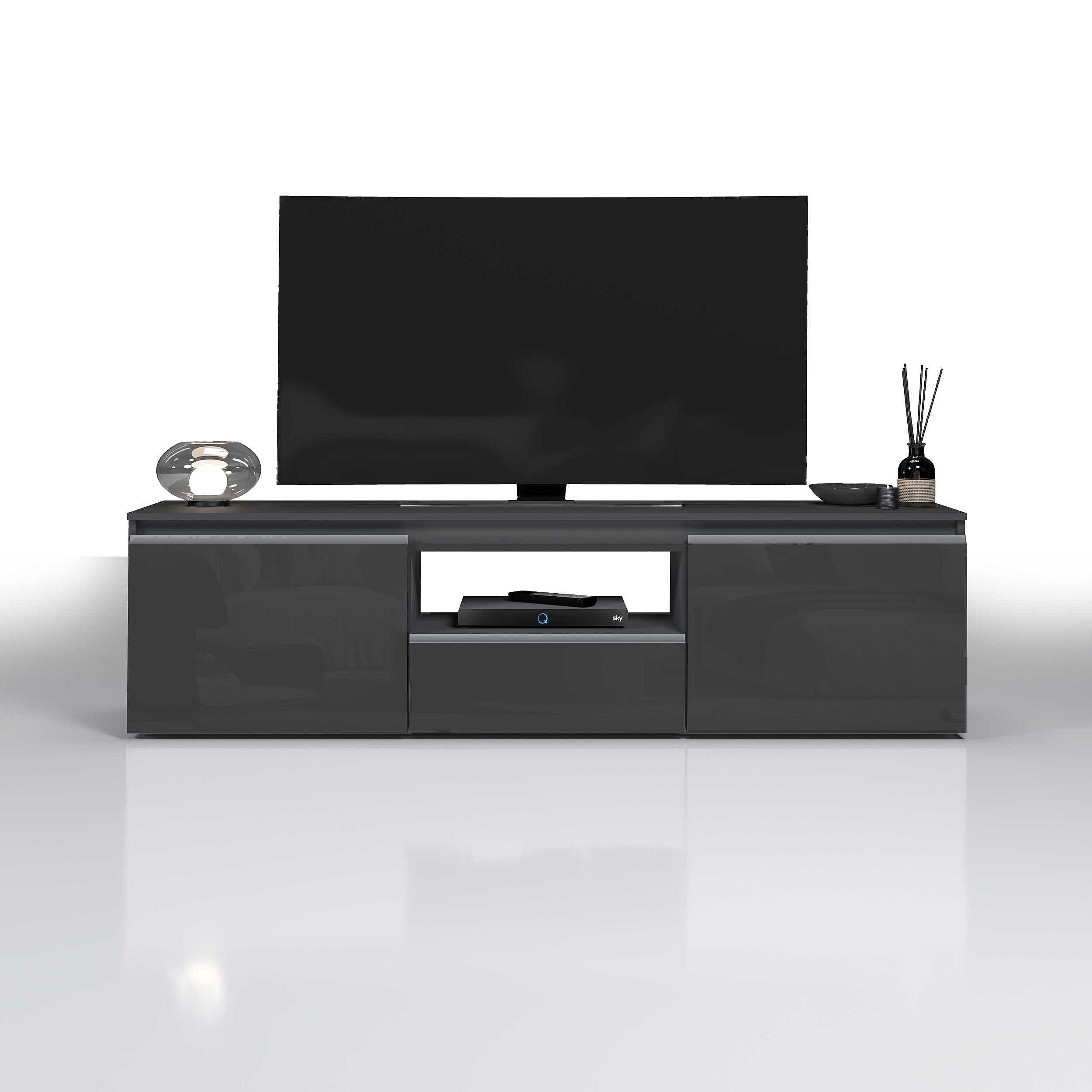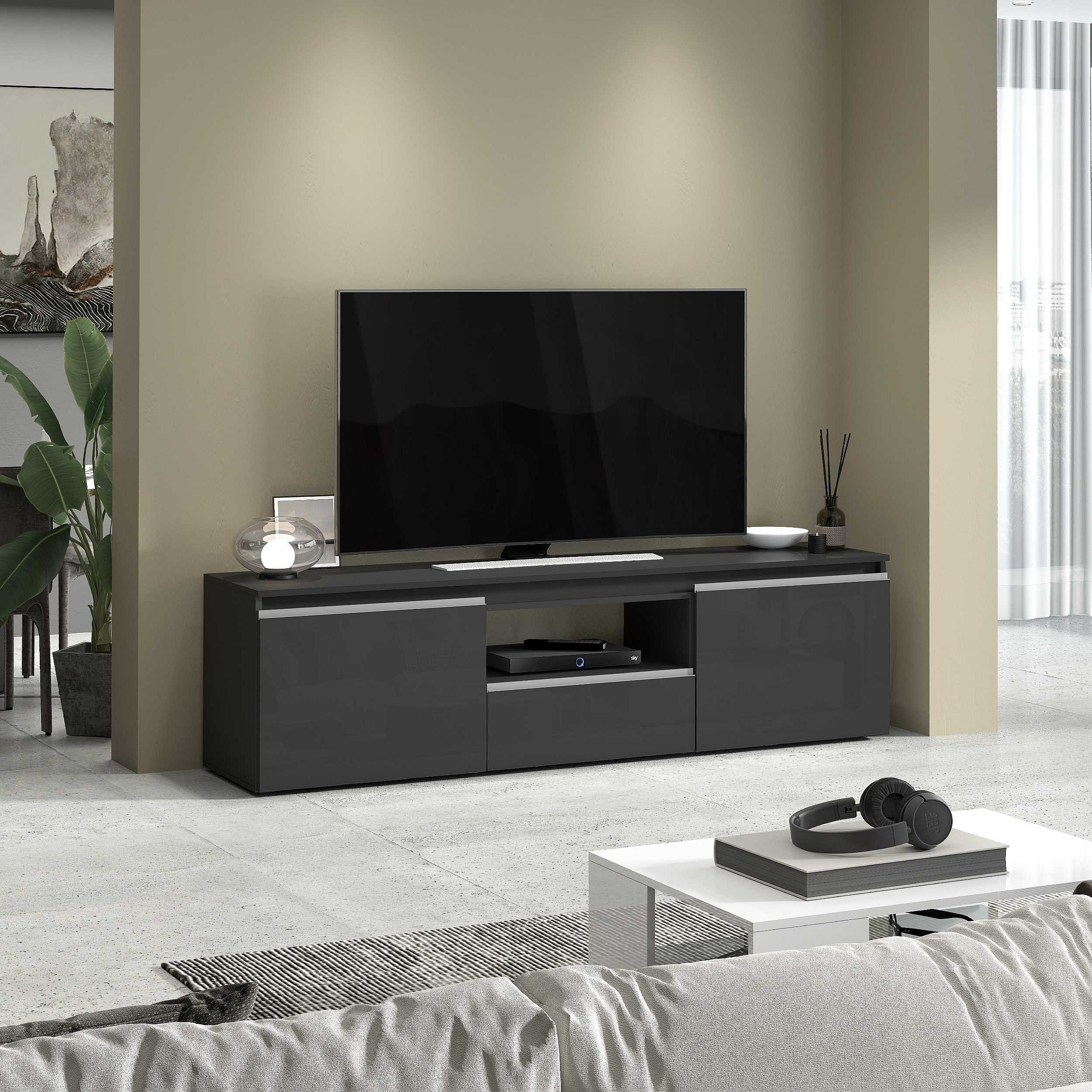 Mobile porta tv Magic a 2 ante e 1 cassetto antracite lucido 180x40x50 cm
