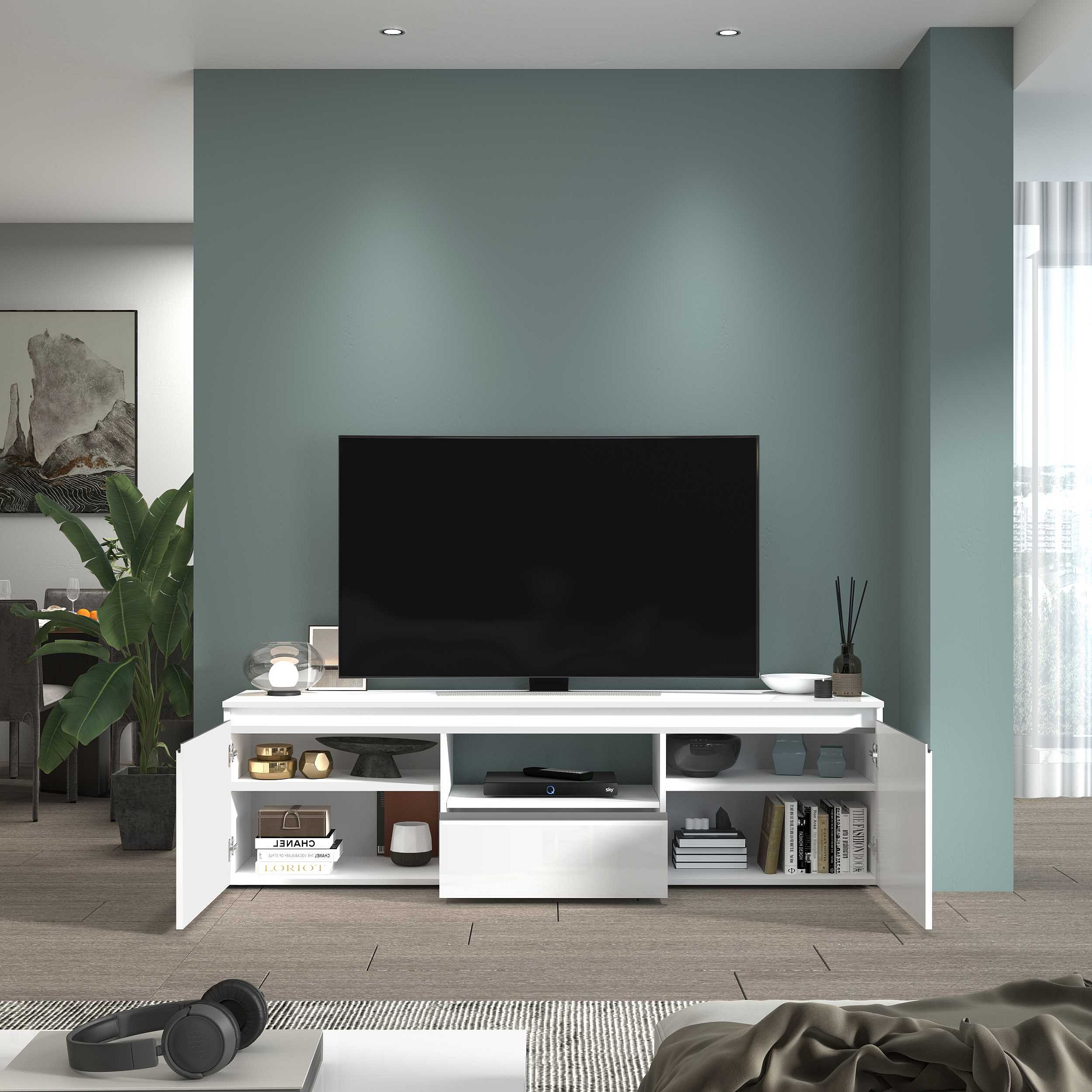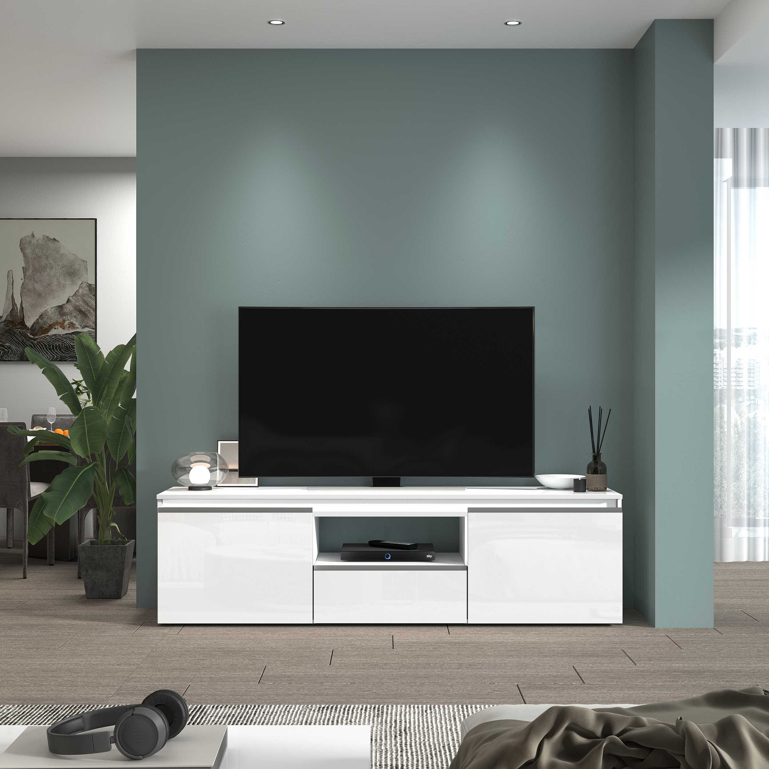 Mobile porta tv Magic a 2 ante e 1 cassetto bianco lucido 180x40x50 cm