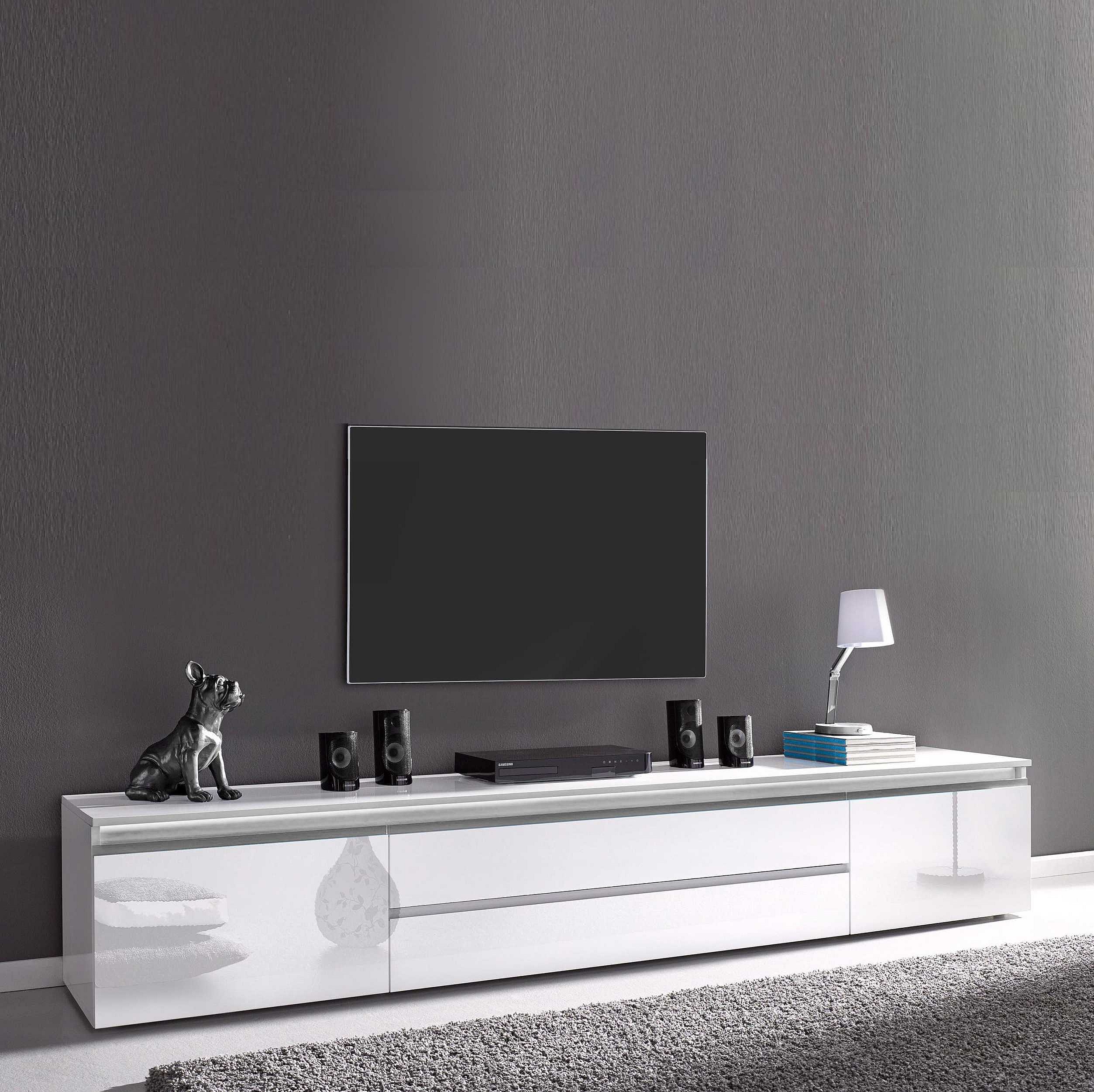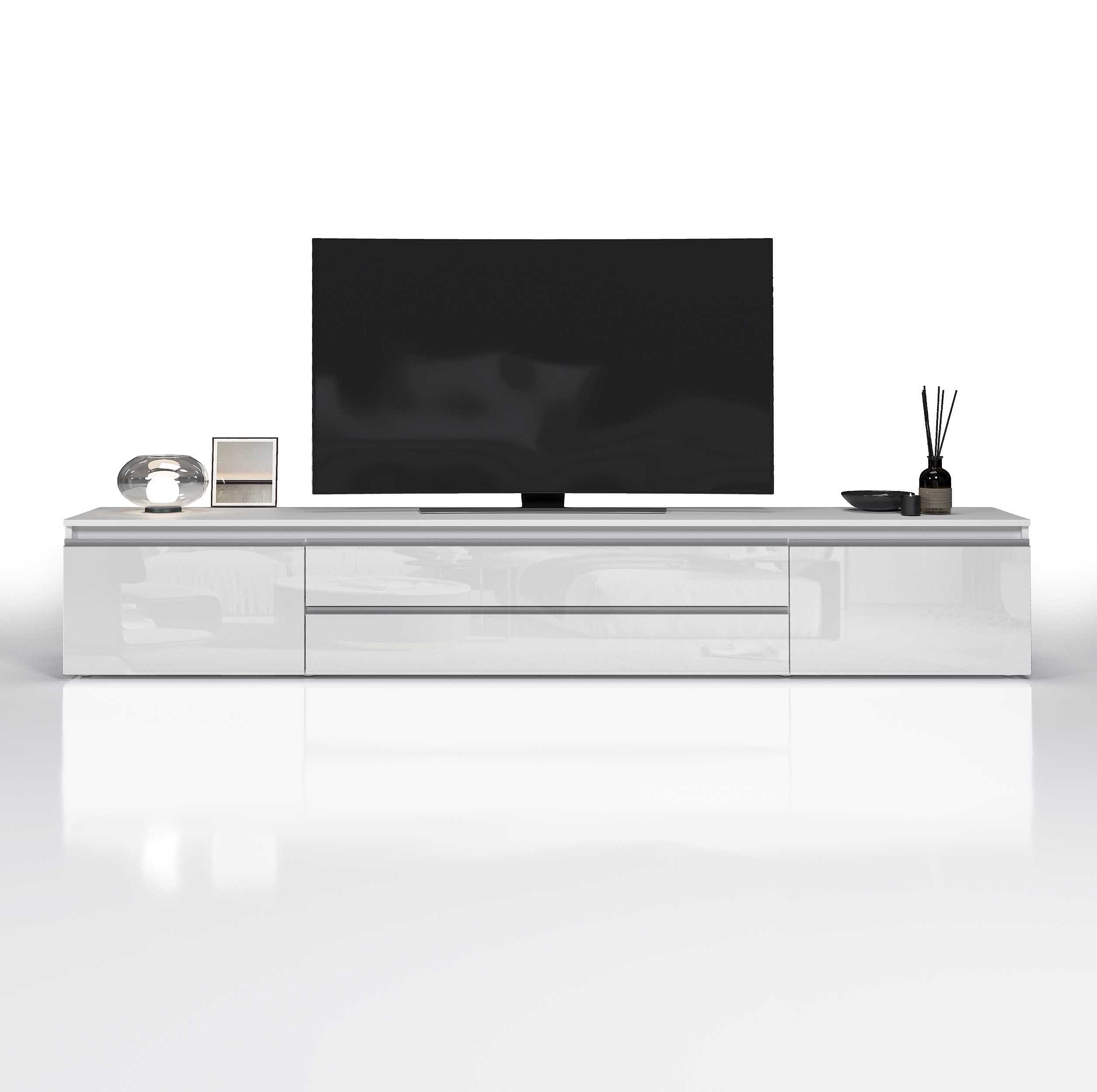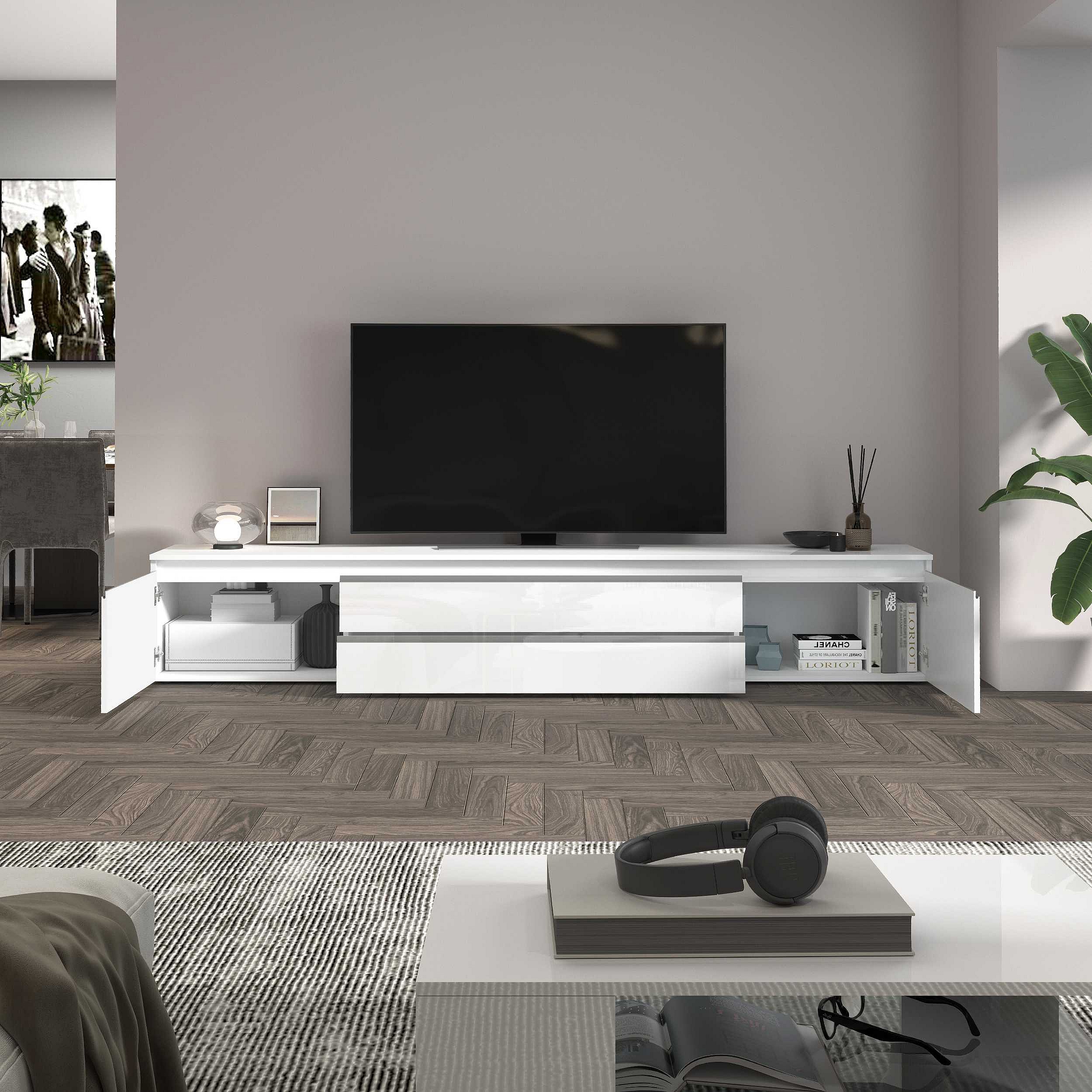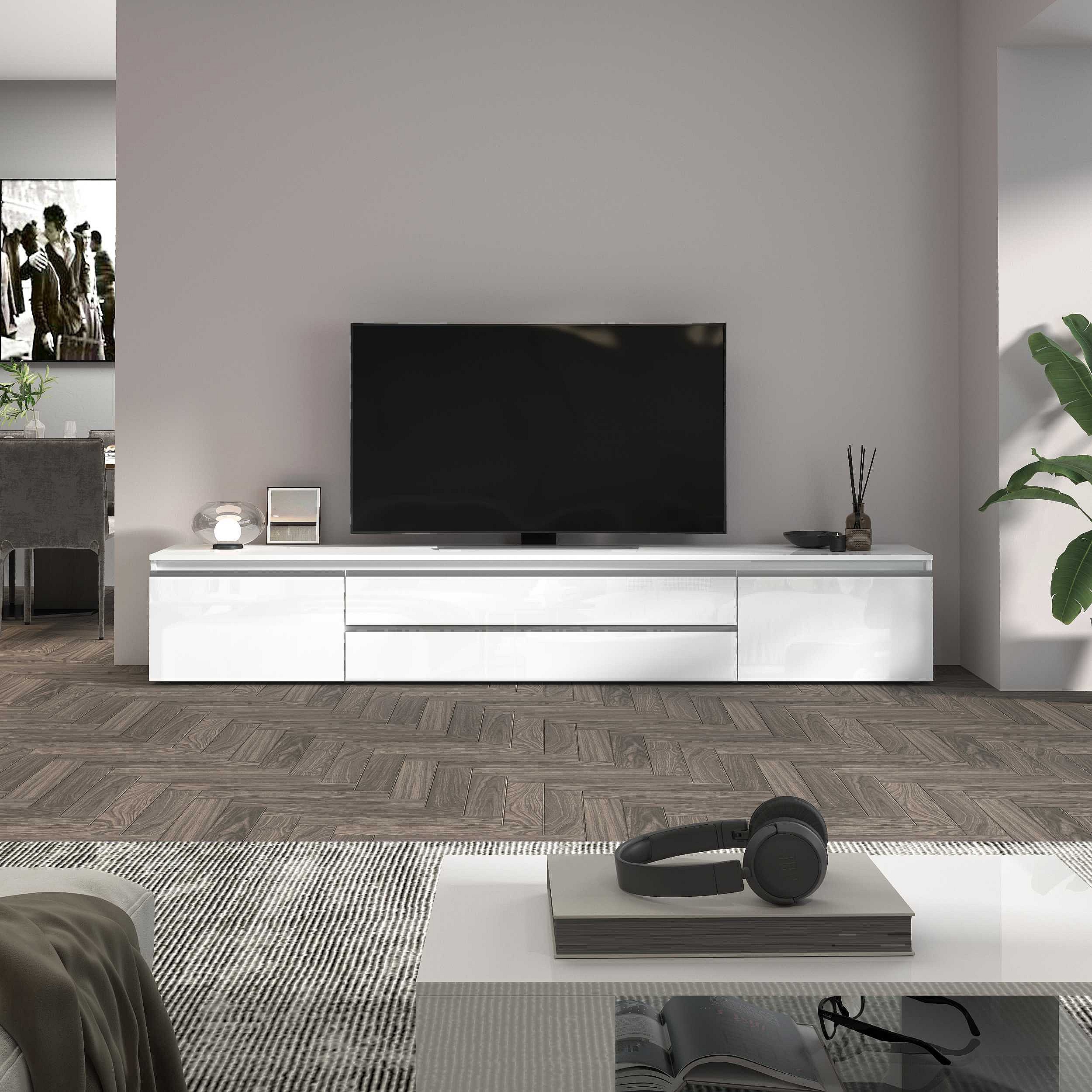 Mobile porta tv Magic a 2 ante e 2 cassetti bianco lucido 240x40x40 cm