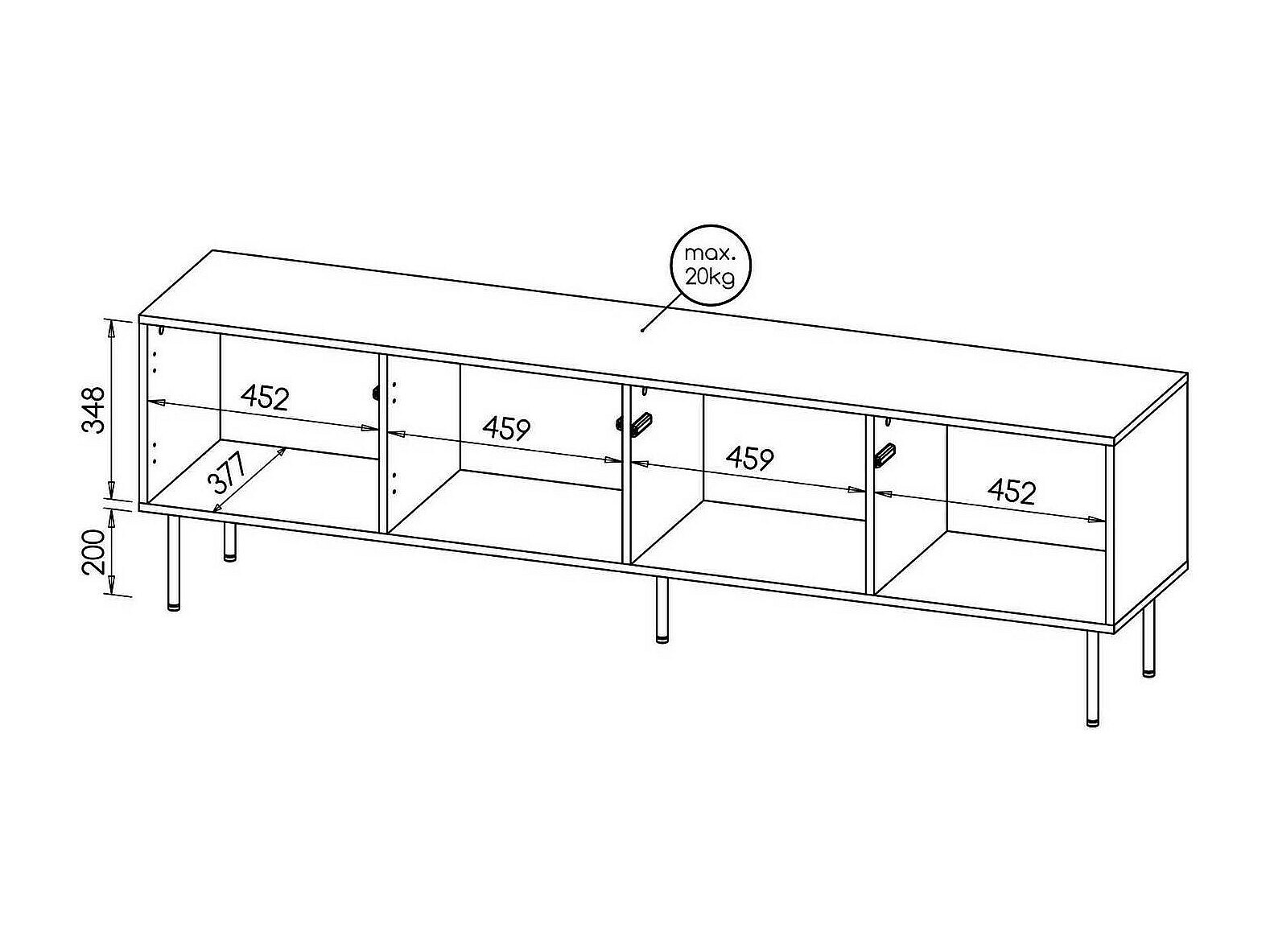 Mobile porta TV Marea, Madia da salotto con quattro ante battenti, Rialzato da terra, 190x40 h58 cm, Noce