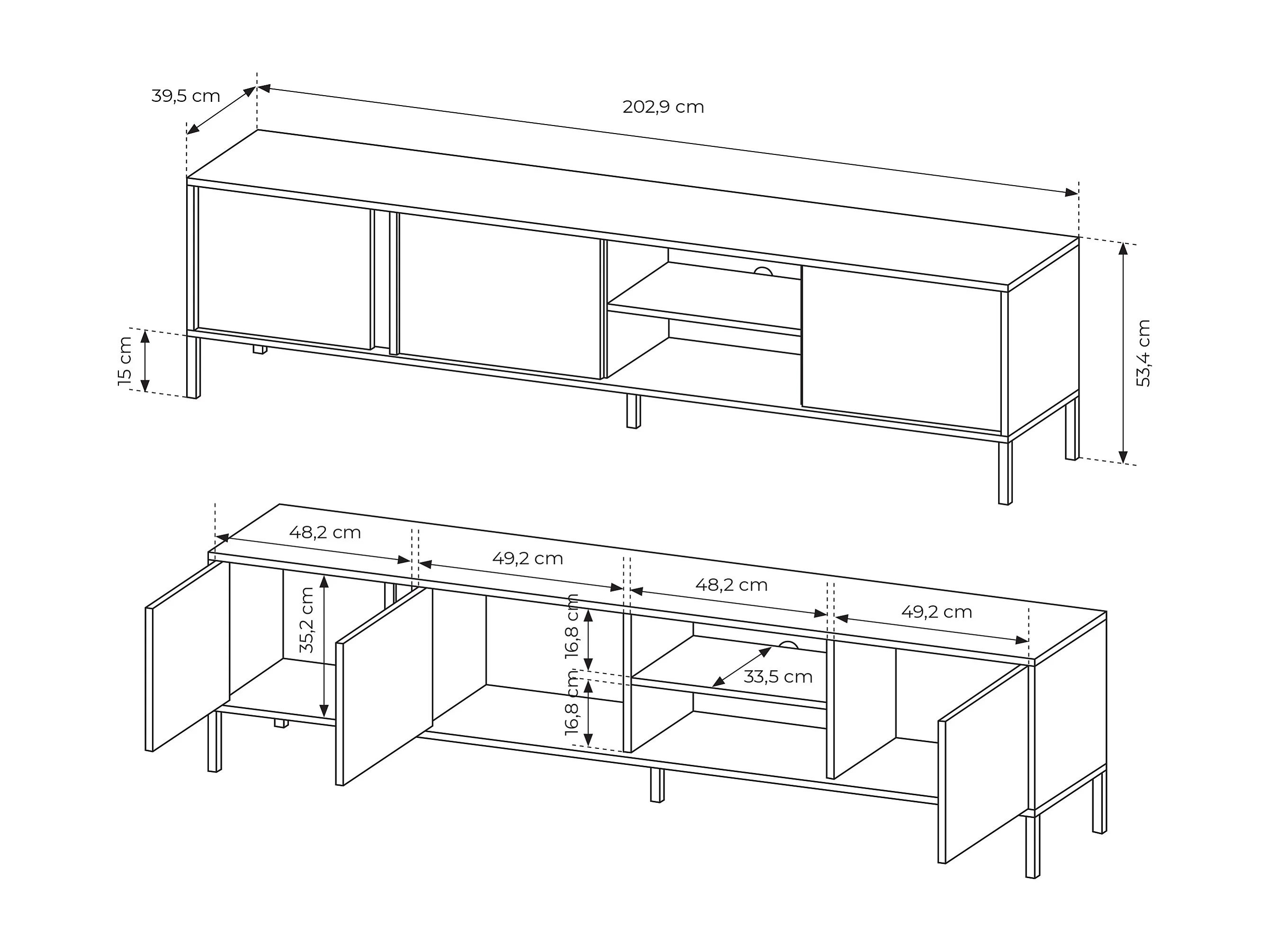 Mobile porta tv moderno con luce LED 203x53cm beige PTVLK4