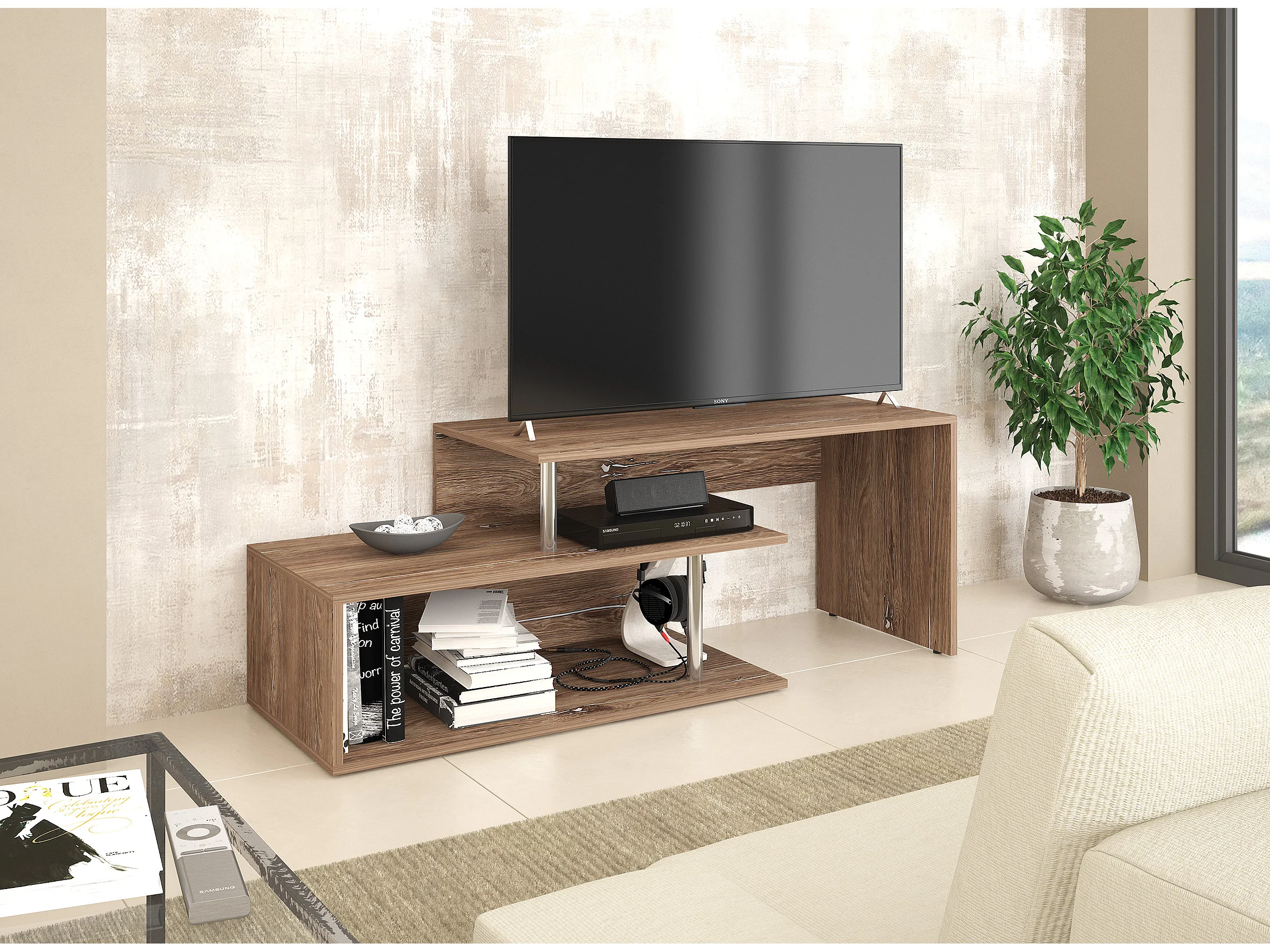 Mobile porta TV design effetto legno con mensola PTI11 138x46 noce ed antracite