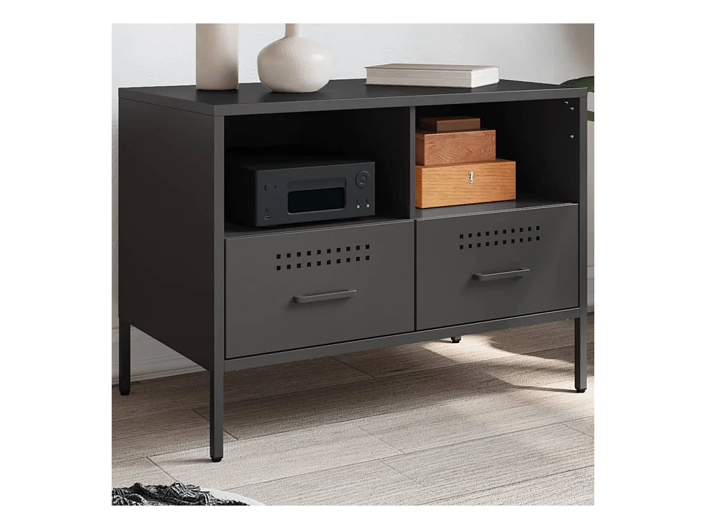 Mobile porta TV nero 68x39x43,5 cm in acciaio laminato a freddo