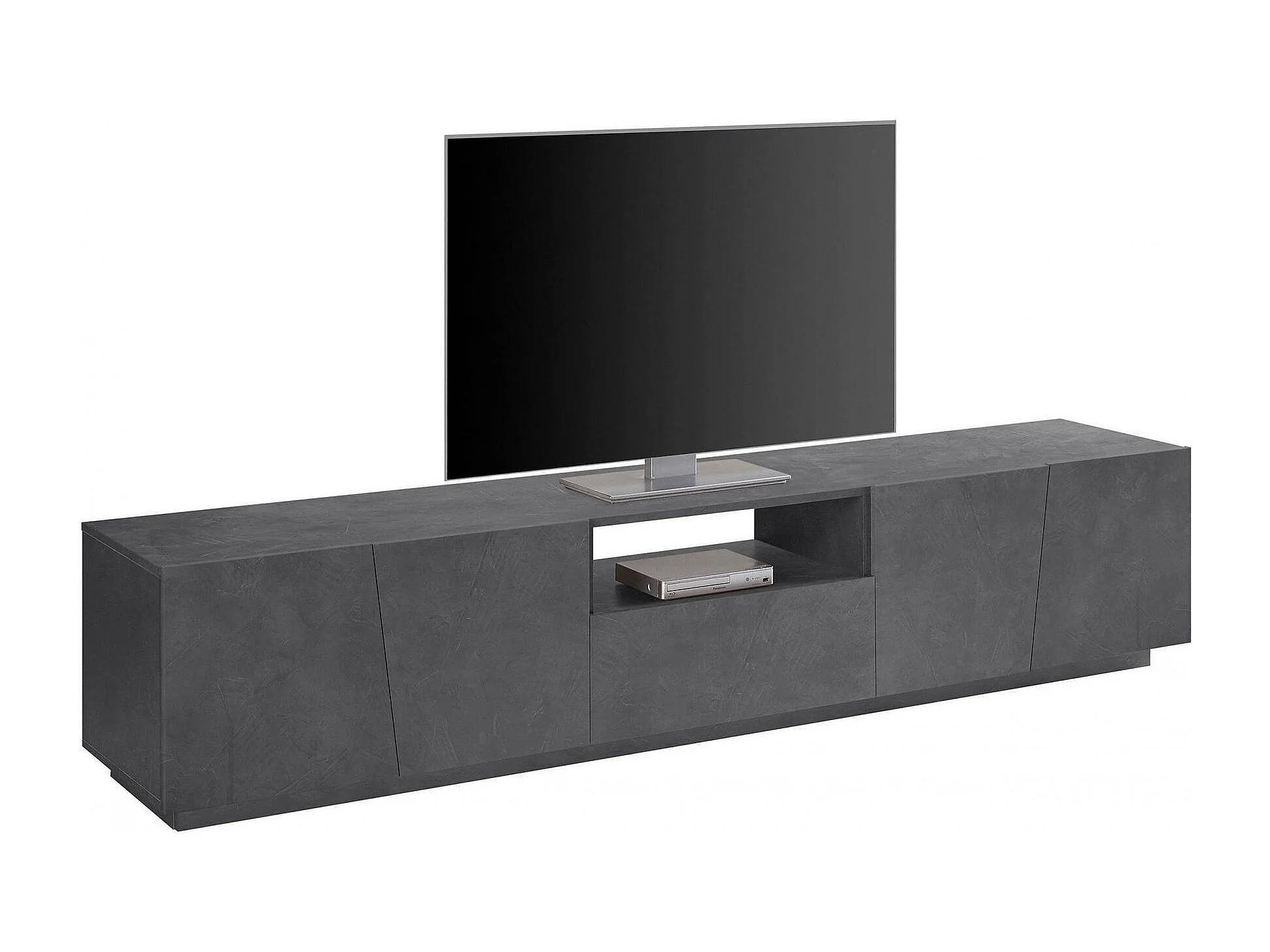 Mobile porta TV Paul, Credenza bassa da soggiorno, Base porta televisione, 100% Made in Italy, cm 220x43h46, Ardesia