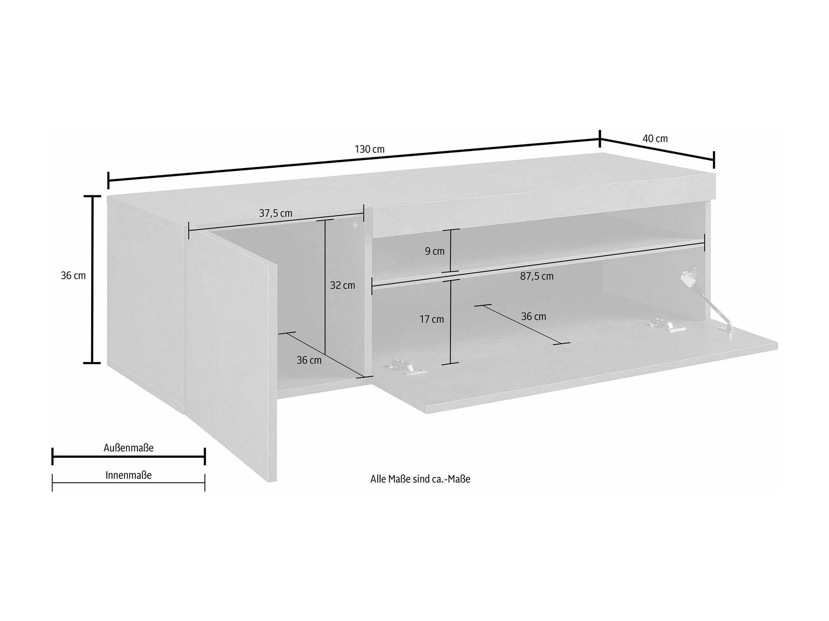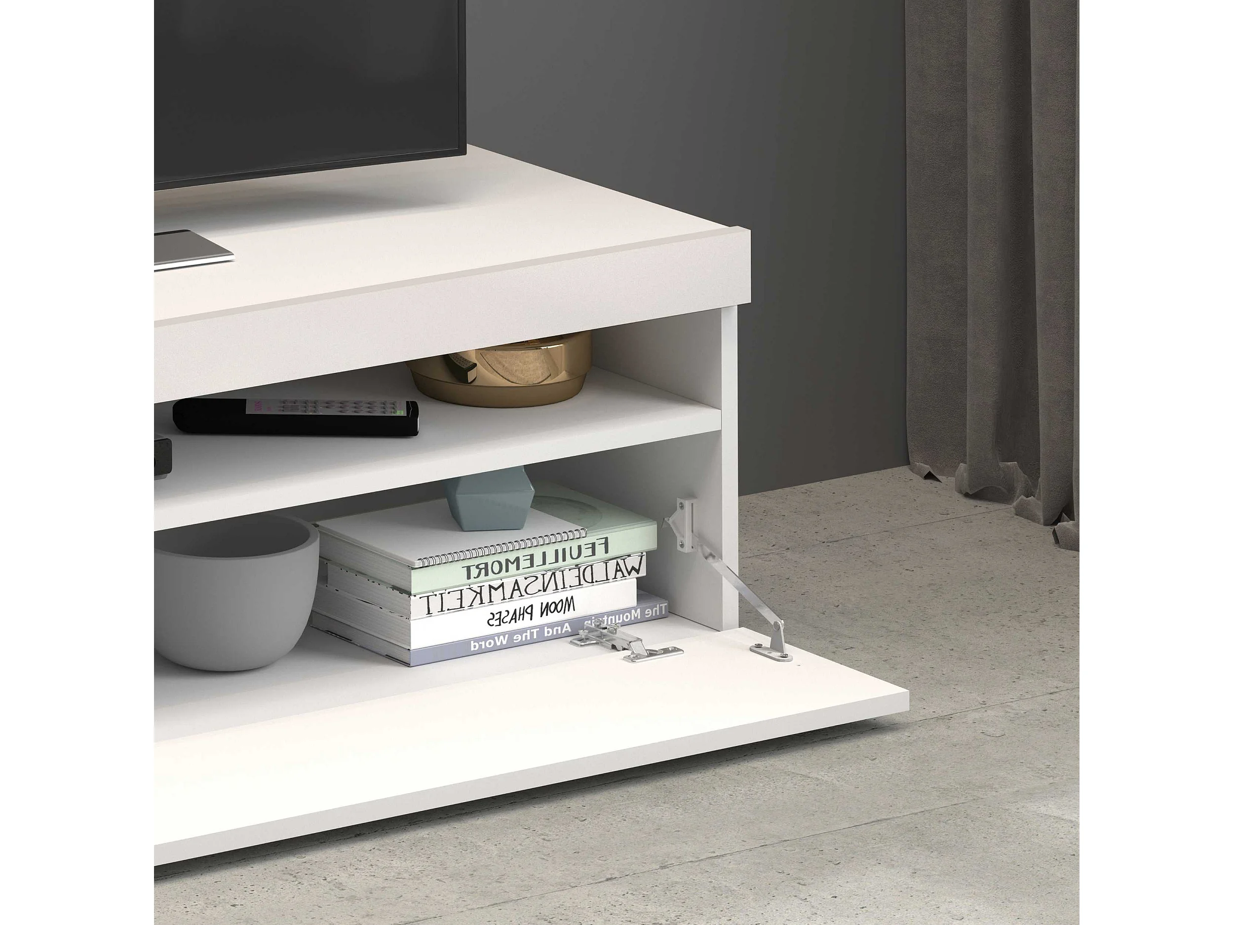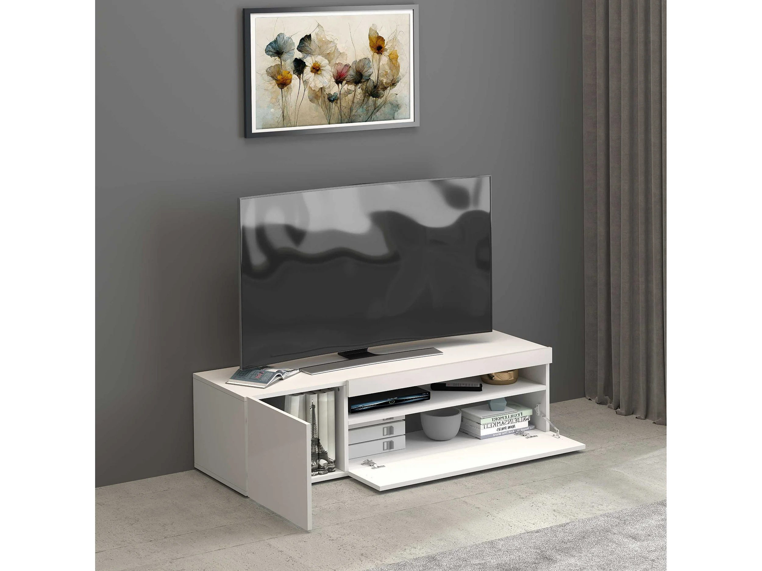 Mobile porta tv Potenza con 1 anta laterale e 1 anta a ribalta bianco lucido 130x40x36 cm