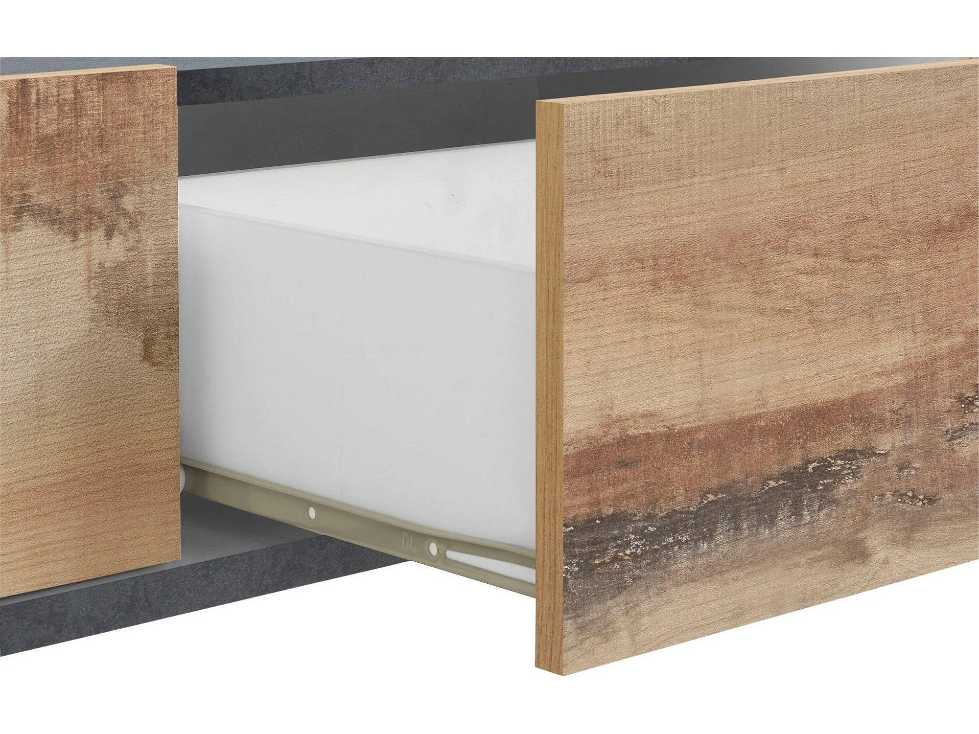 Mobile porta TV Raffaele, Credenza bassa da soggiorno a 2 ante, Base porta televisione, 100% Made in Italy, cm 200x40h47, Ardesia e Acero