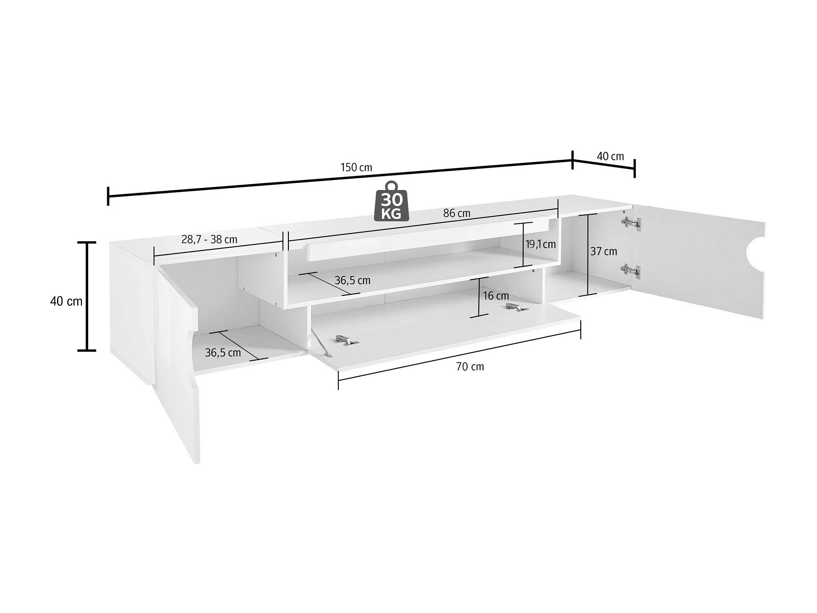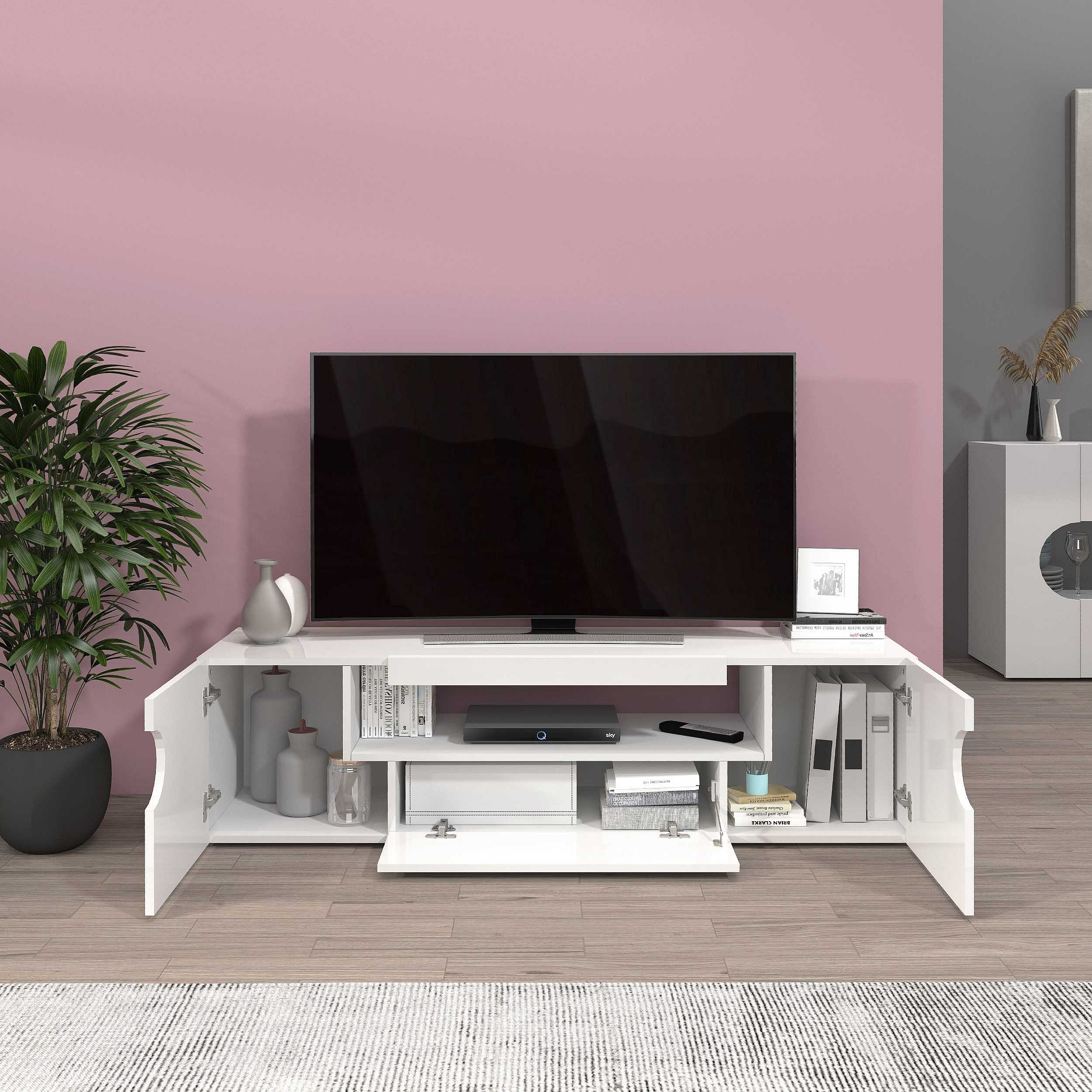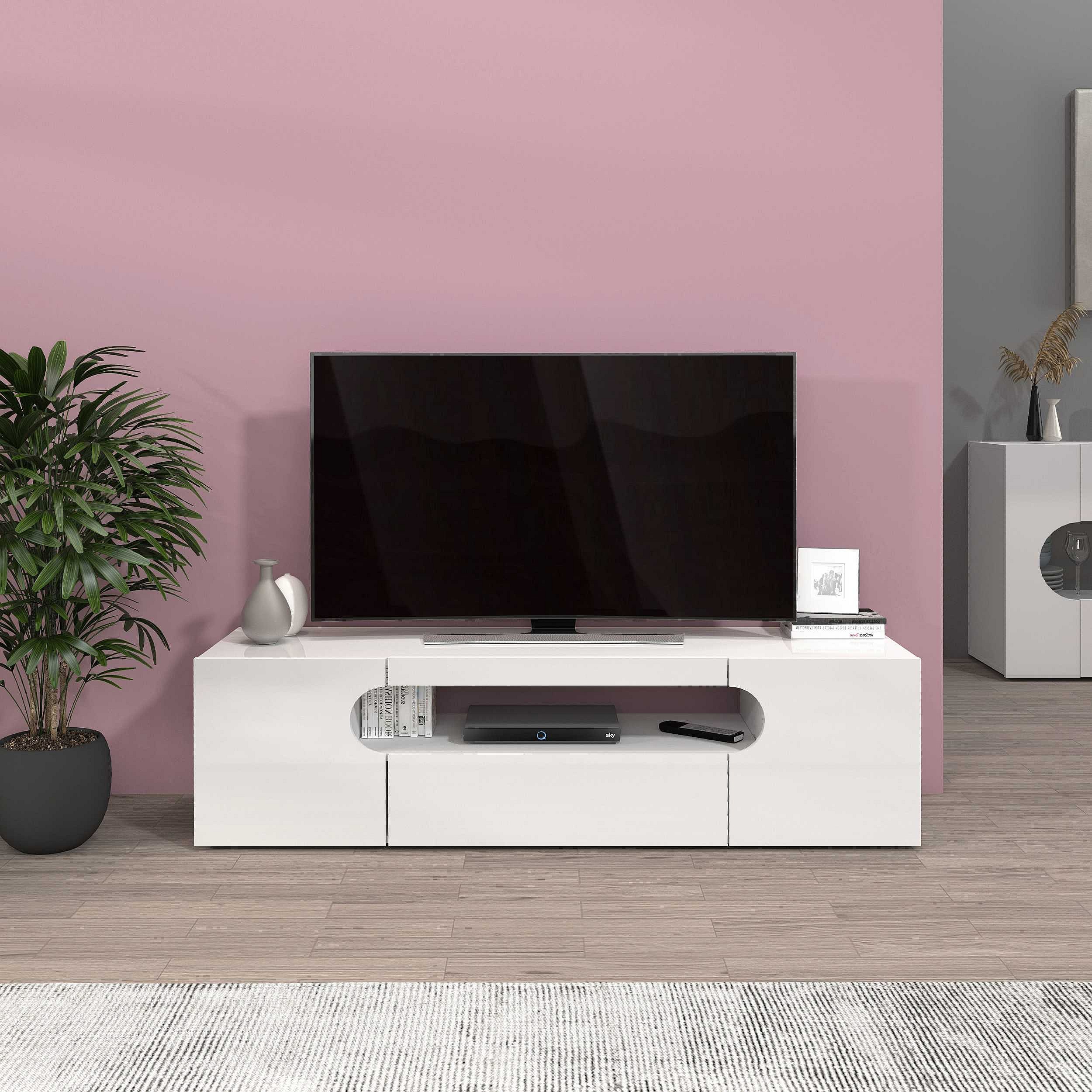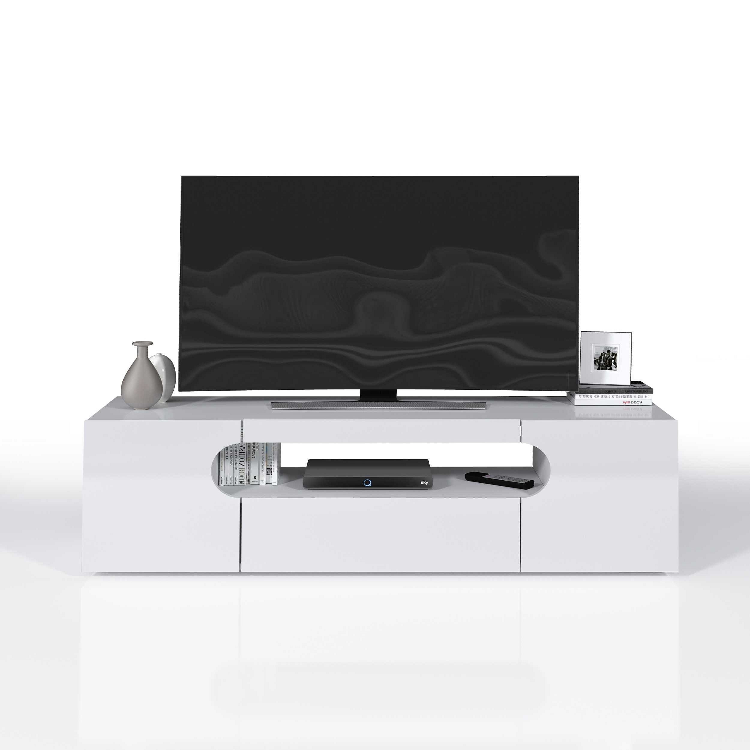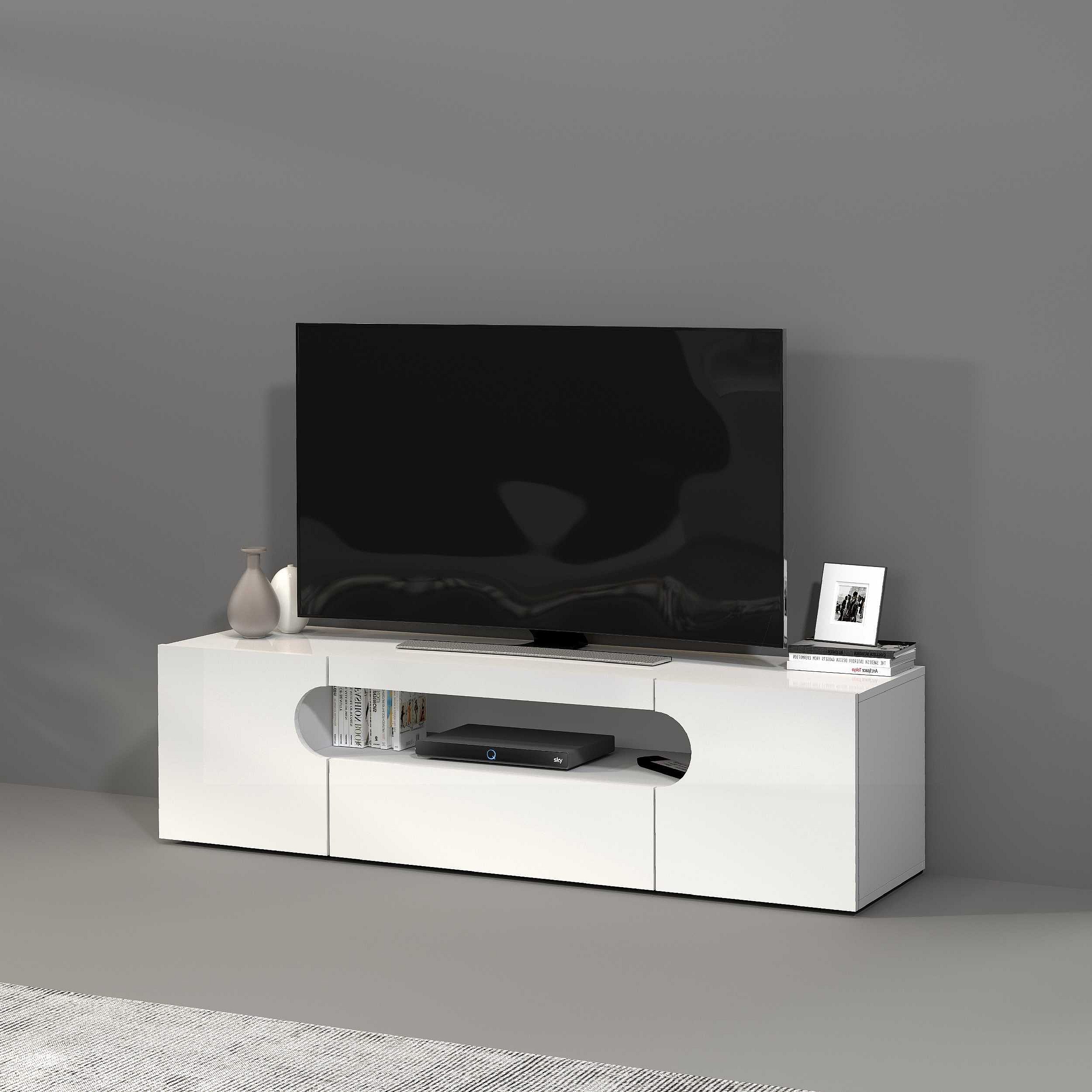 Mobile porta tv Real a 2 ante 1 ribalta e 1 vano aperto bianco lucido 150x40x40 cm