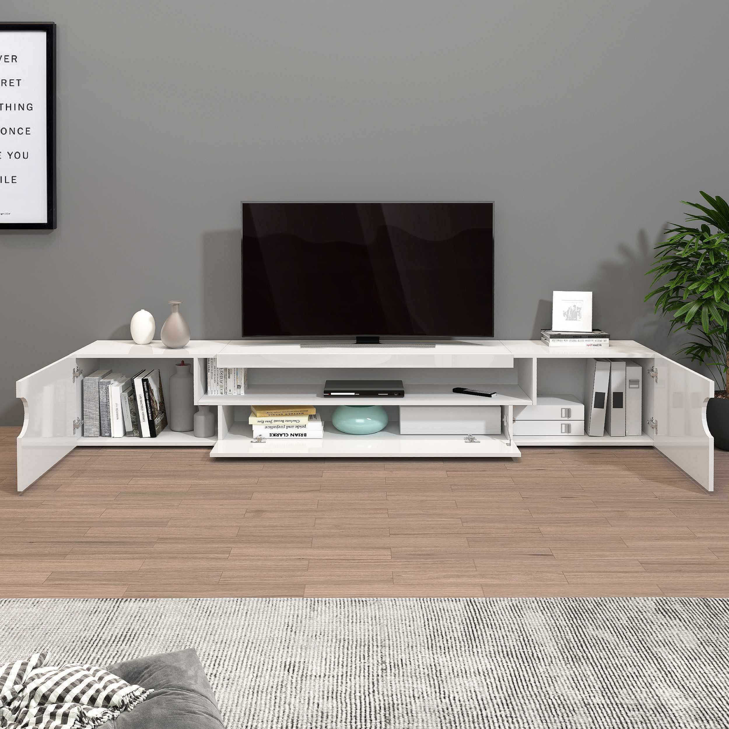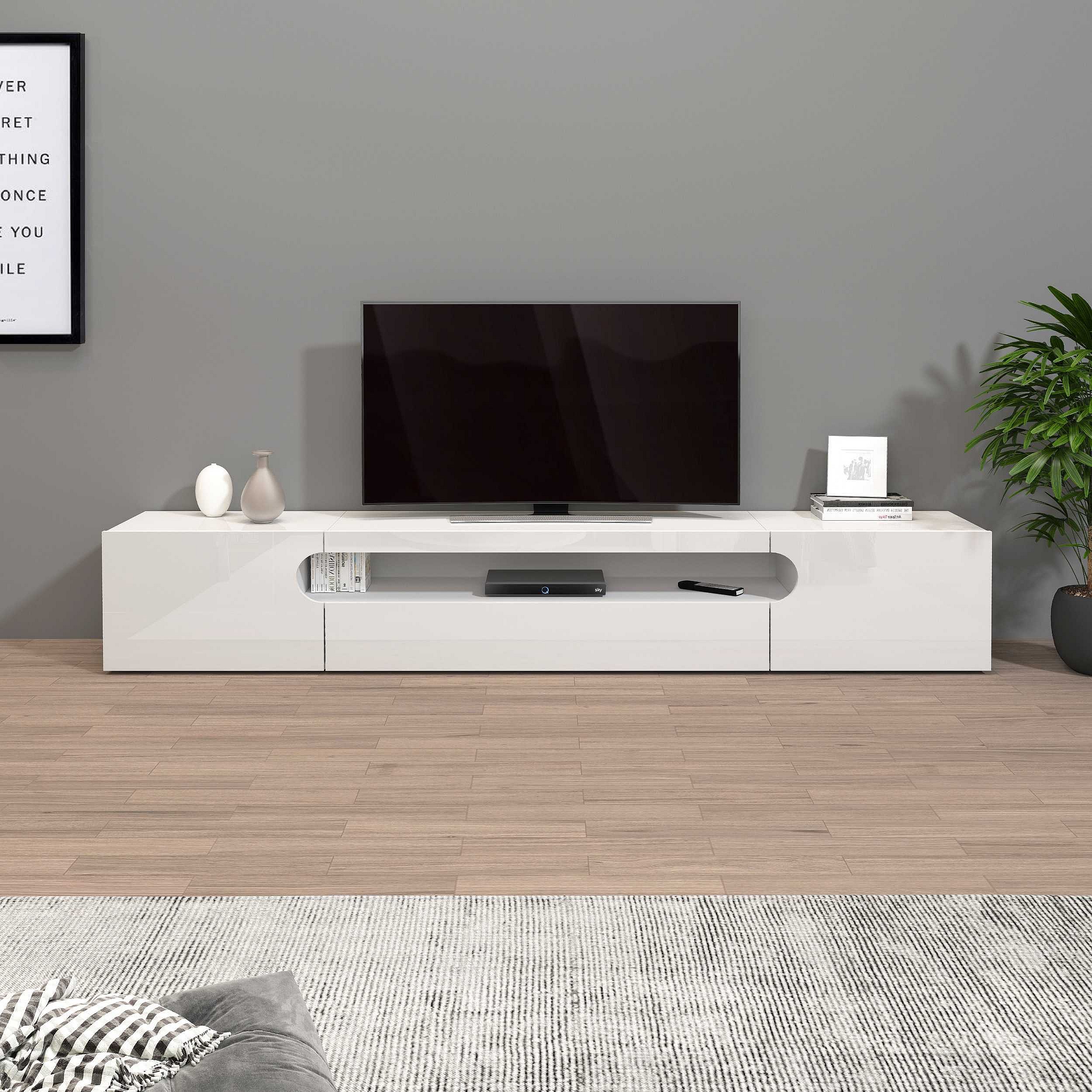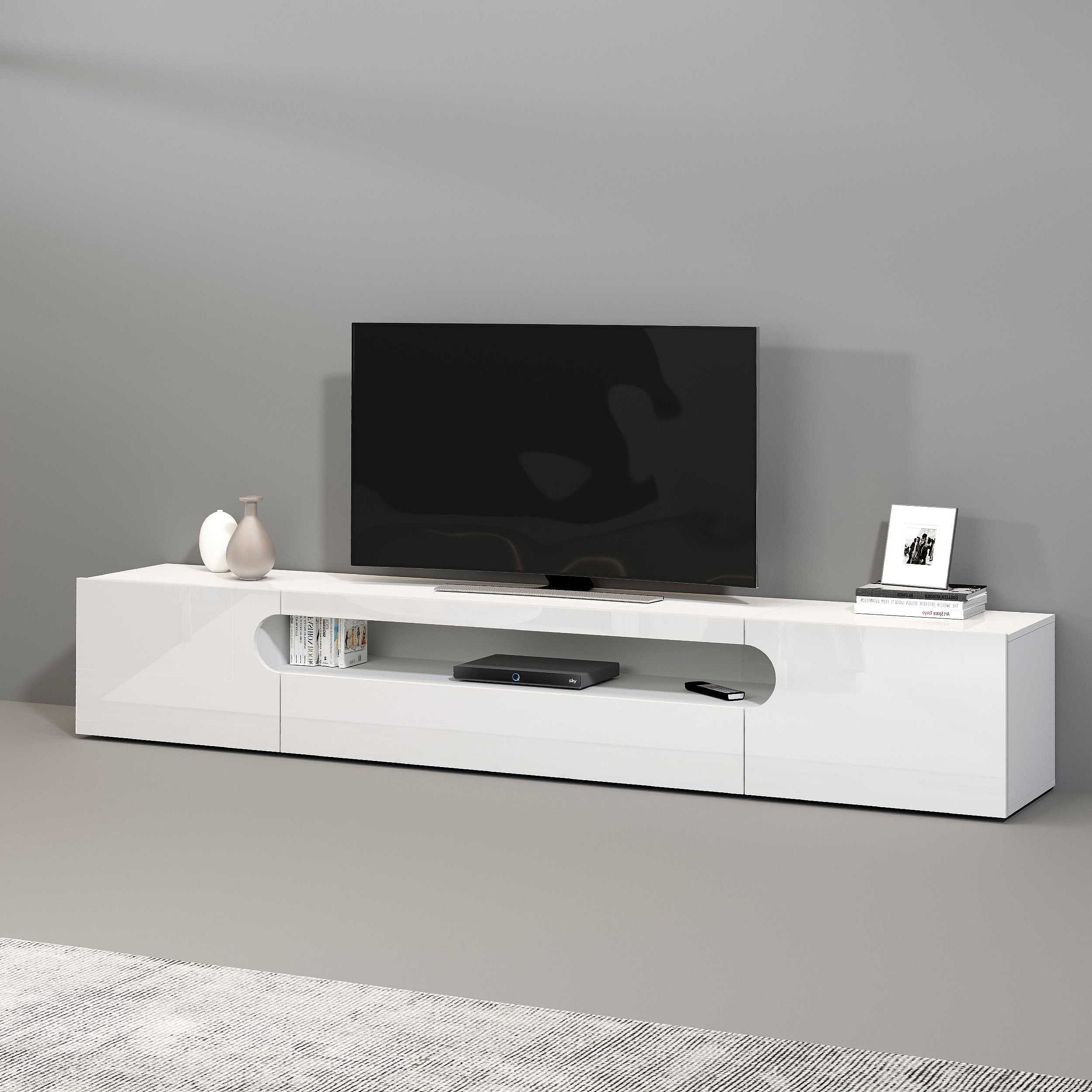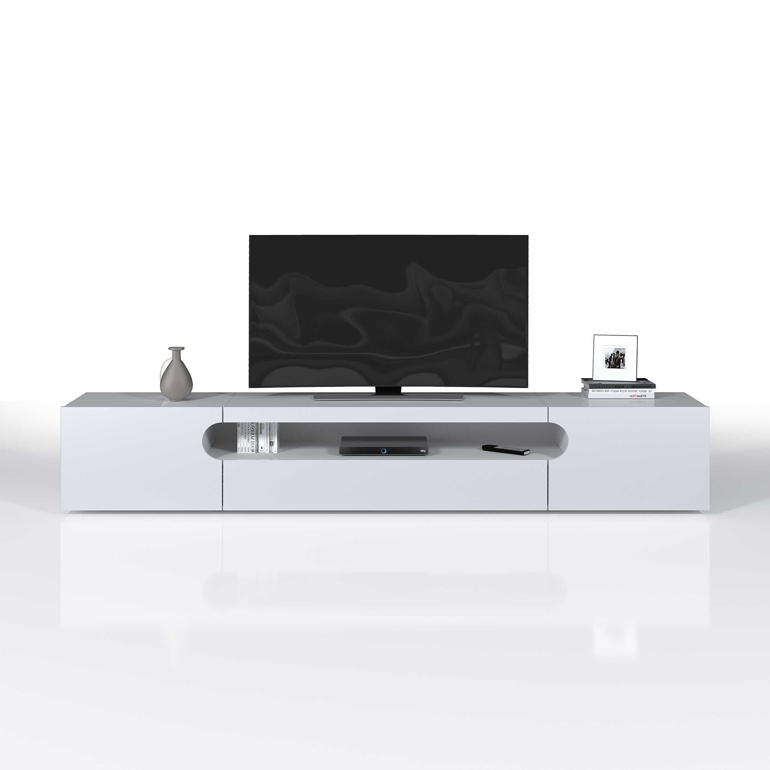 Mobile porta tv Real a 2 ante 1 ribalta e 1 vano aperto bianco lucido 240x40x40 cm