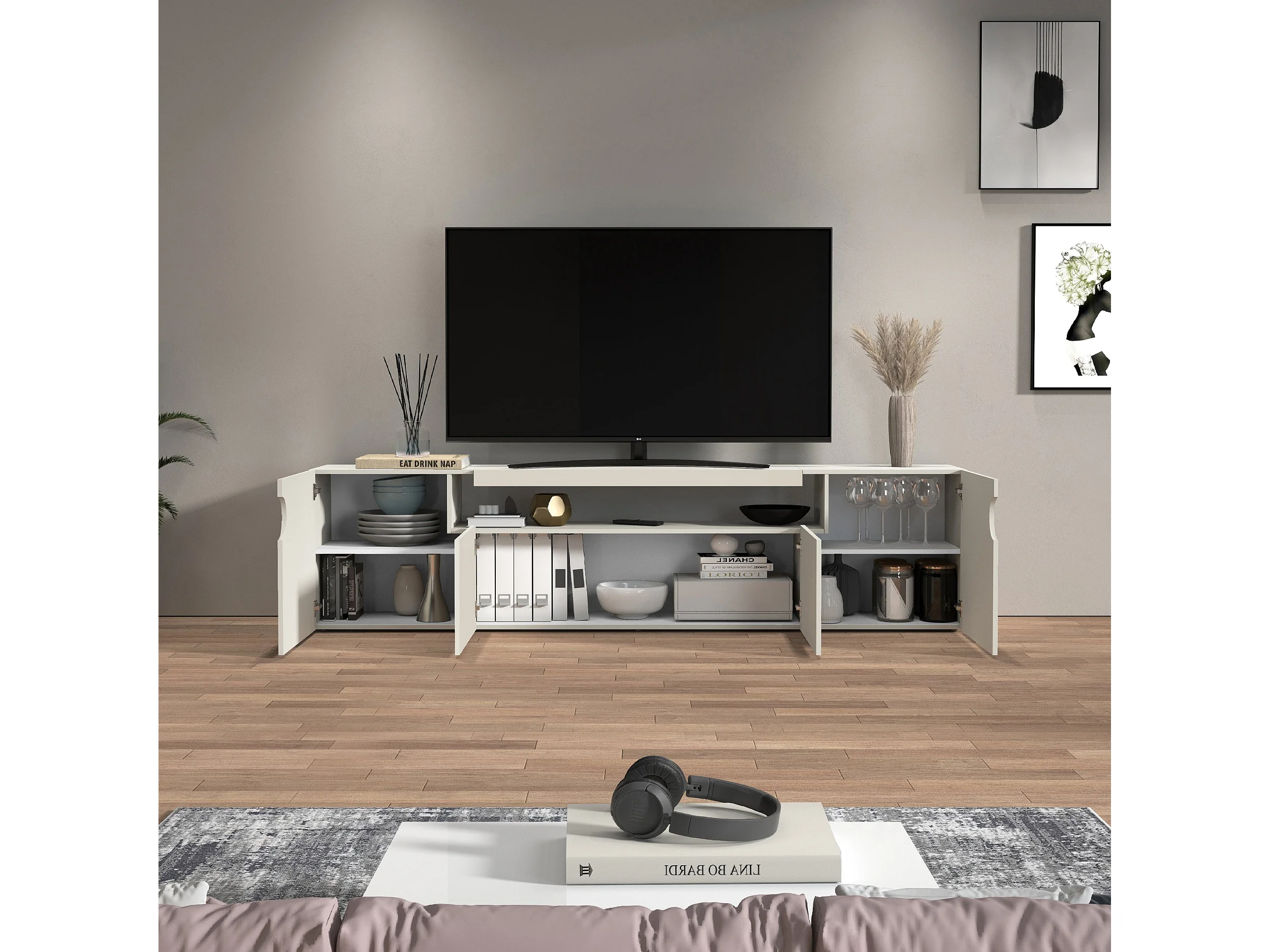 Mobile porta TV Vela con 4 ante colore bianco lucido 180x35x45,4 cm
