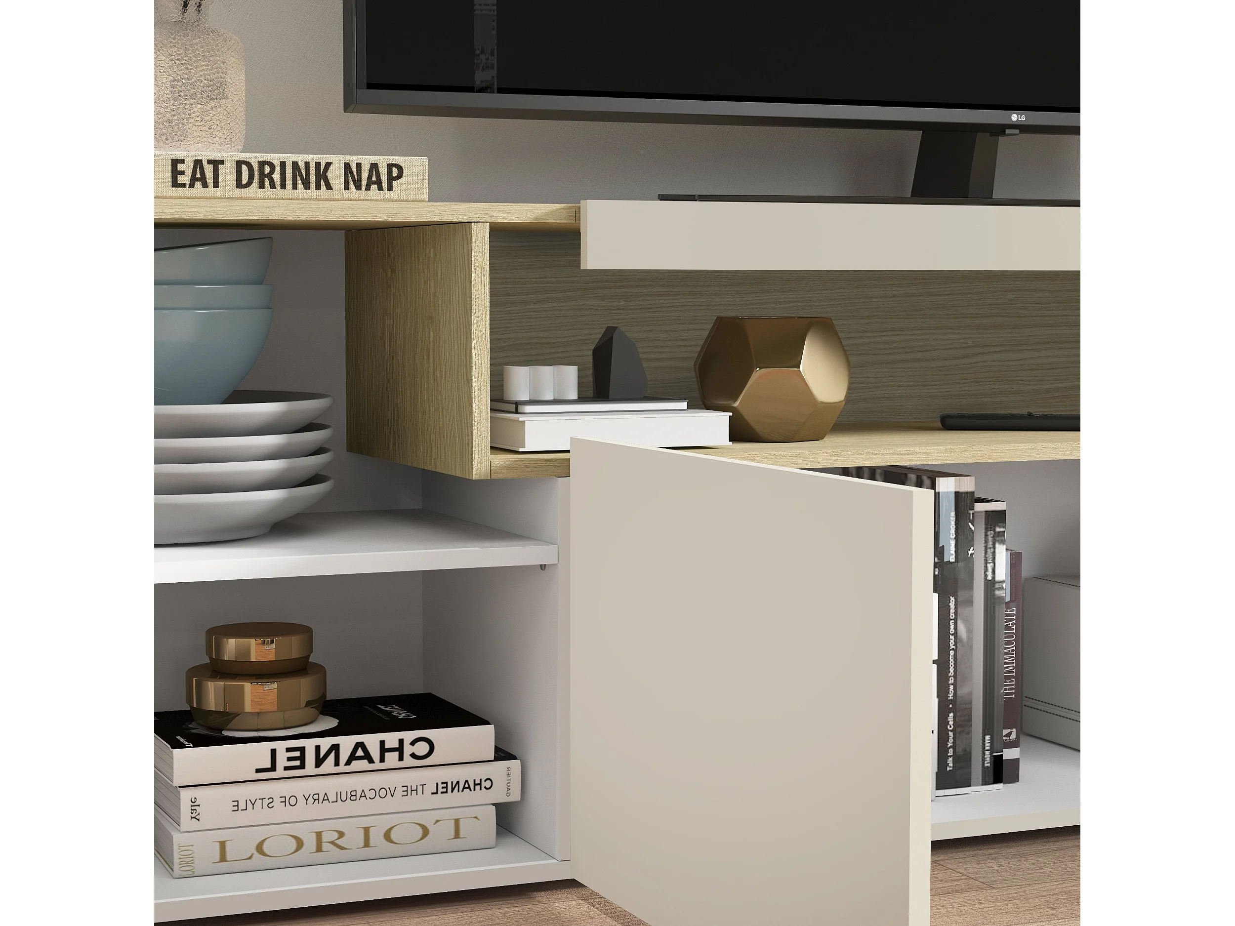 Mobile porta TV Real con 4 ante e 1 vano aperto cashmere e rovere chiaro 200x40x60 cm