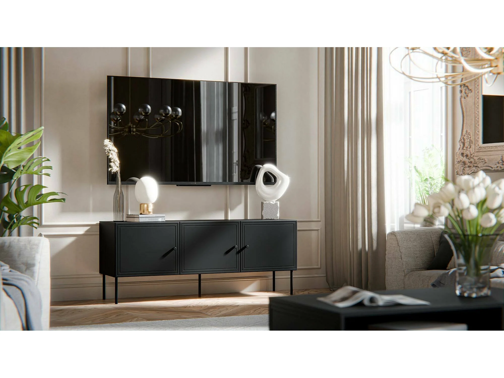 Mobile porta TV Sarzana, Madia da salotto con tre ante battenti, Rialzato da terra, 151x40 h60 cm, Nero