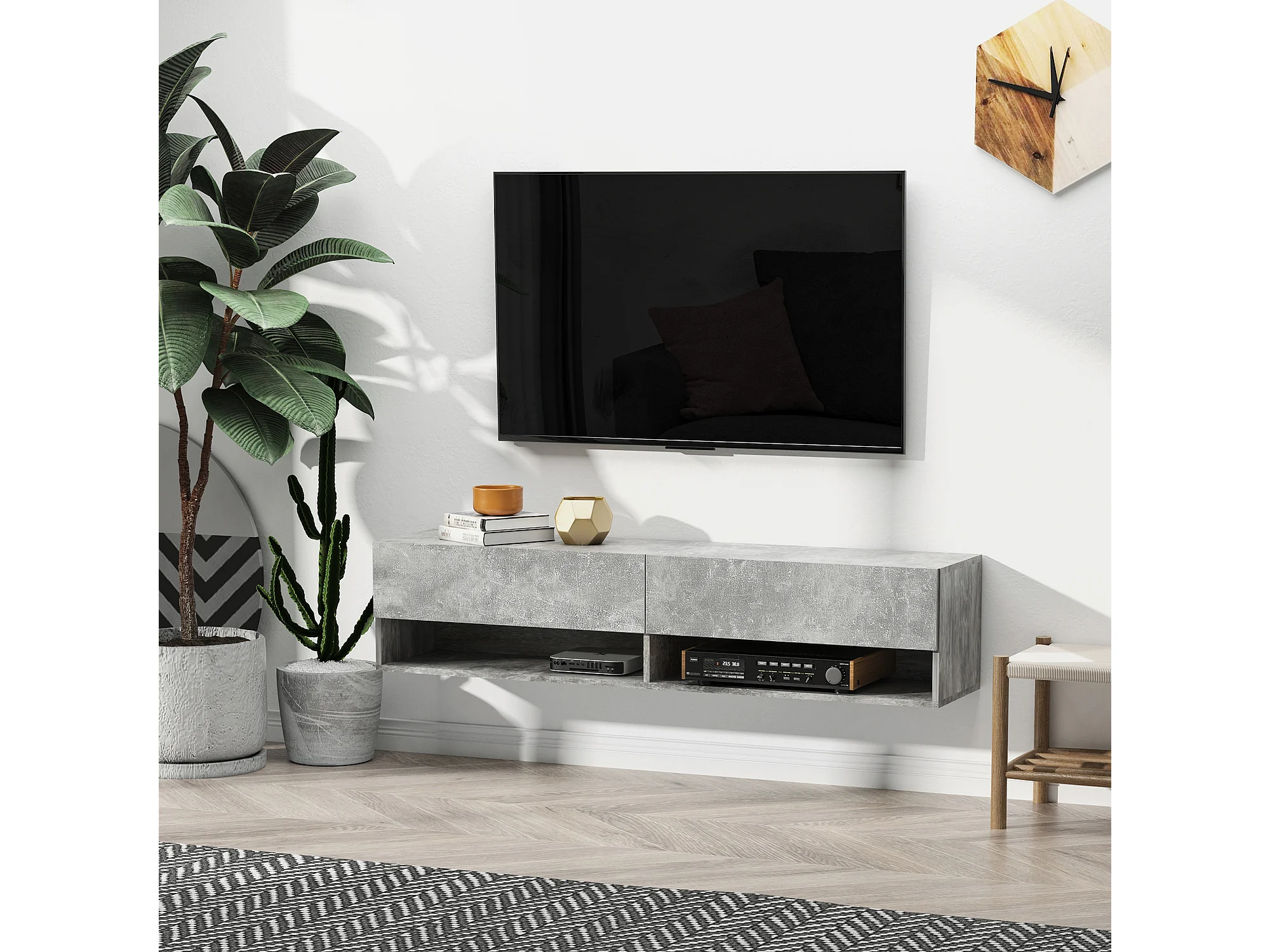 Mobili TV a Muro con LED 5pz Grigio Cemento Legno Multistrato