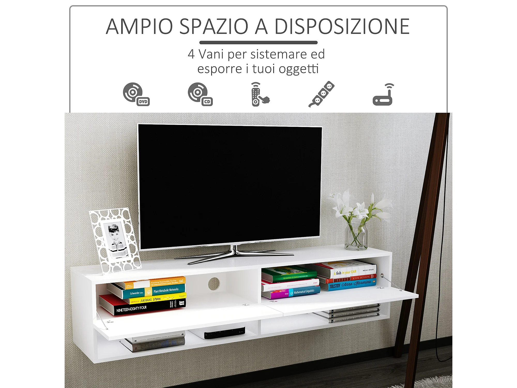 Mobile porta tv sospeso con 4 vani a ribalta legno grigio