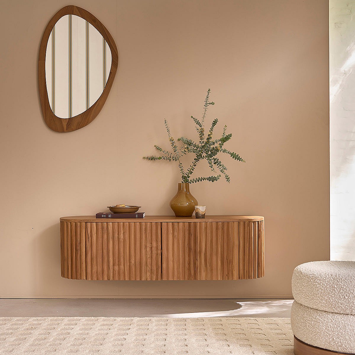 Mobile porta TV sospeso in teak massello da 140 cm