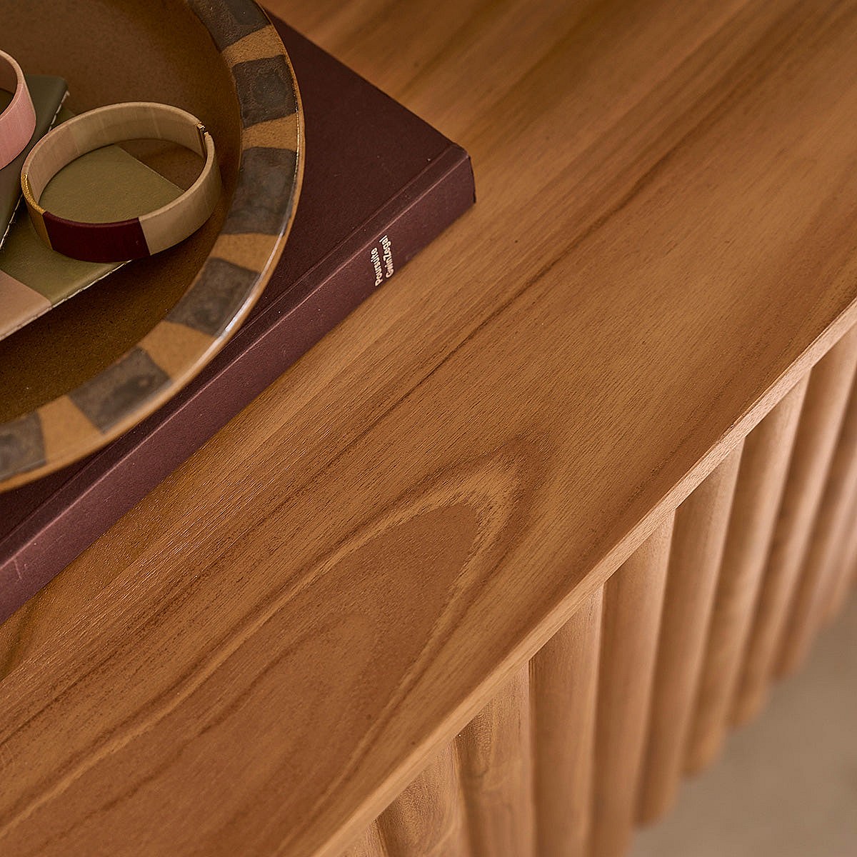 Porta TV in legno beige, acciaio lucido dorato e piano in noce 3275 ANGEL CERDA