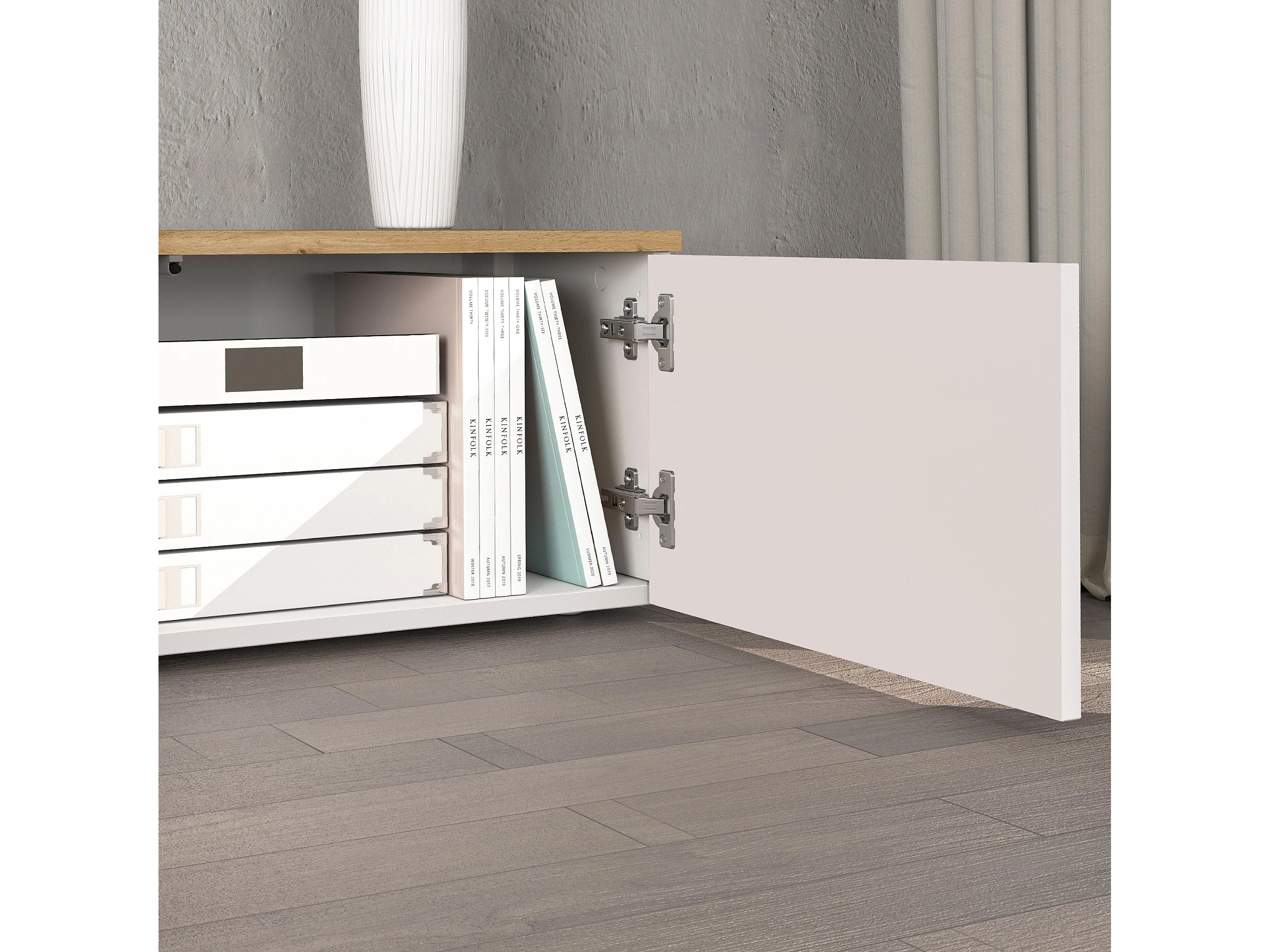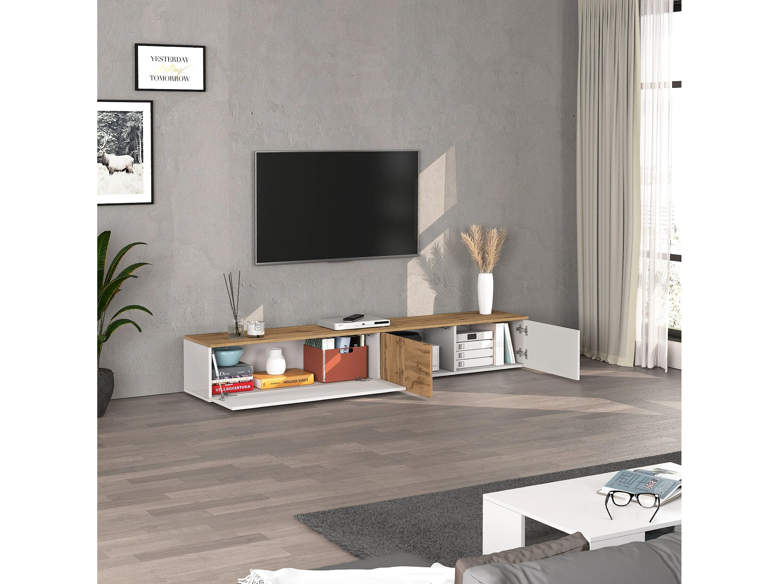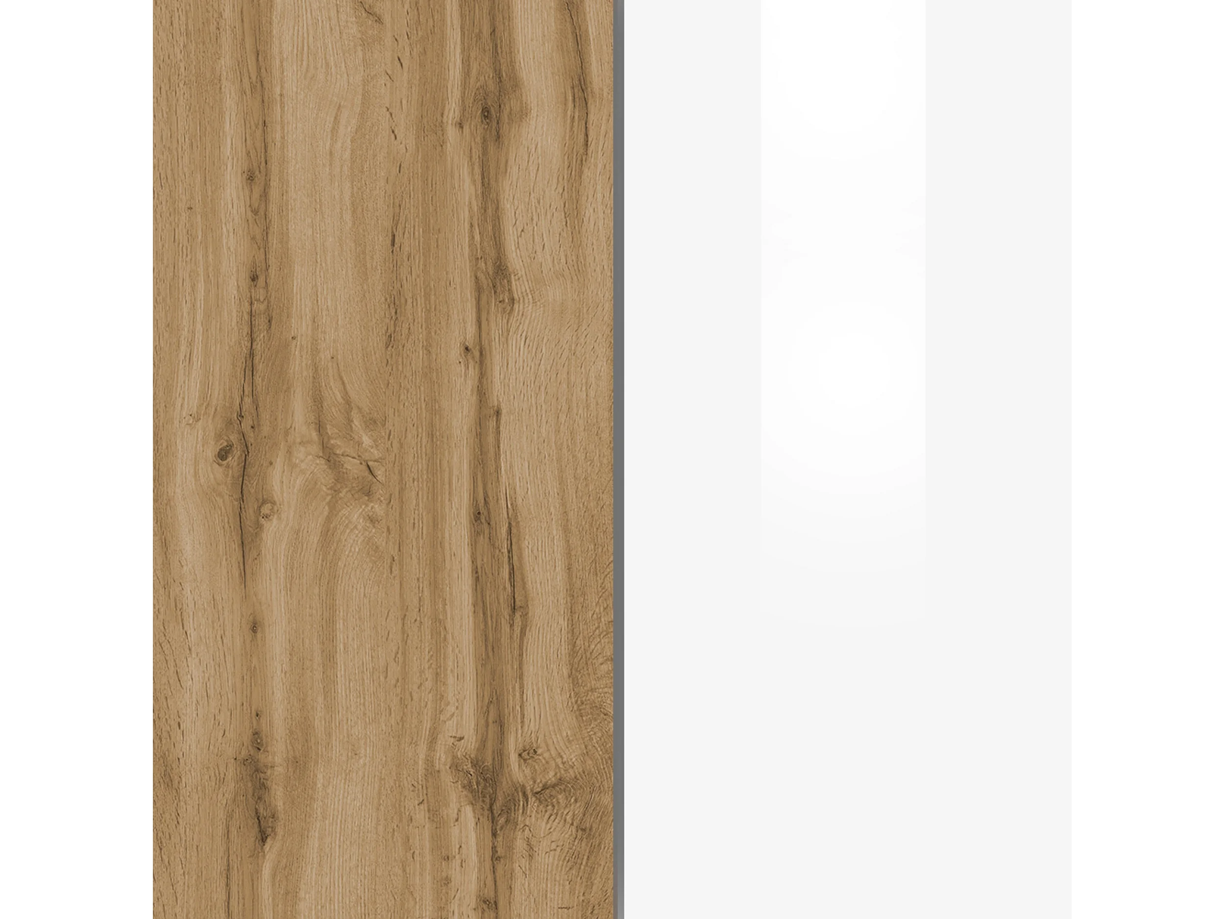 Mobile porta TV sospeso Iseo con 2 ante e 1 ribalta bianco lucido e rovere 200x35x30 cm