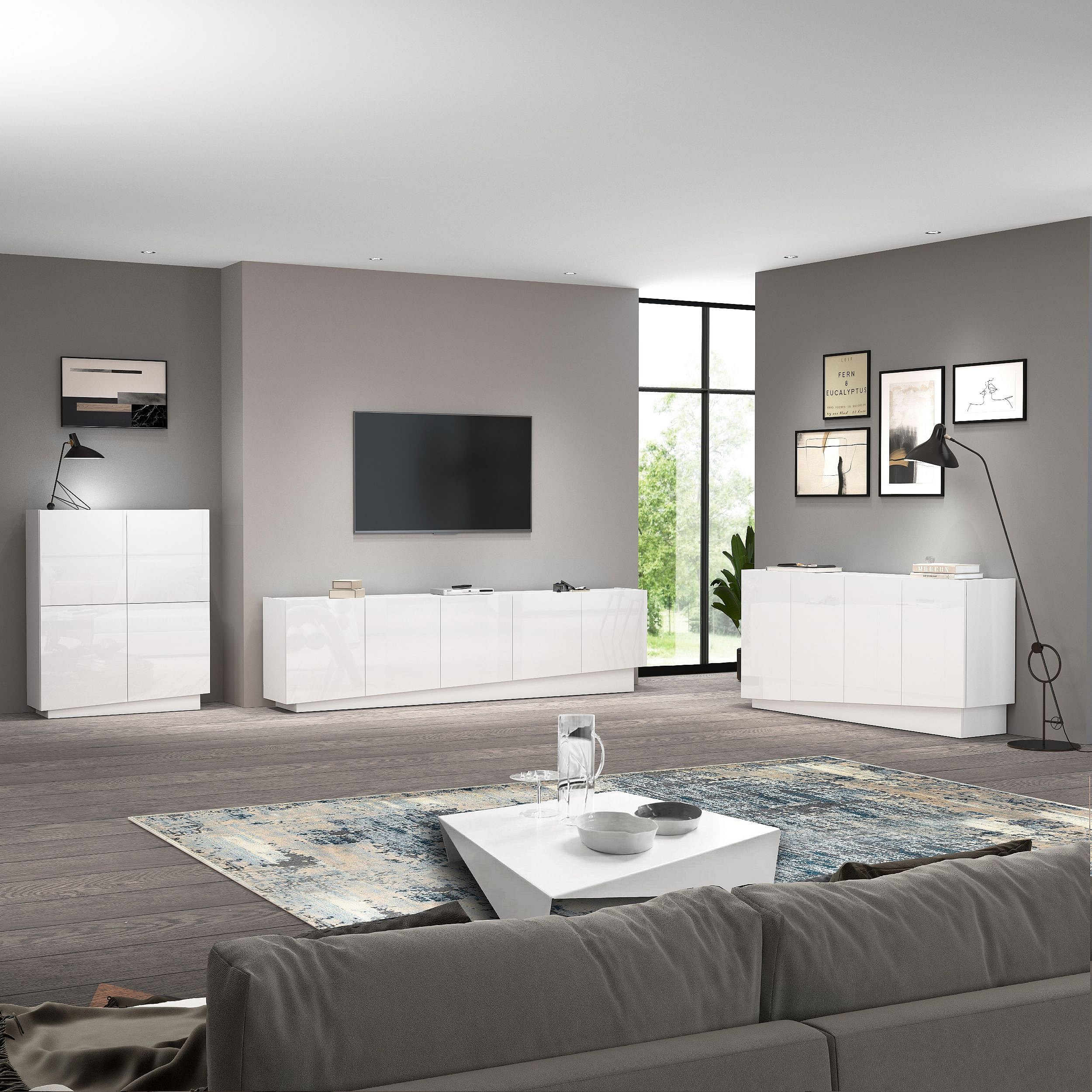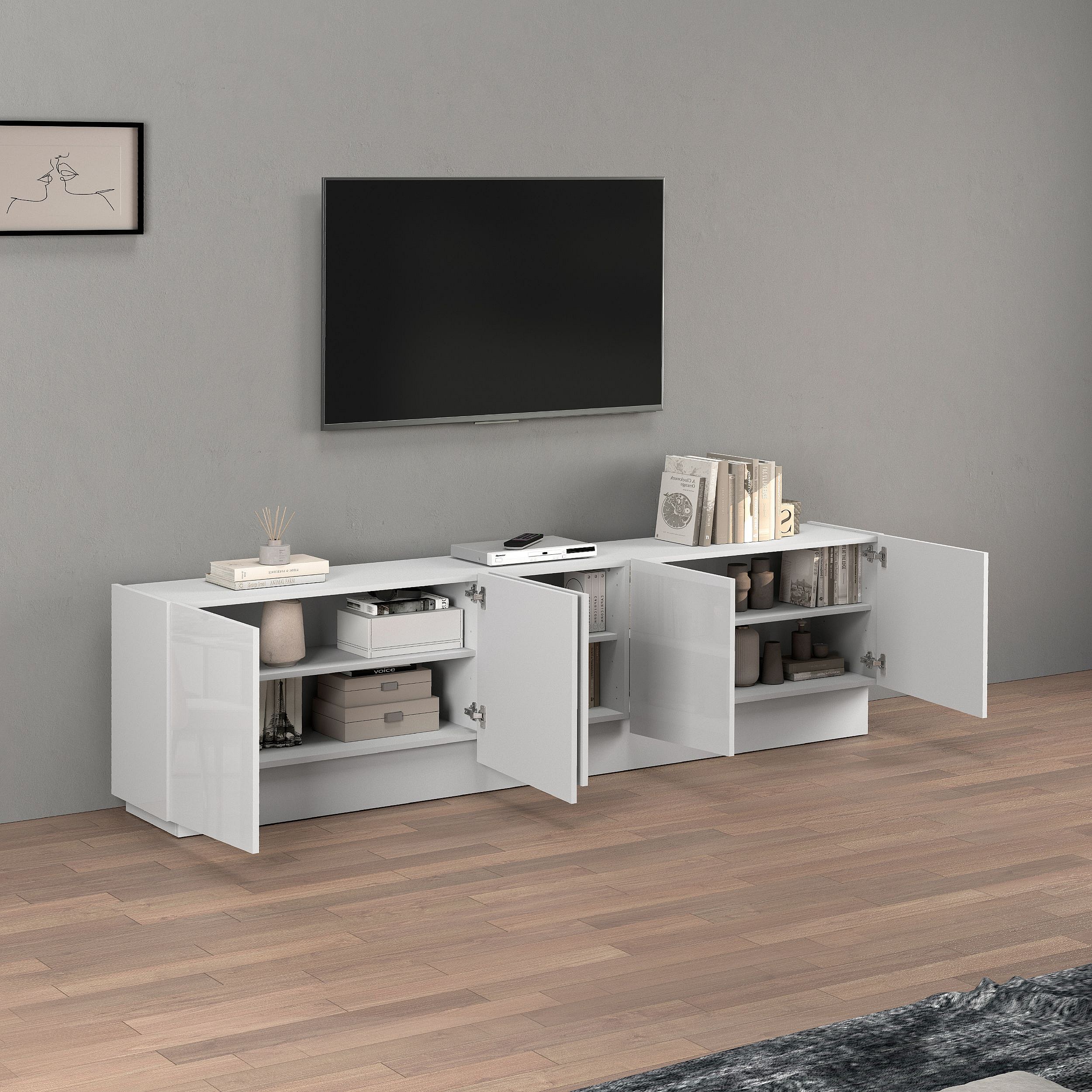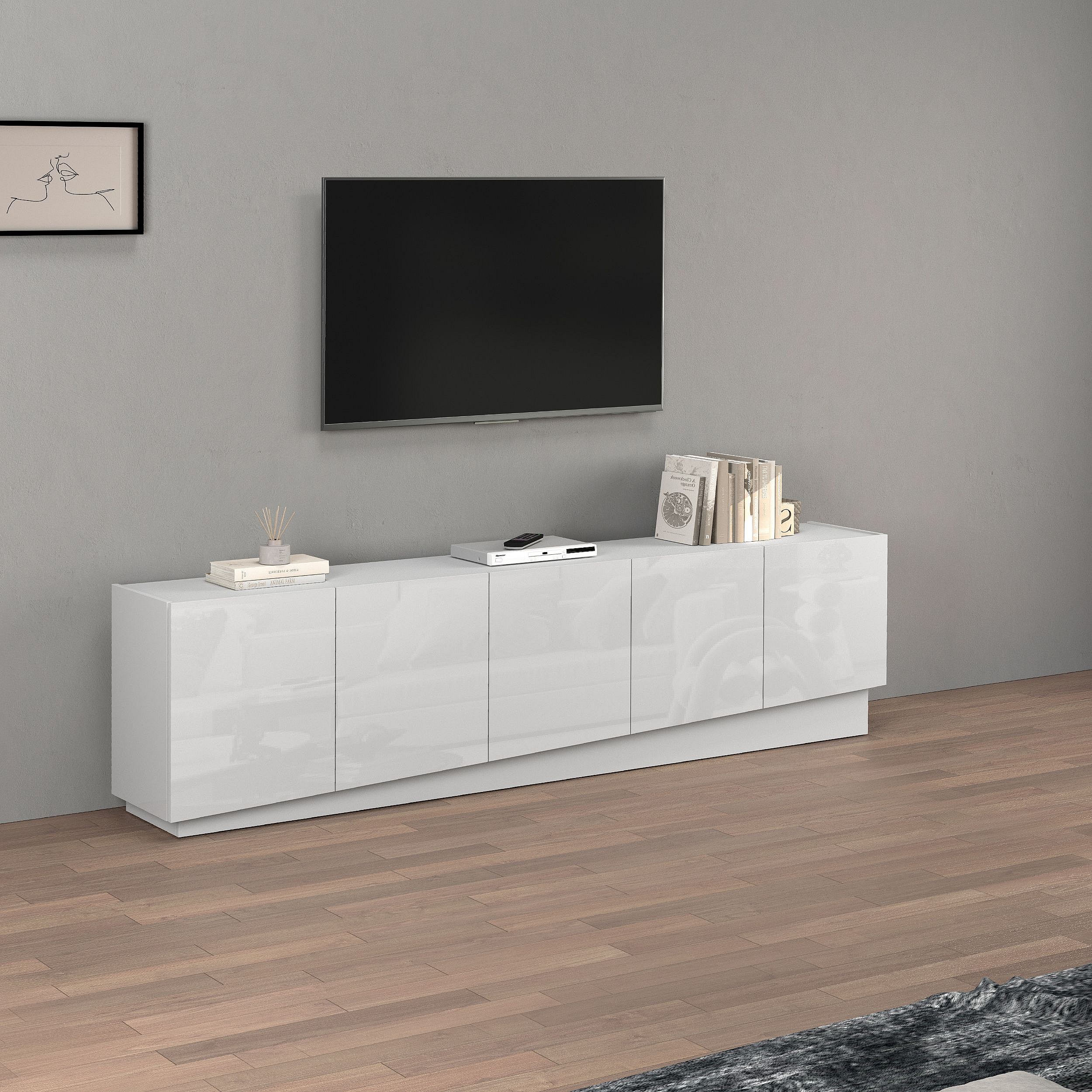 Mobile porta TV Vela con 5 ante colore bianco lucido 225x35x60,4 cm