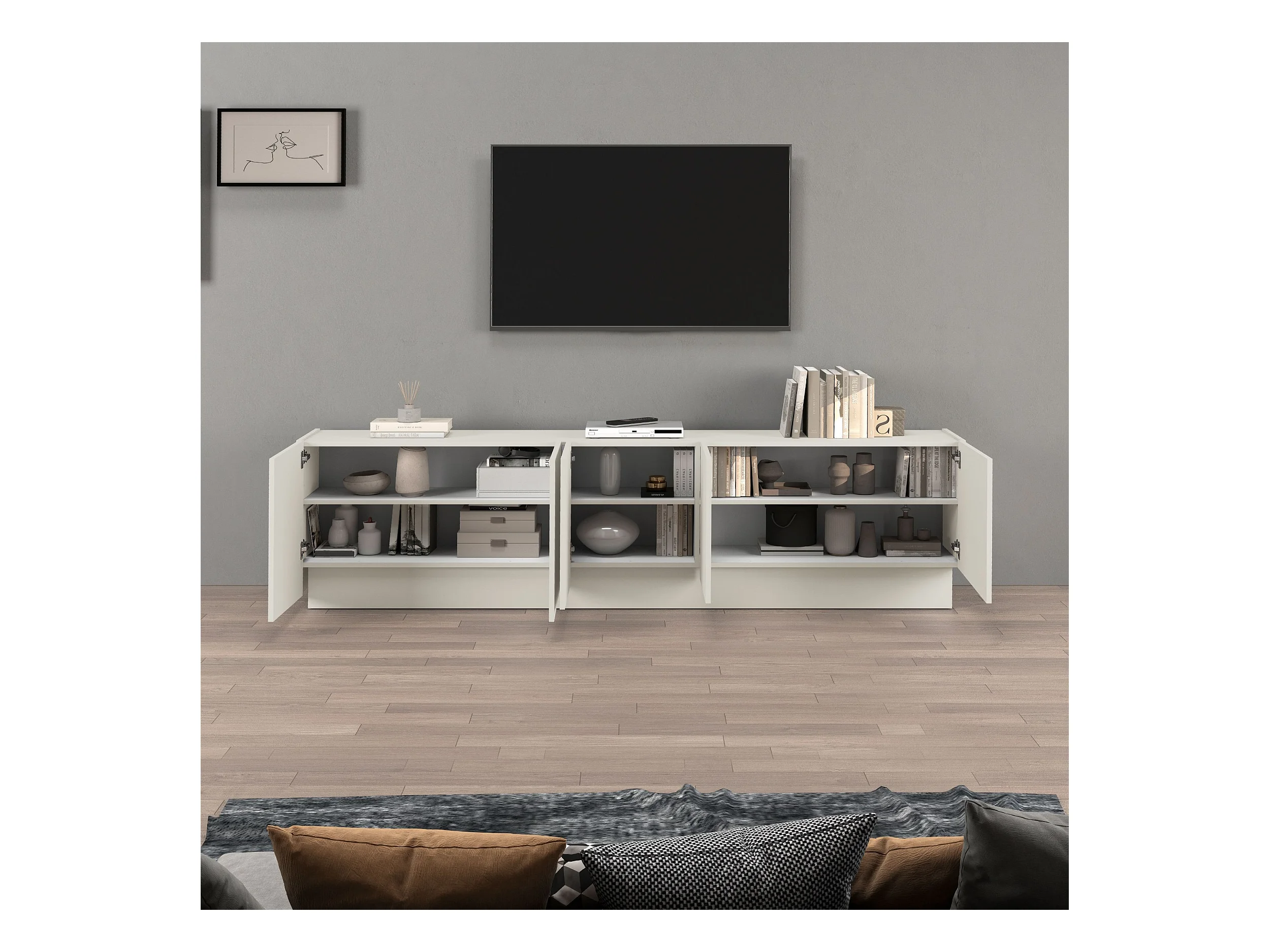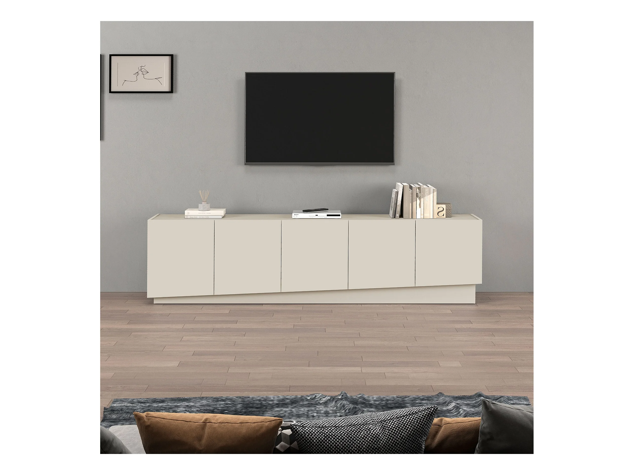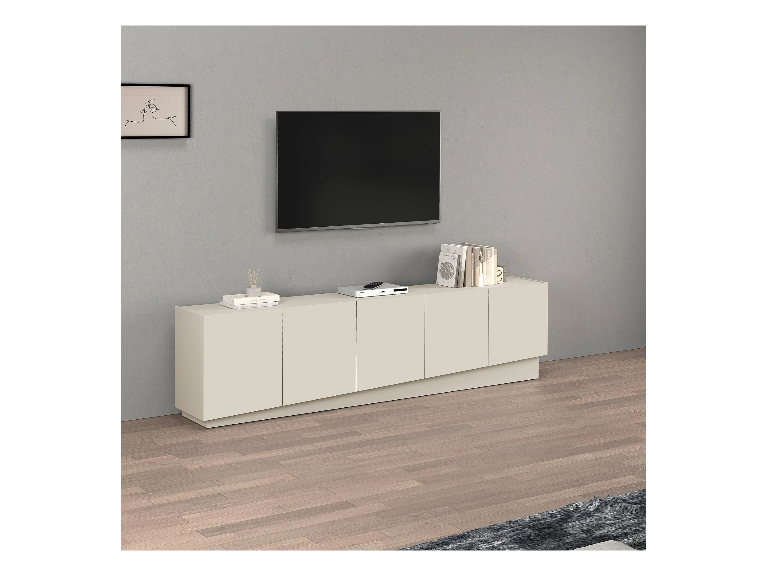 Mobile porta TV Vela con 5 ante colore cashmere 225x35x60,4 cm