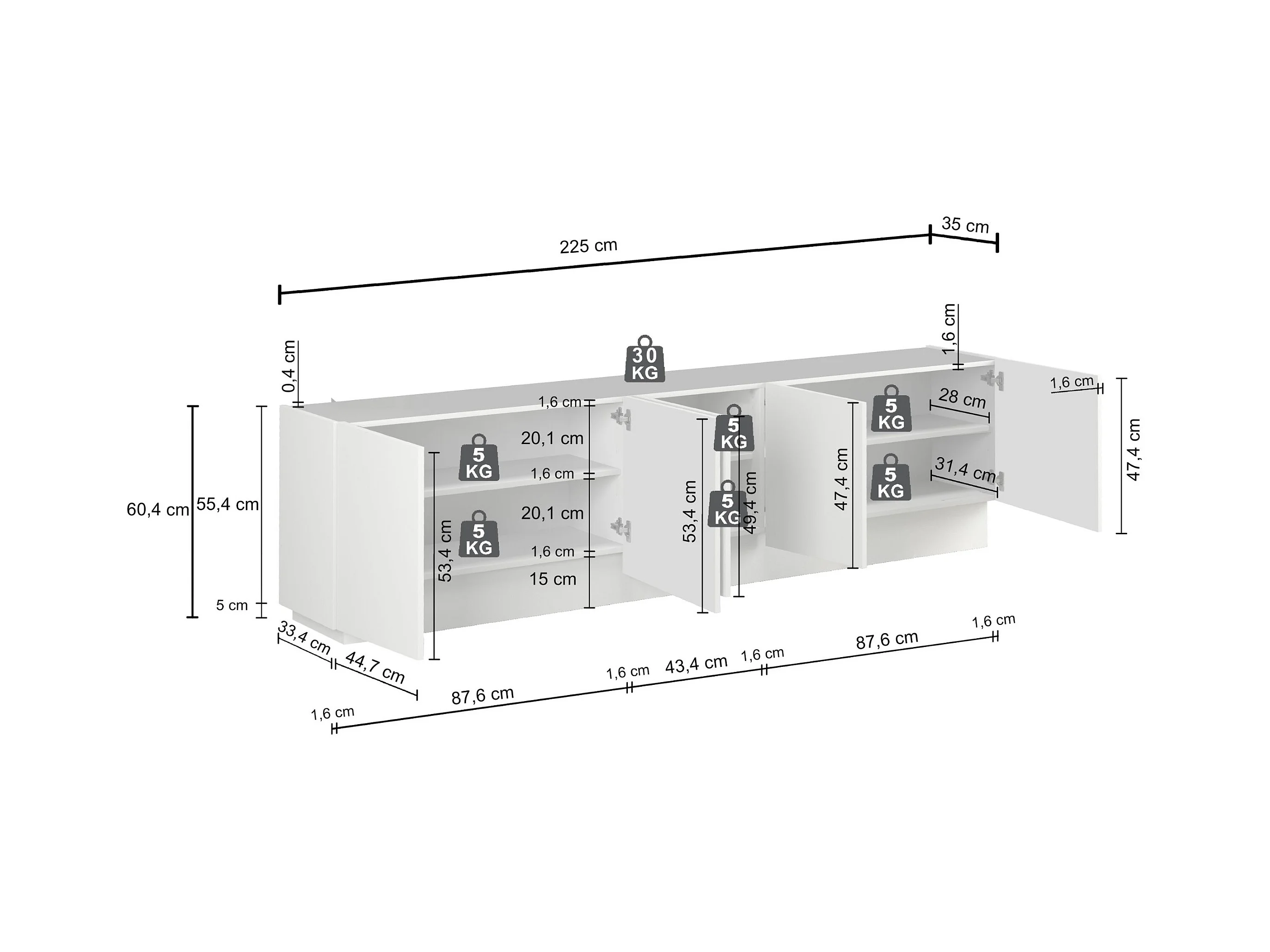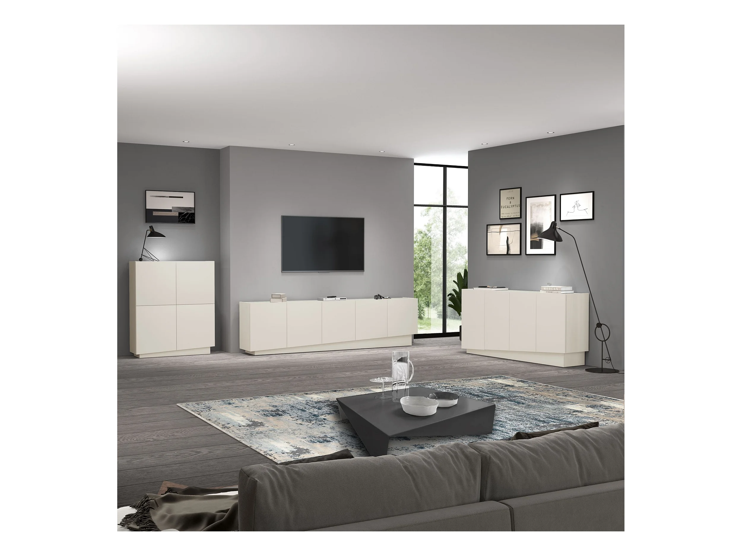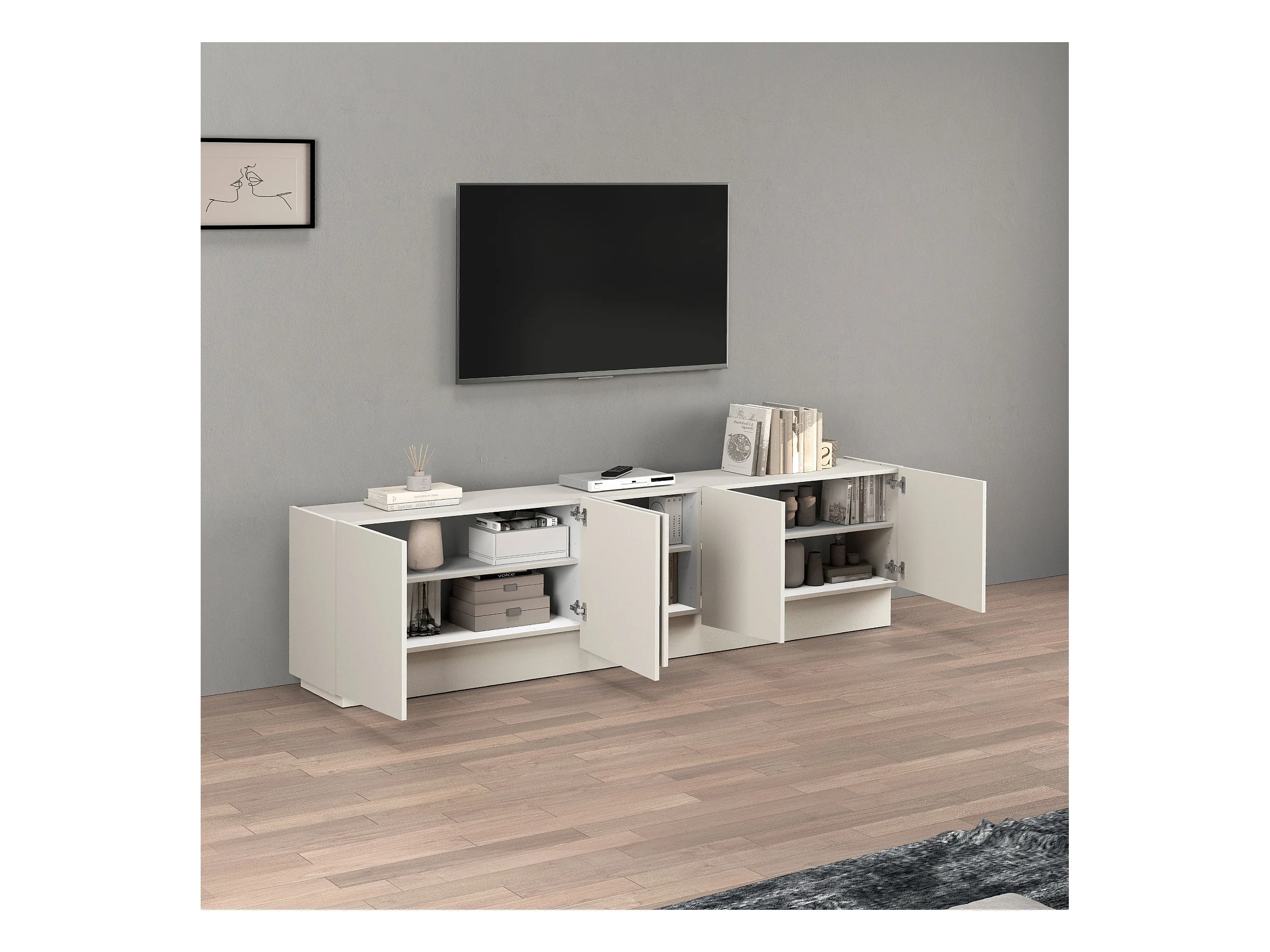 Mobile porta TV Vela con 5 ante colore cashmere 225x35x60,4 cm