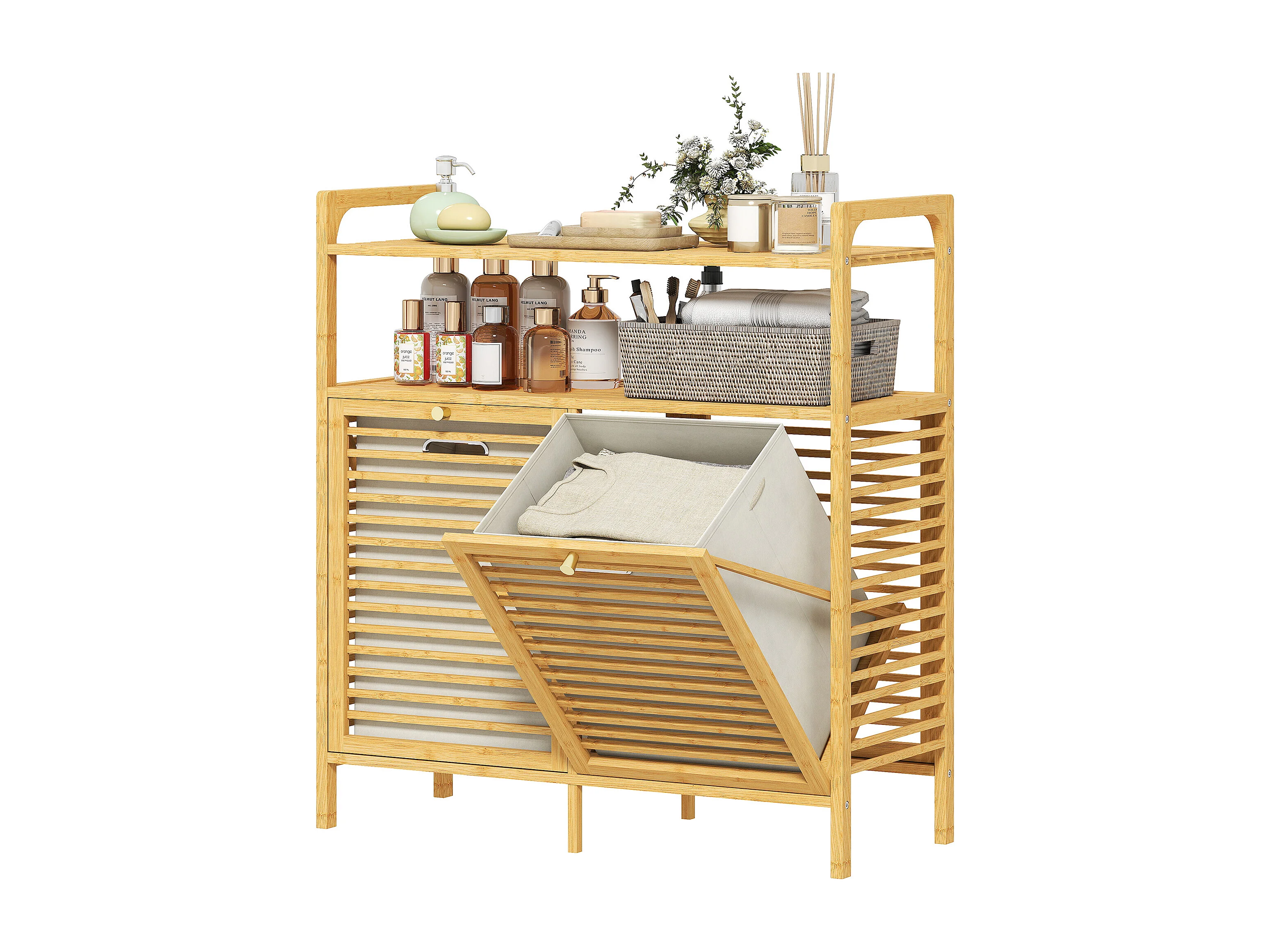 Mobile bagno a doghe con cesto portabiancheria estraibile da 37l