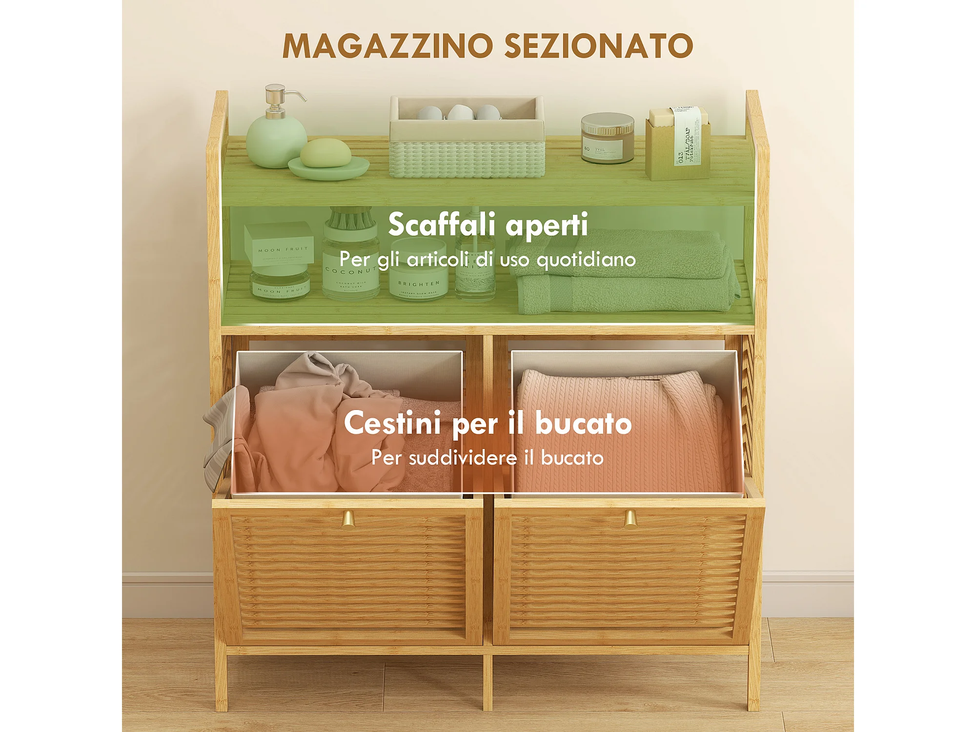 Mobile portabiancheria da bagno con 2 scomparti a ribalta 2x41l
