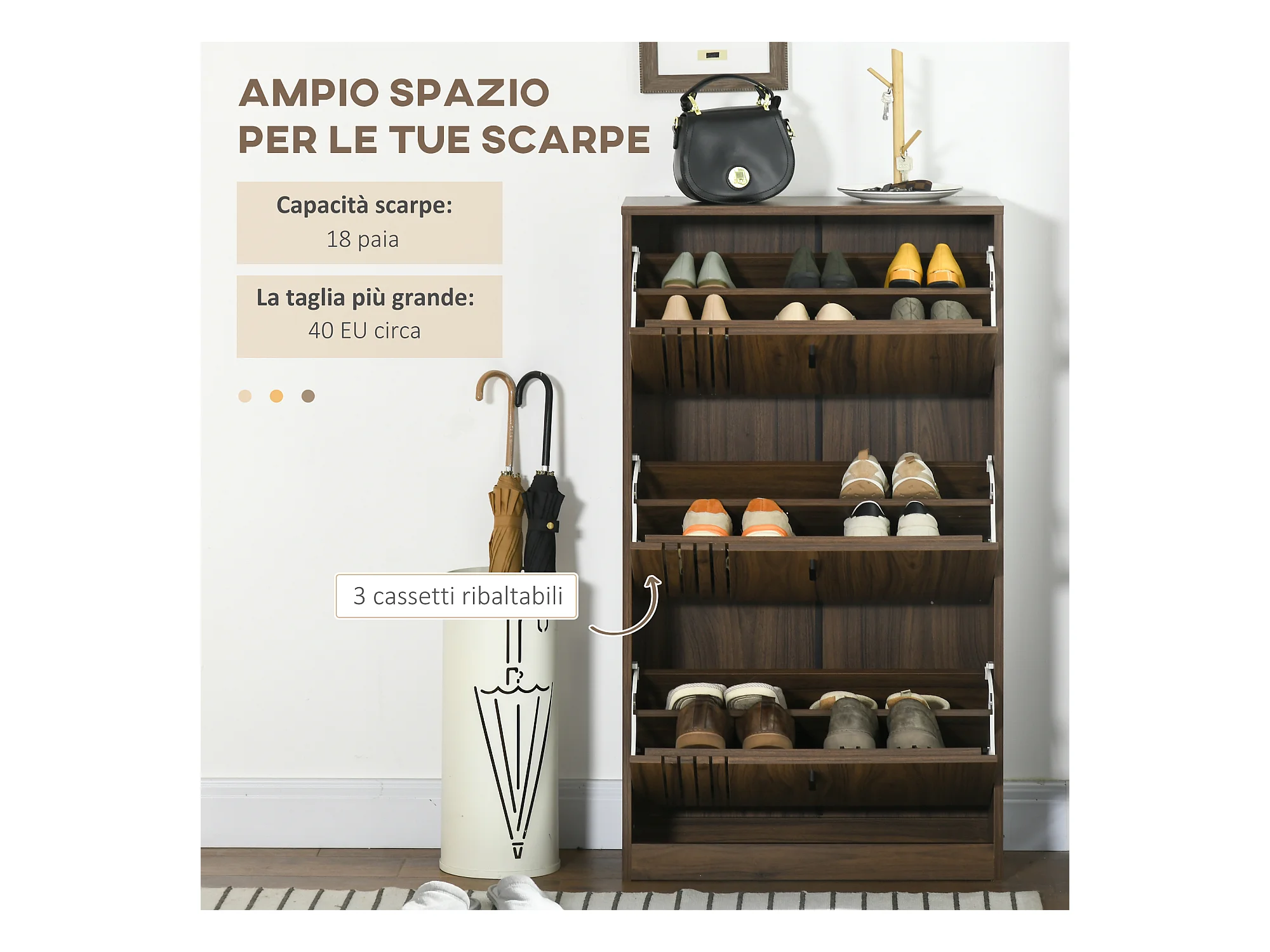 Mobile scarpiera a 3 livelli con ripiani interni regolabili