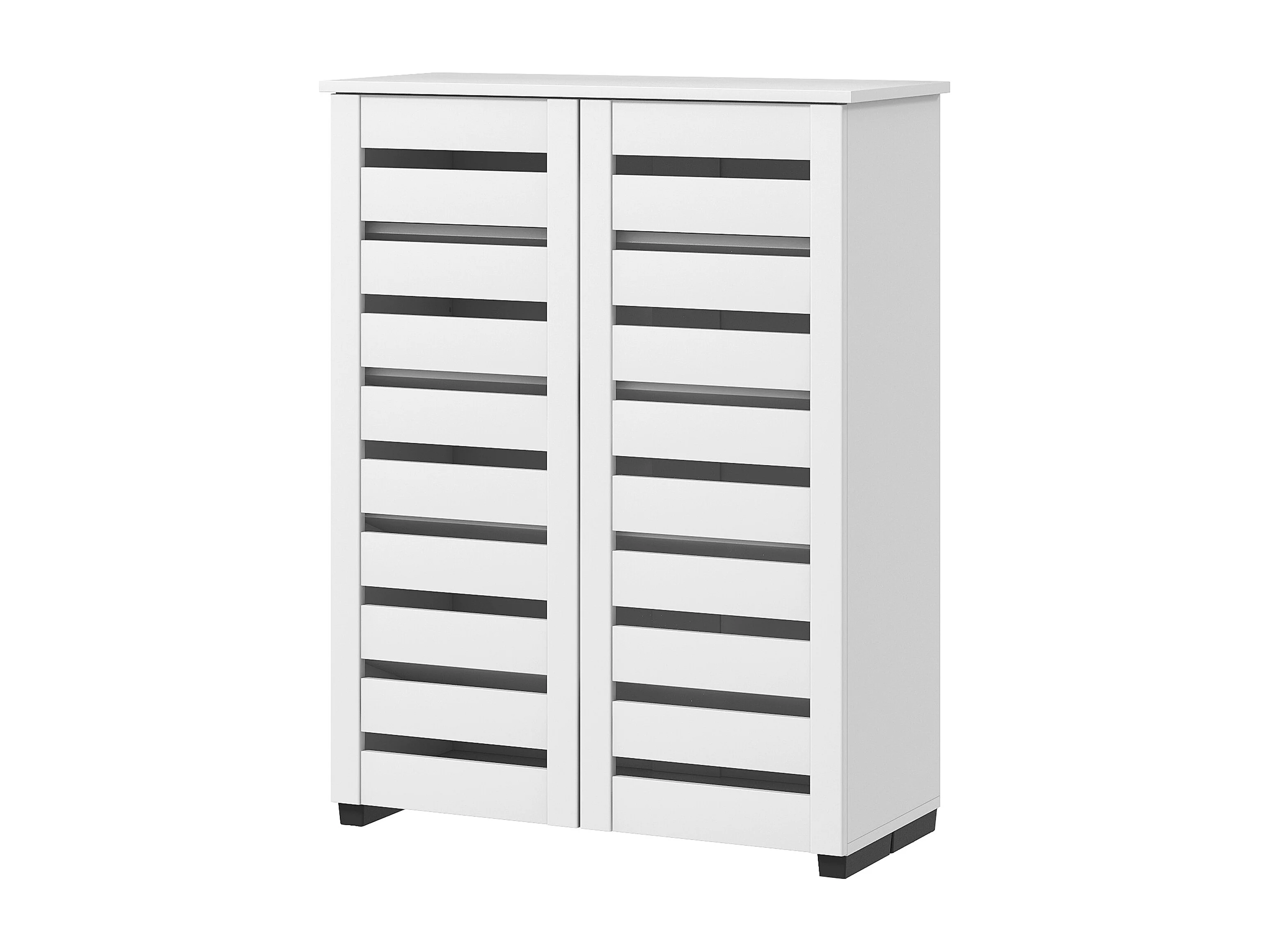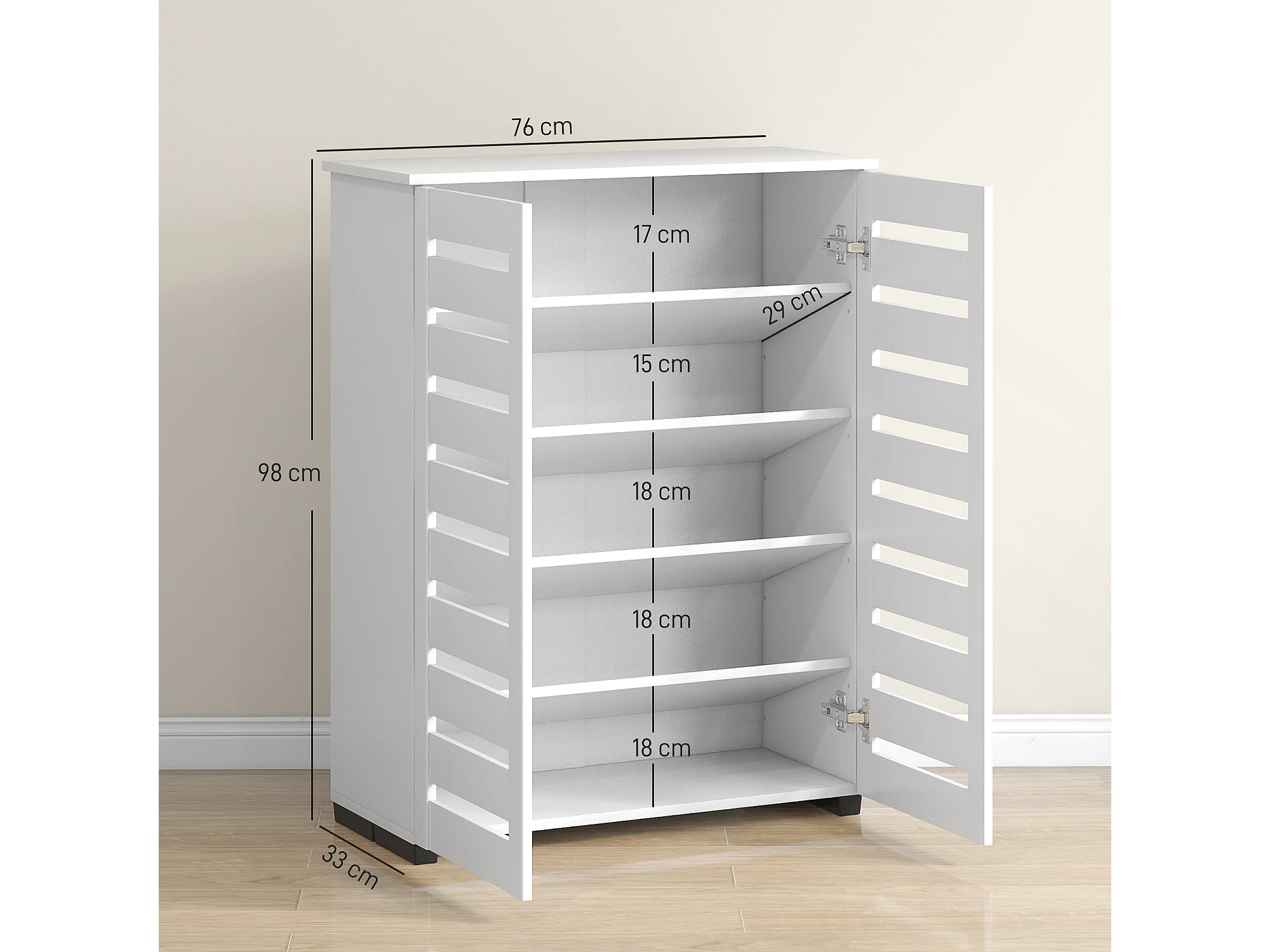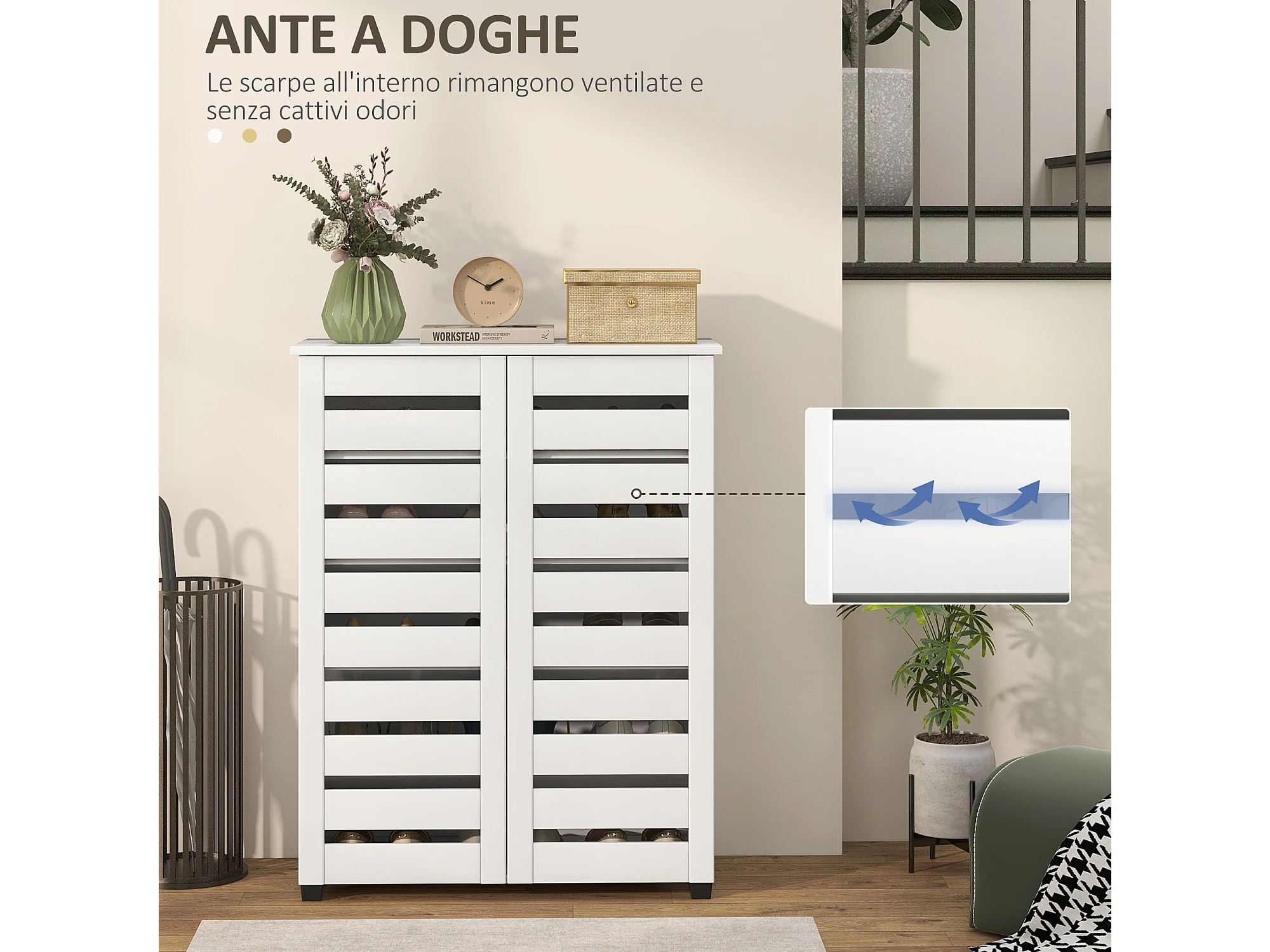 Mobile scarpiera a 5 livelli con ante a doghe in legno bianco