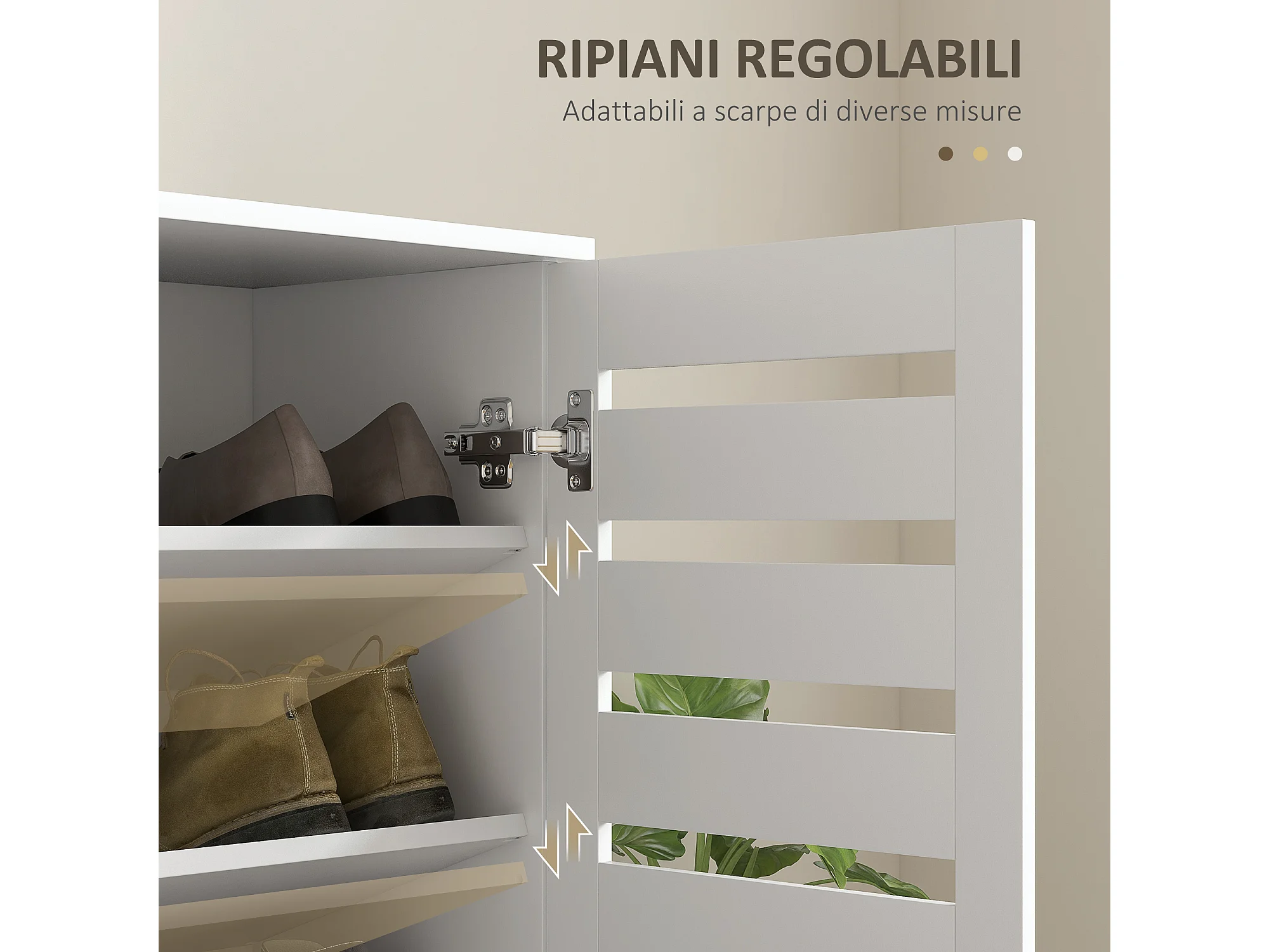 Scarpiera salvaspazio slim in legno per 16-24 paia con 4 ante bianco