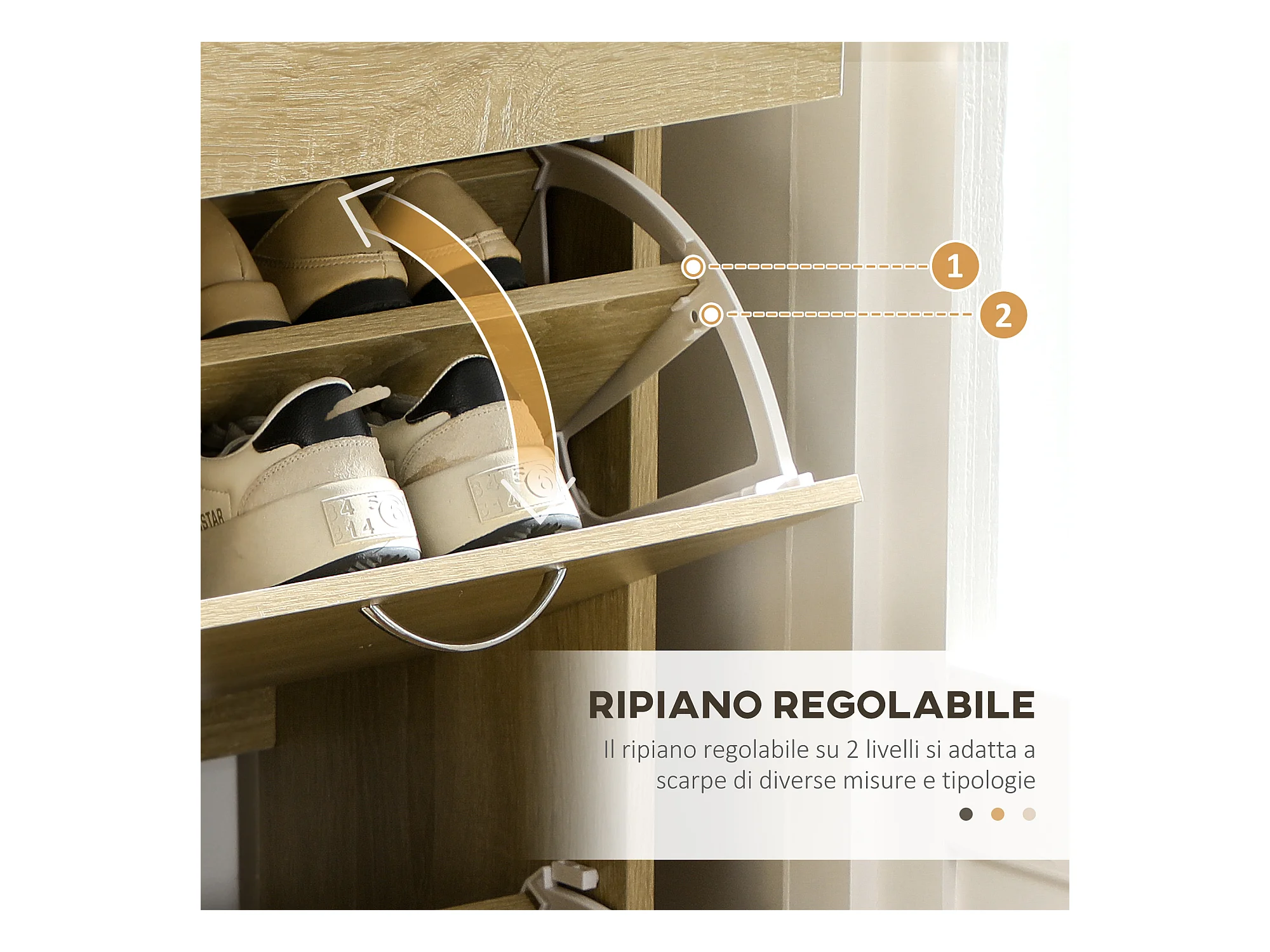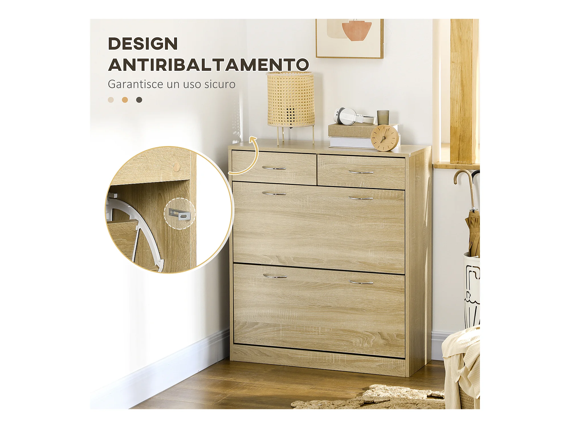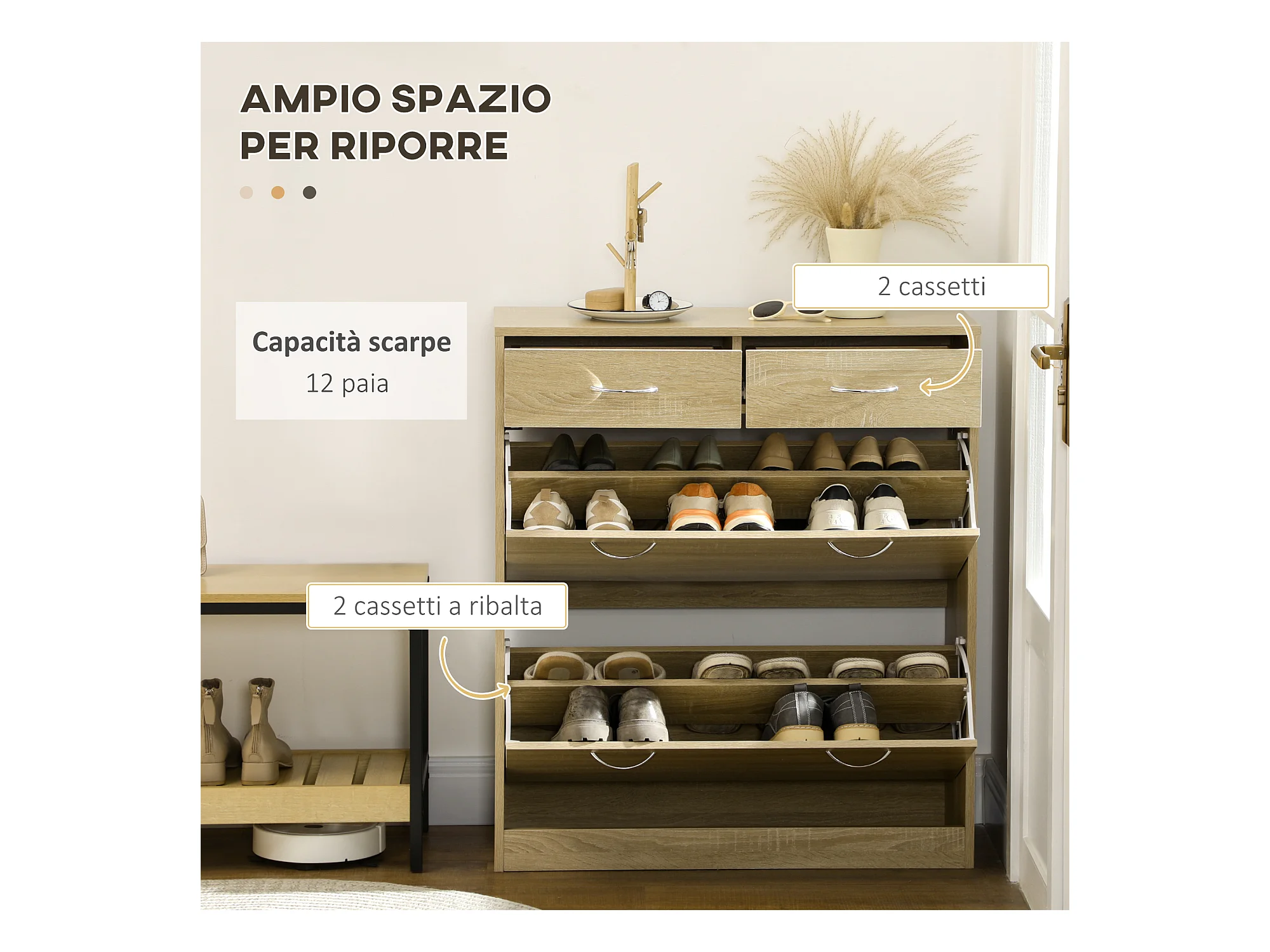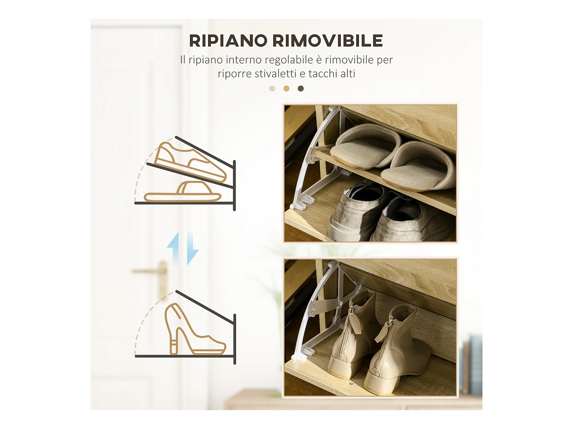 Mobile scarpiera con 2 ripiani interni regolabili e cassetti