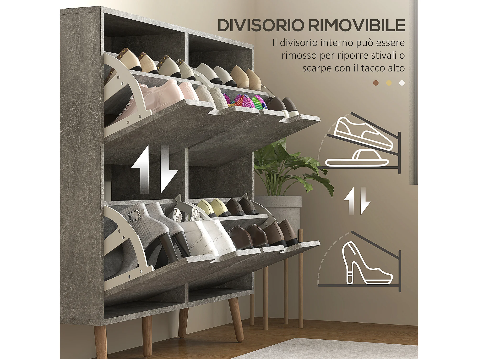 Mobile scarpiera con 4 cassetti ribaltabili in legno grigio