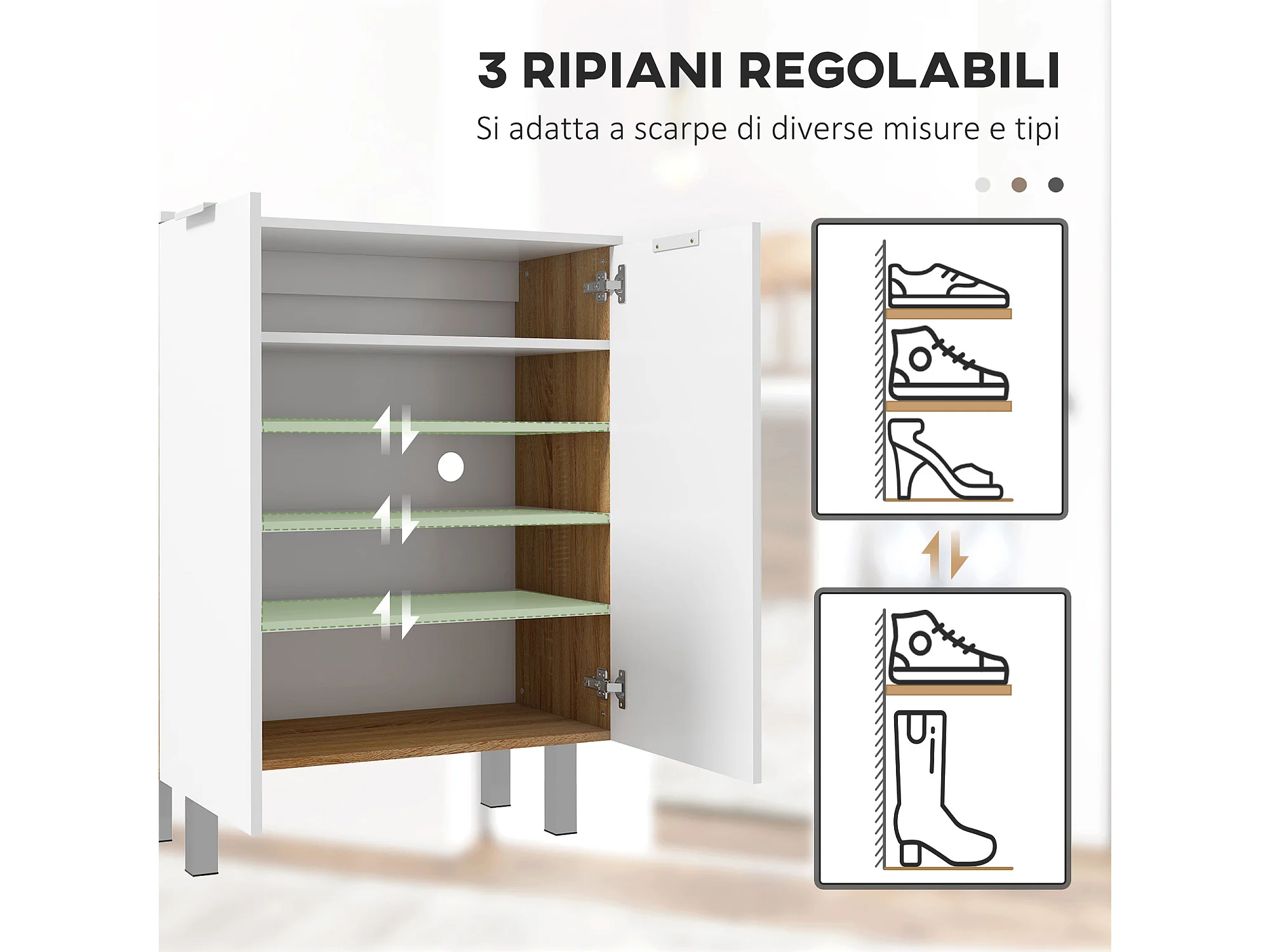 Dmora Scarpiera Valdosta 22x50x75h cm Bianco 12 Paia 2 Ante, Mobile Portascarpe 4 Vani