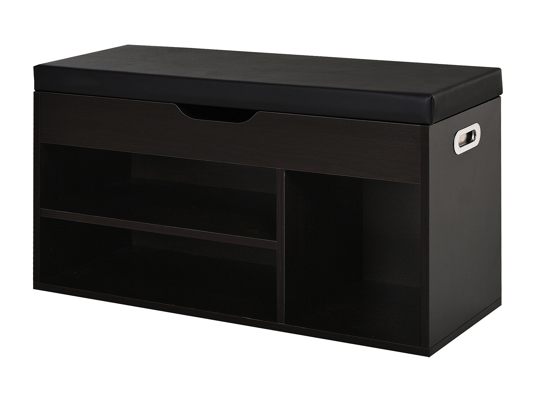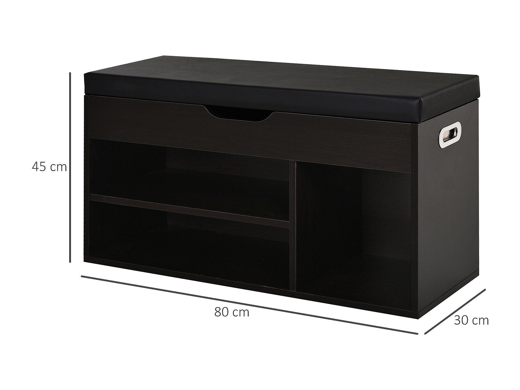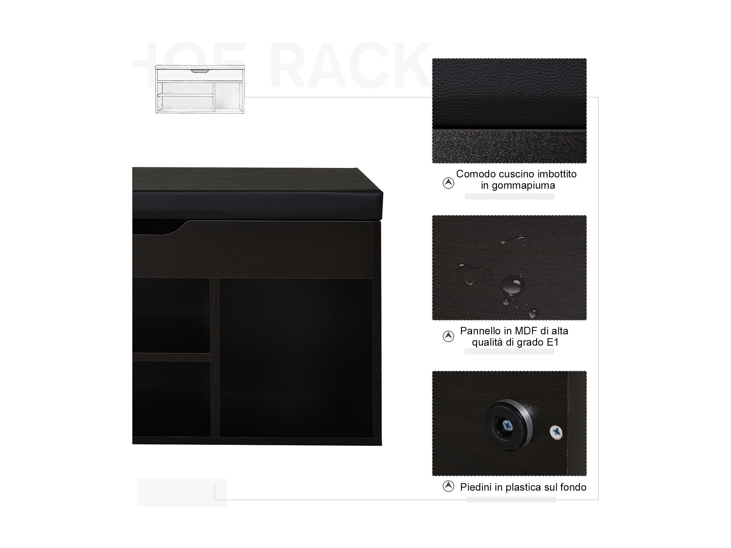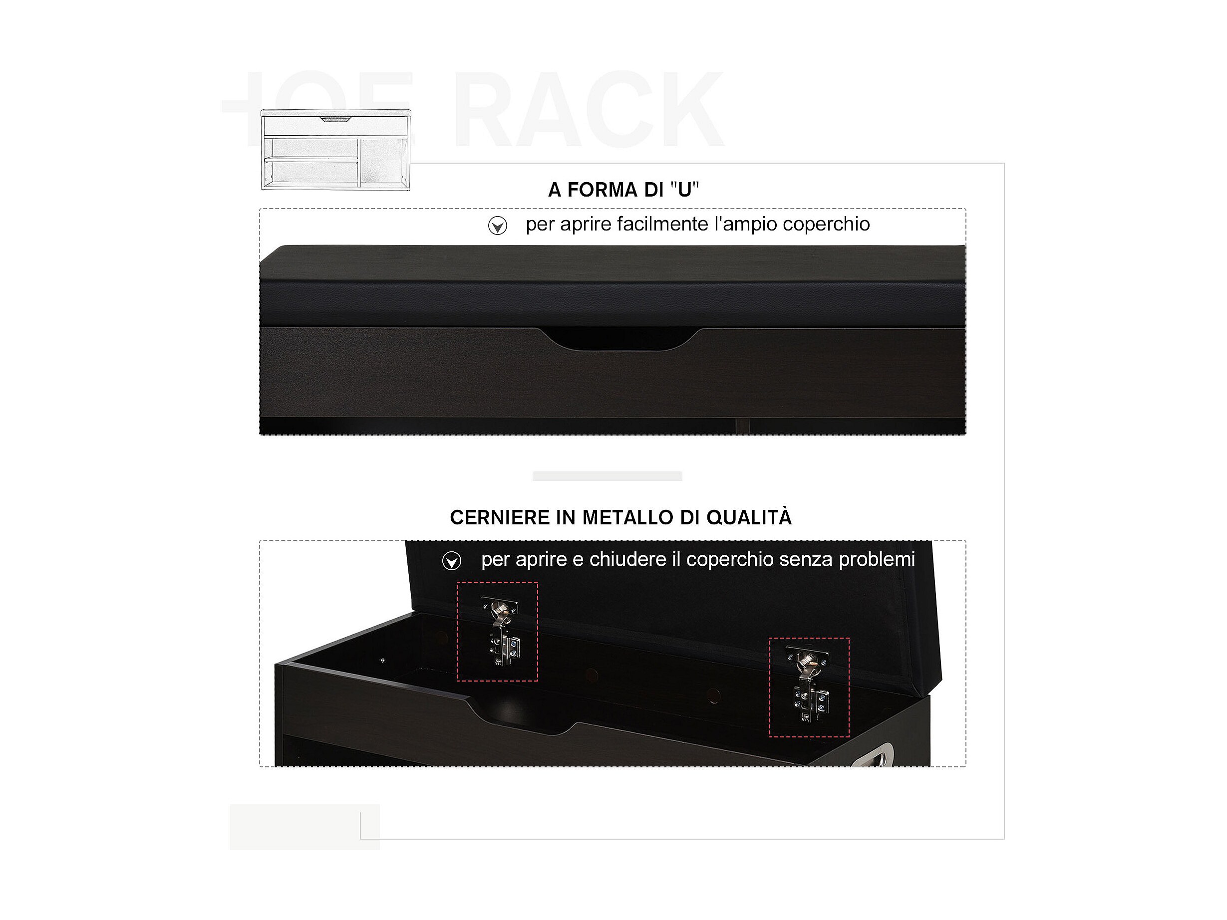 Mobile scarpiera salvaspazio con panca contenitore e vani aperti nero