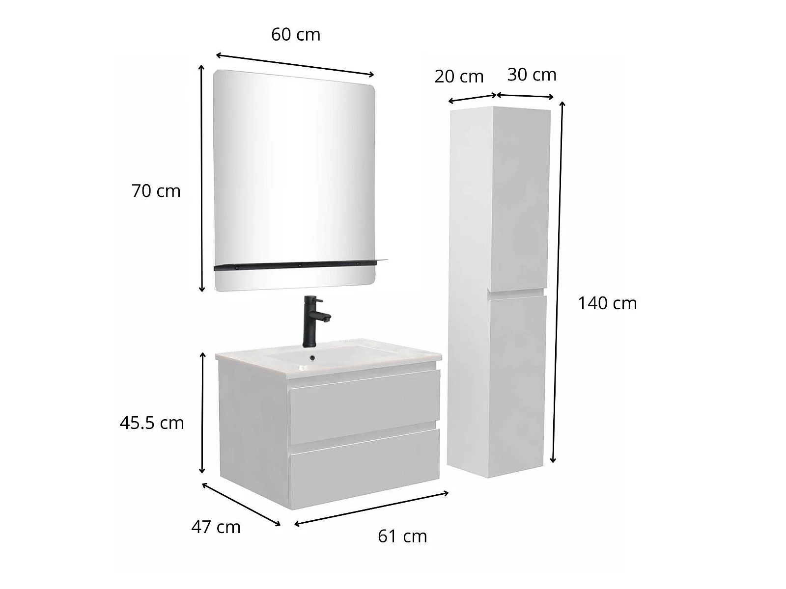 Mobile semplice + rubinetto + specchio + colonna SORRENTO