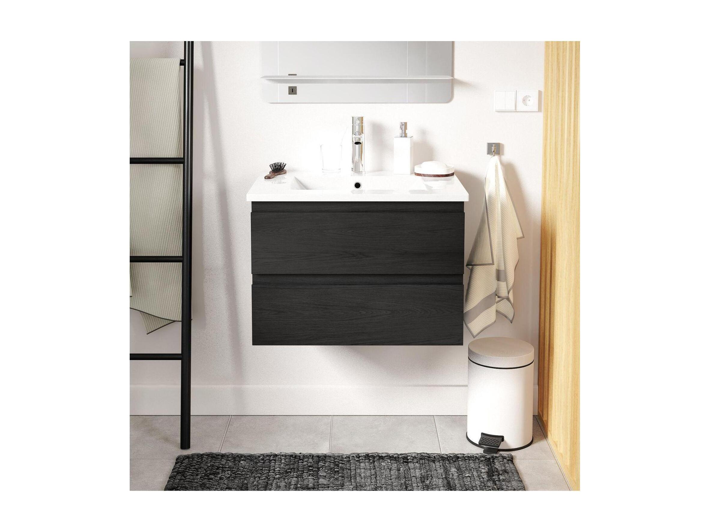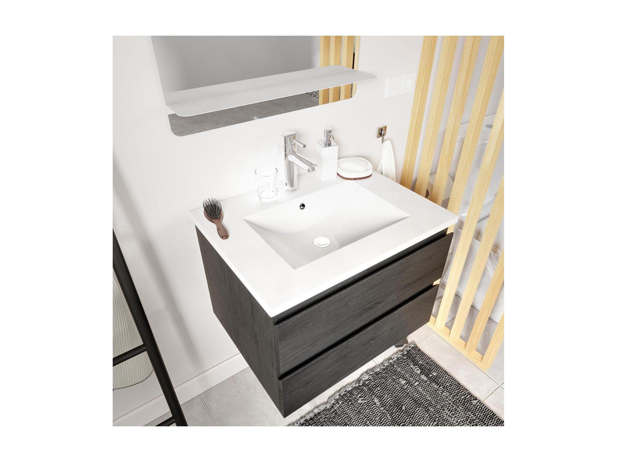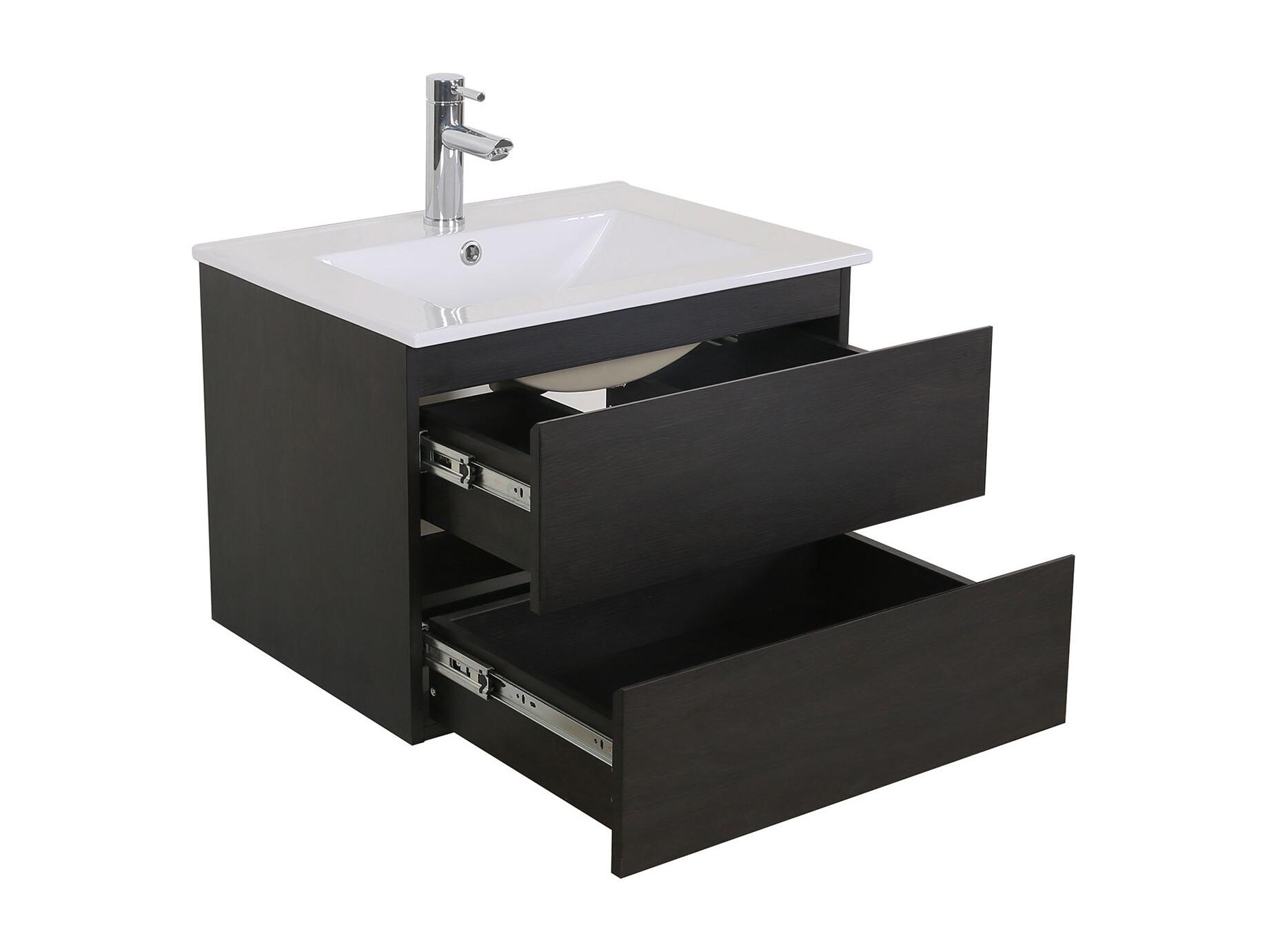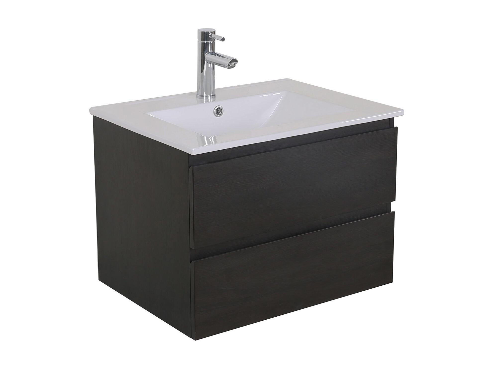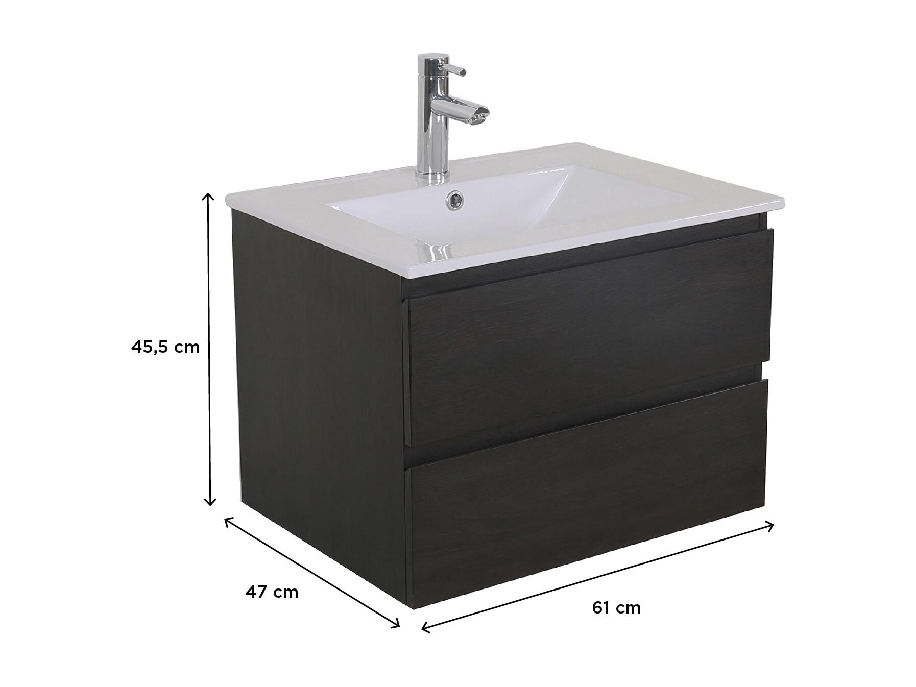 Set lavabo singolo 60cm con piano in ceramica e rubinetto nero SORRENTO