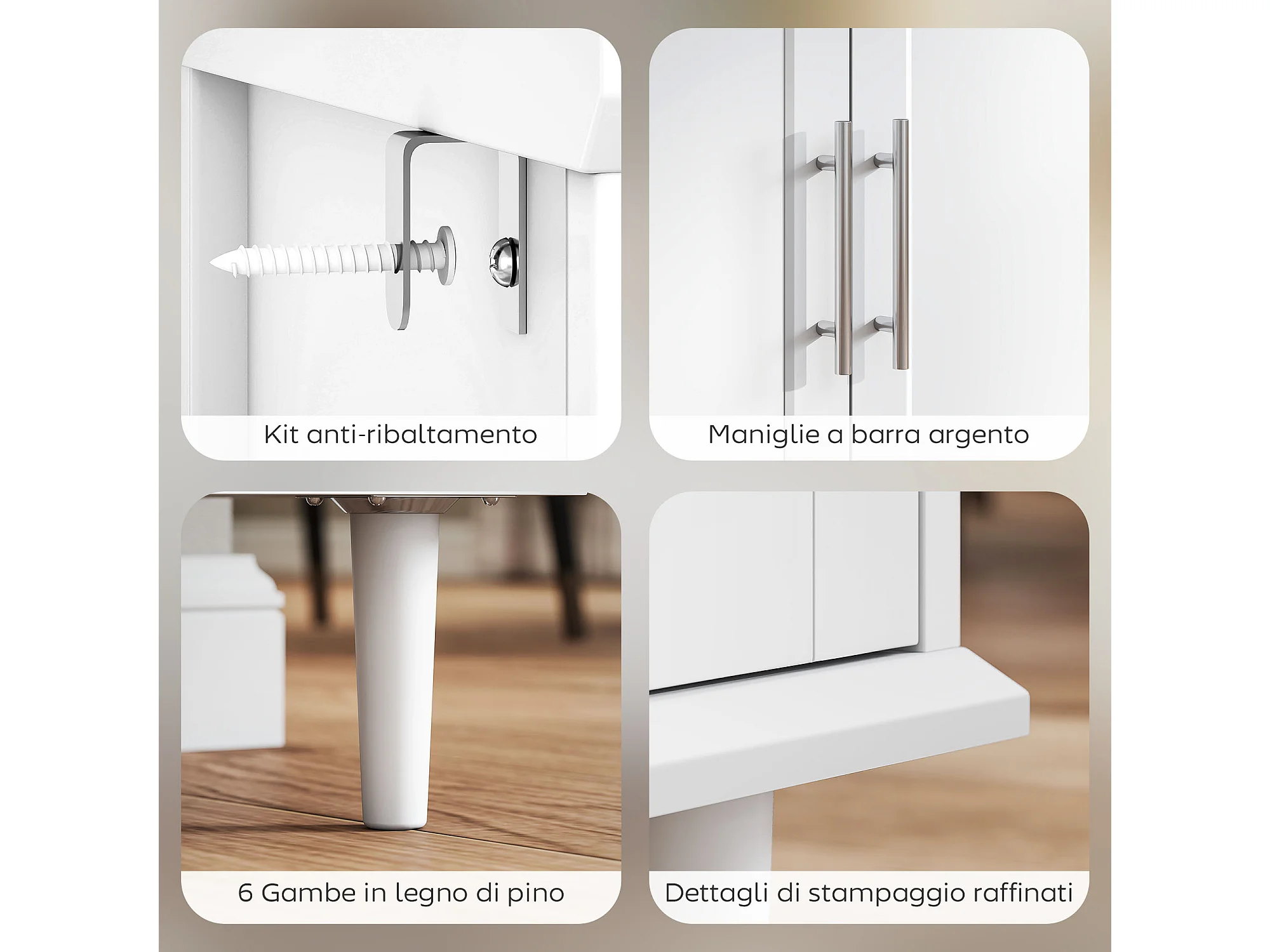Credenza moderna con ante ammortizzate e apertura a pressione bianco