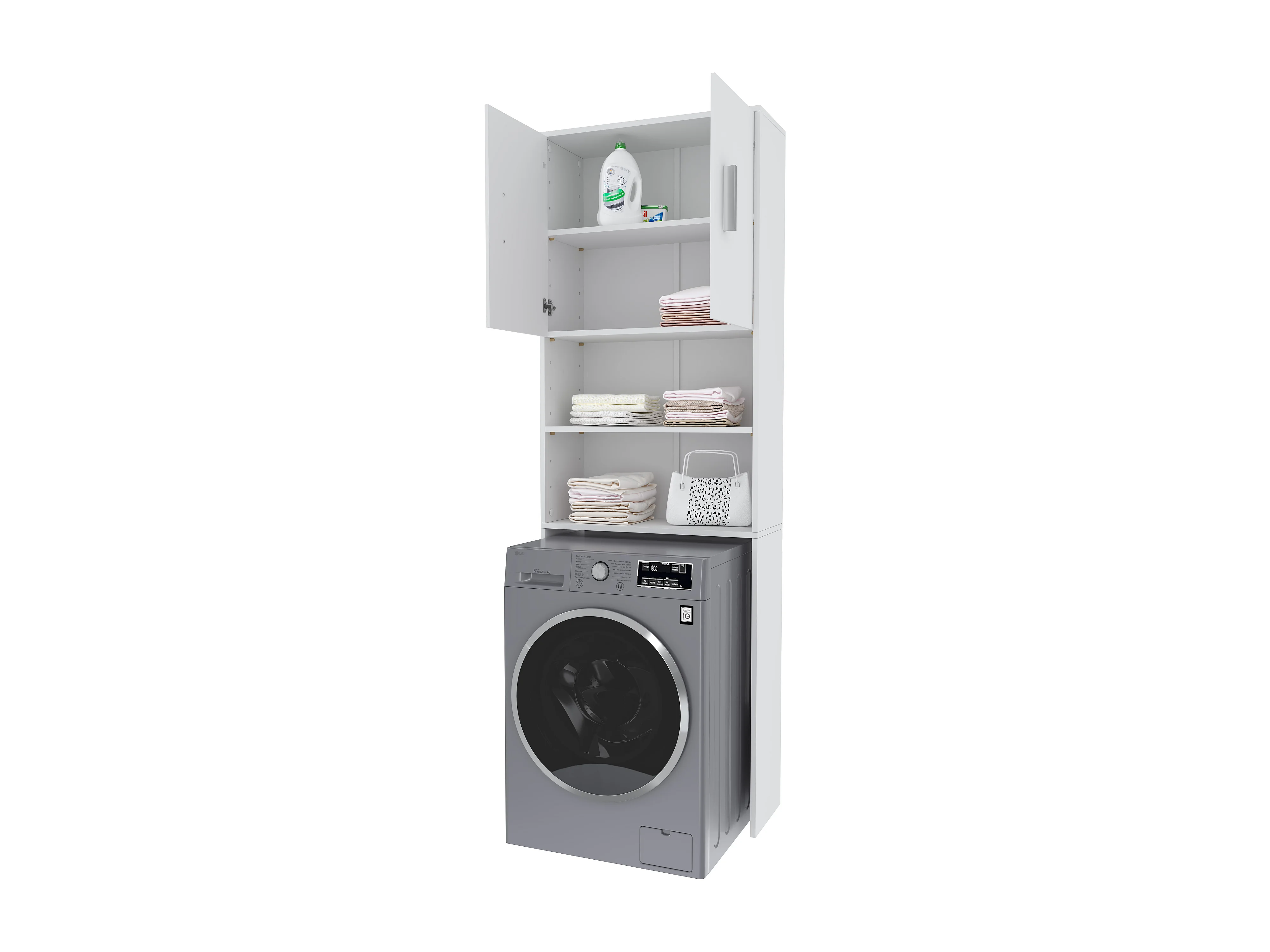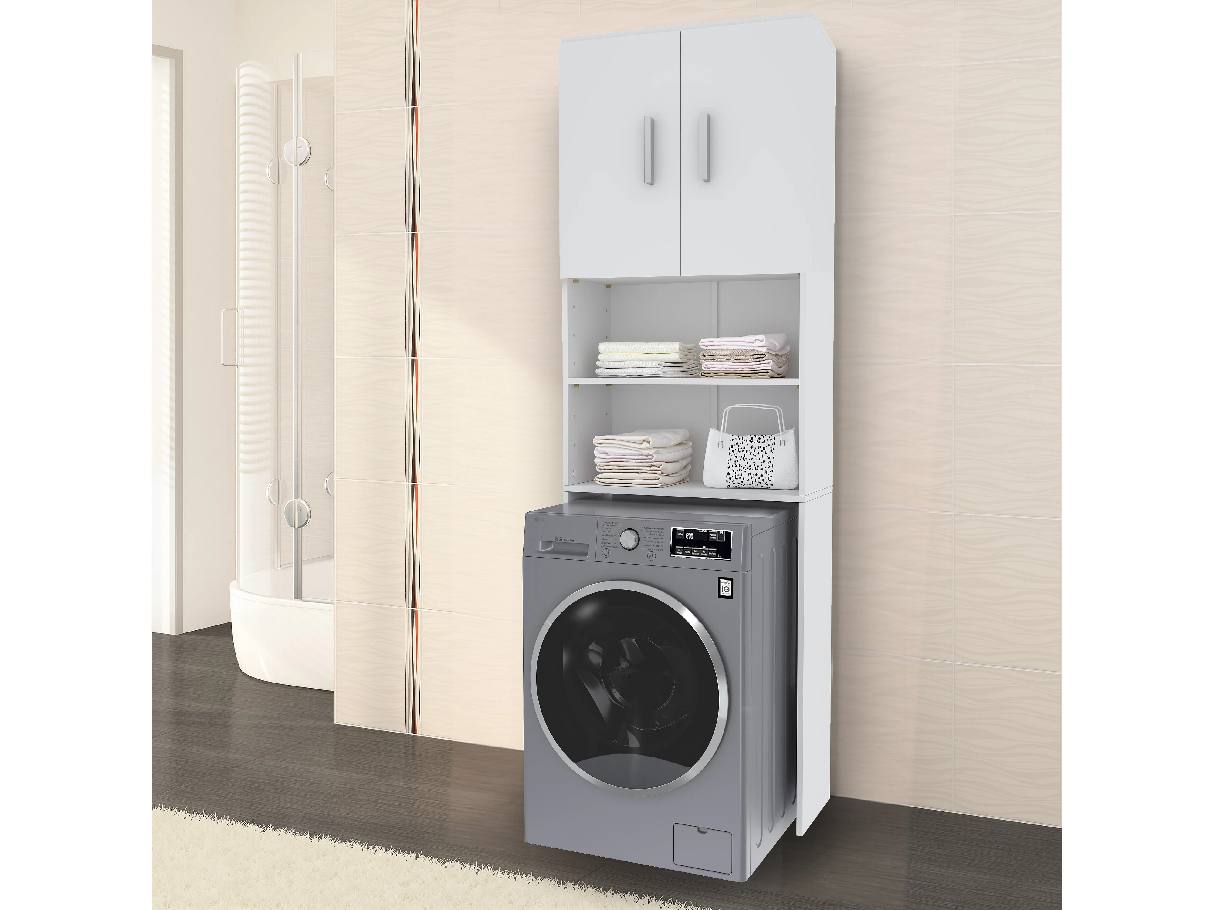 Mobile Sopra Lavatrice Asciugatrice Armadio Mobiletto Bagno Salvaspazio In Legno Armadietto Da Incasso A Colonna Con Ante Coprilavatrice 190 x 26 x 64 Cm Bianco