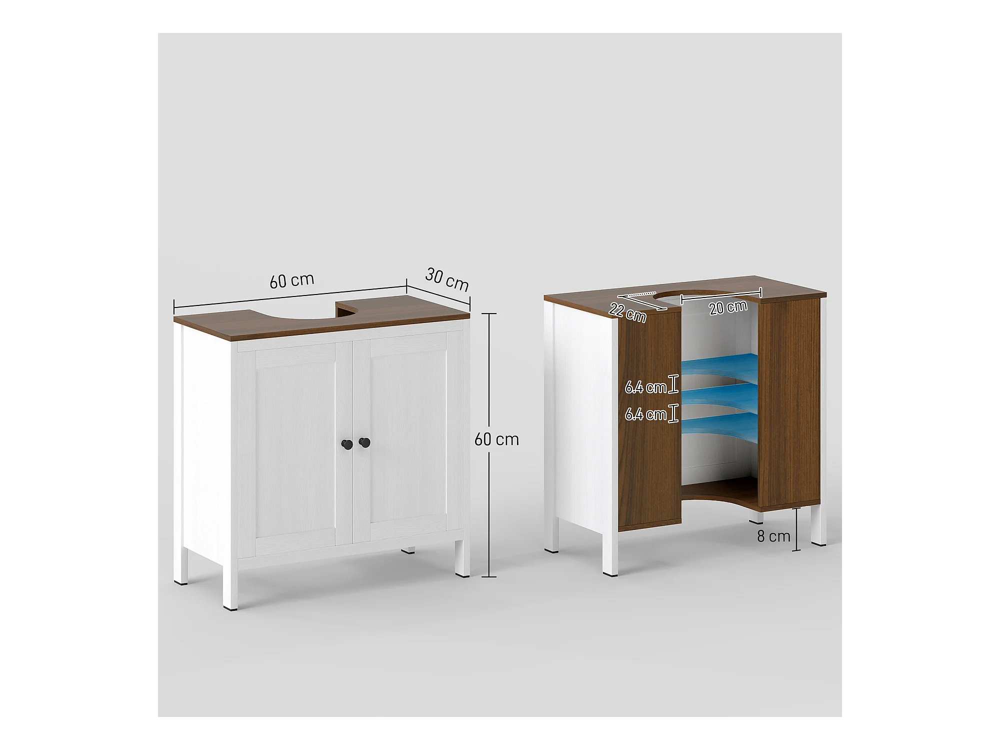Mobile sotto lavabo bagno con ripiano interno regolabile bianco e noce