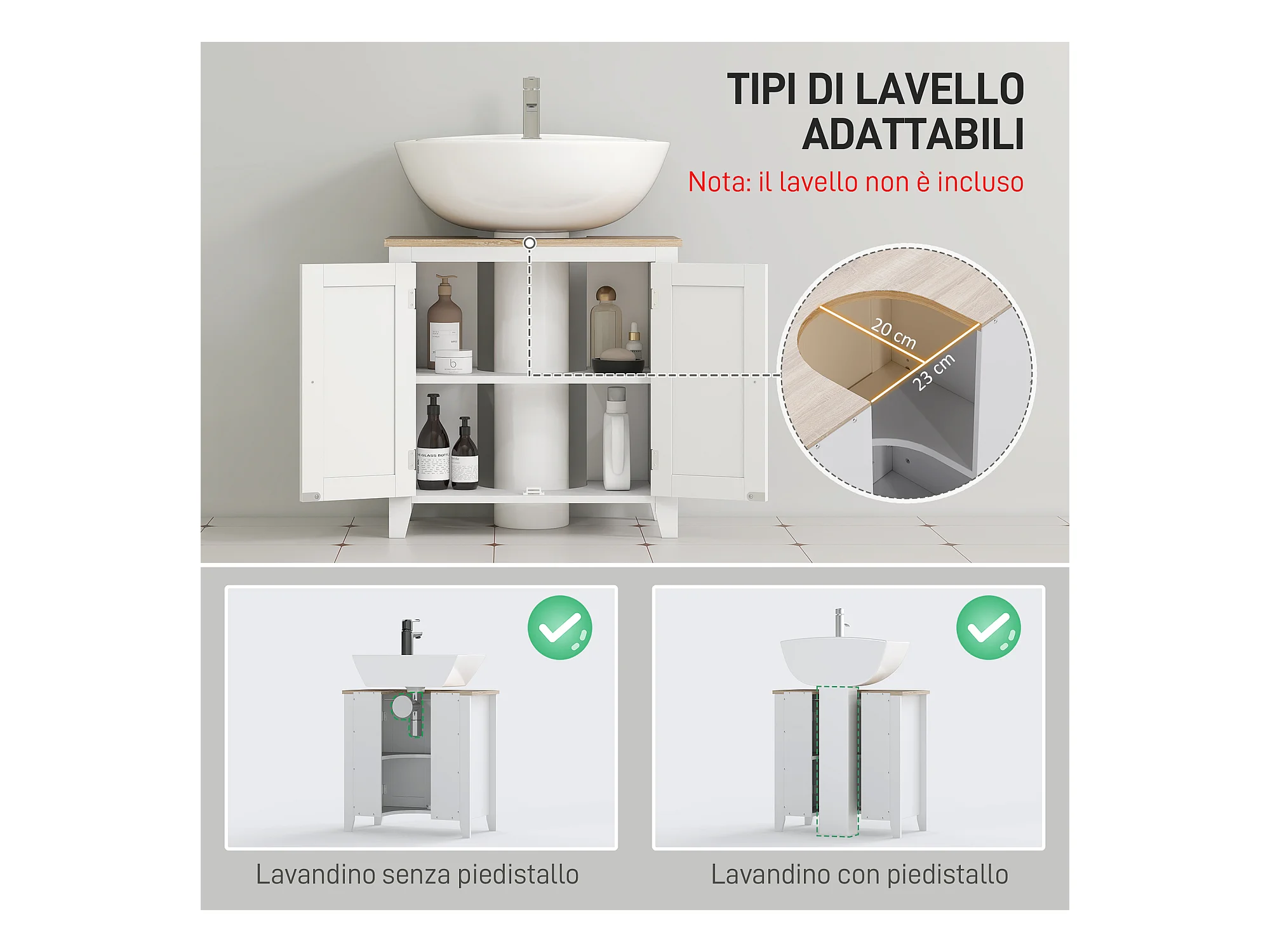 Mobile sottolavabo a 2 ante con ripiano regolabile in legno bianco