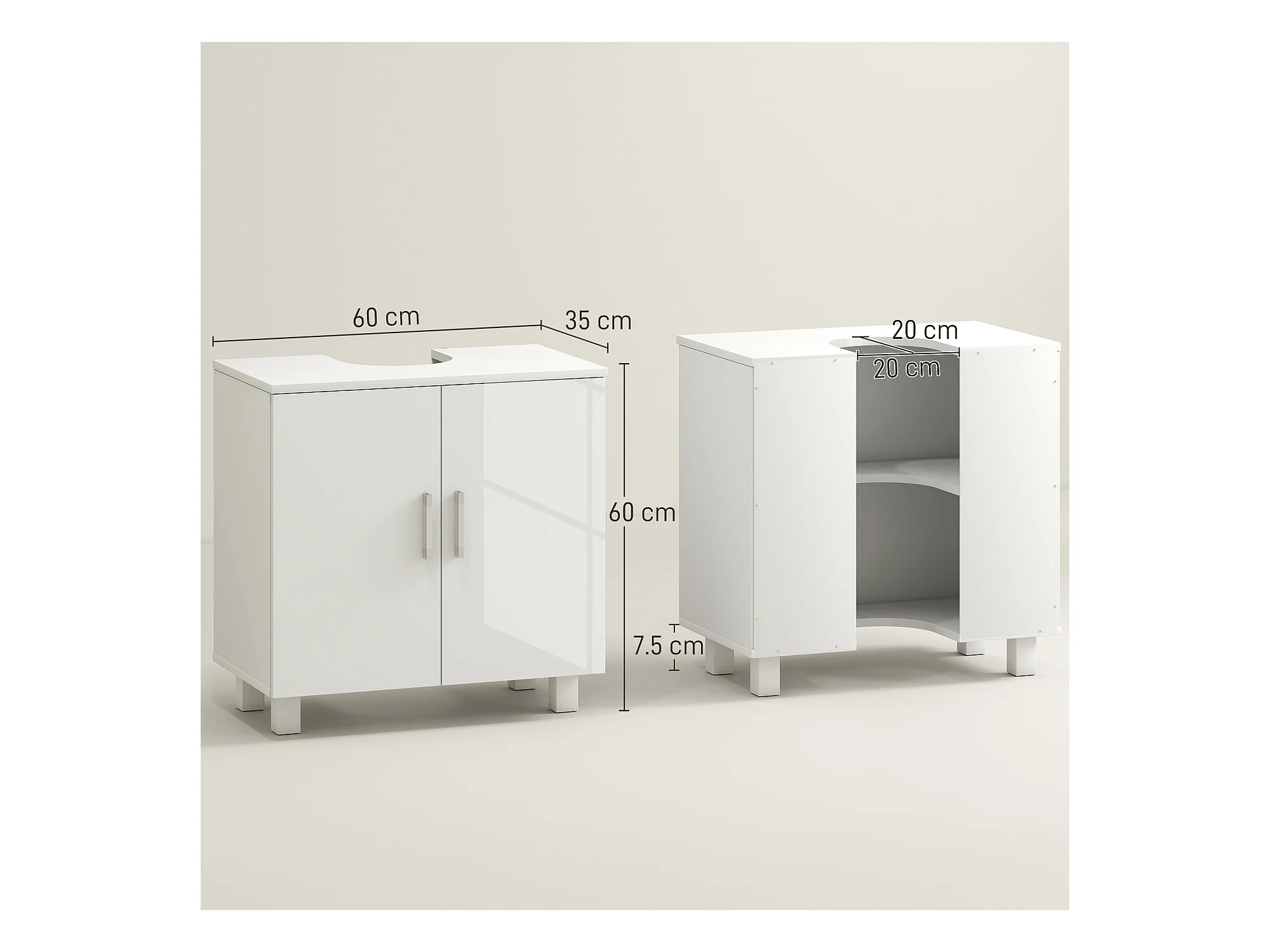 Mobiletto da bagno sottolavabo regolabile a 2 ante bianco