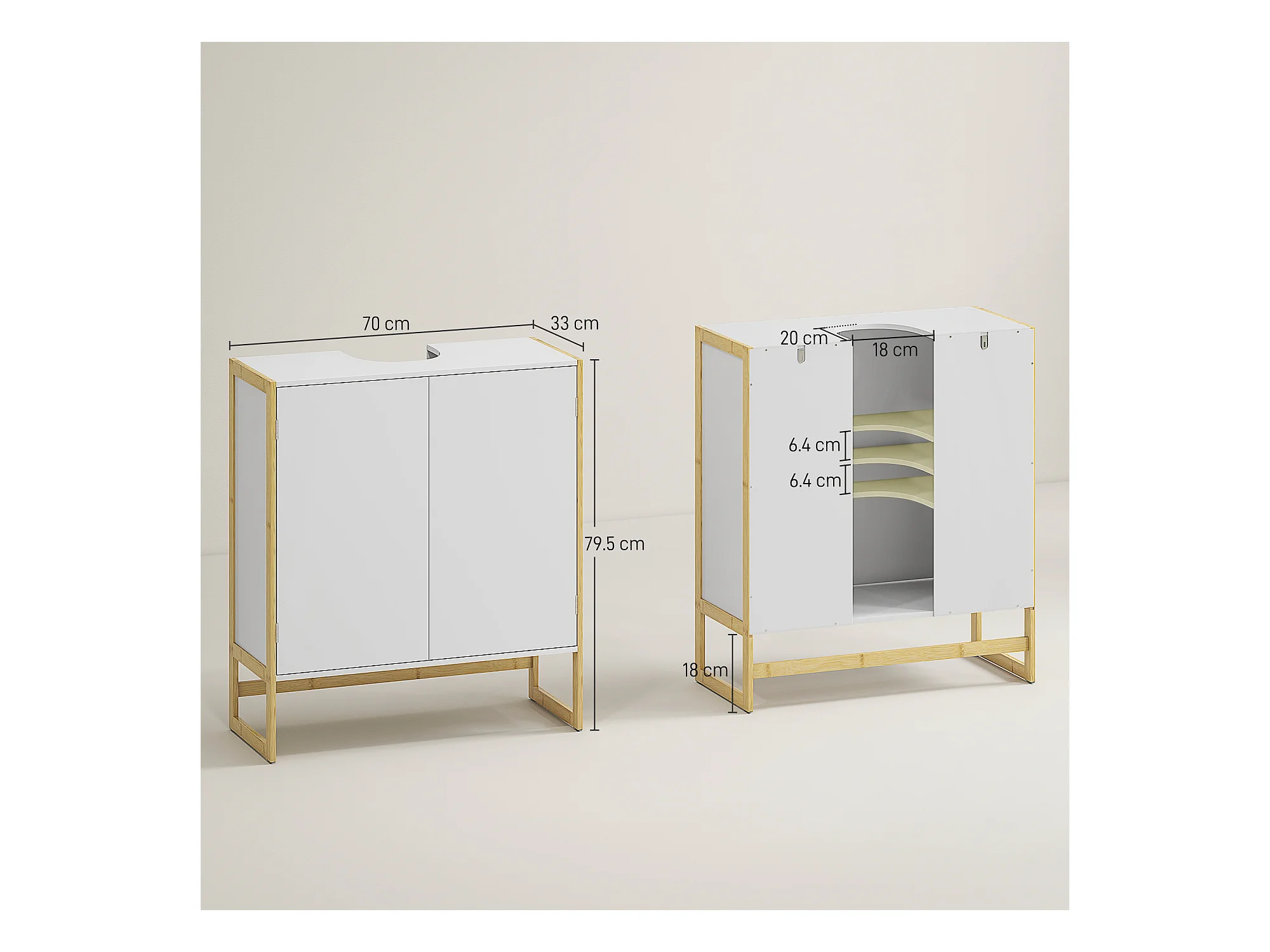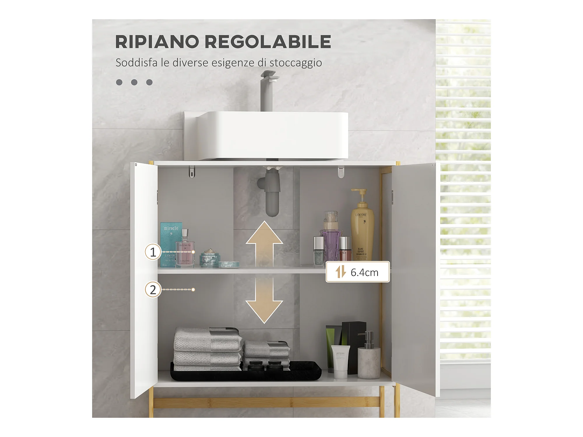 Mobiletto da bagno sottolavabo regolabile a 2 ante bianco
