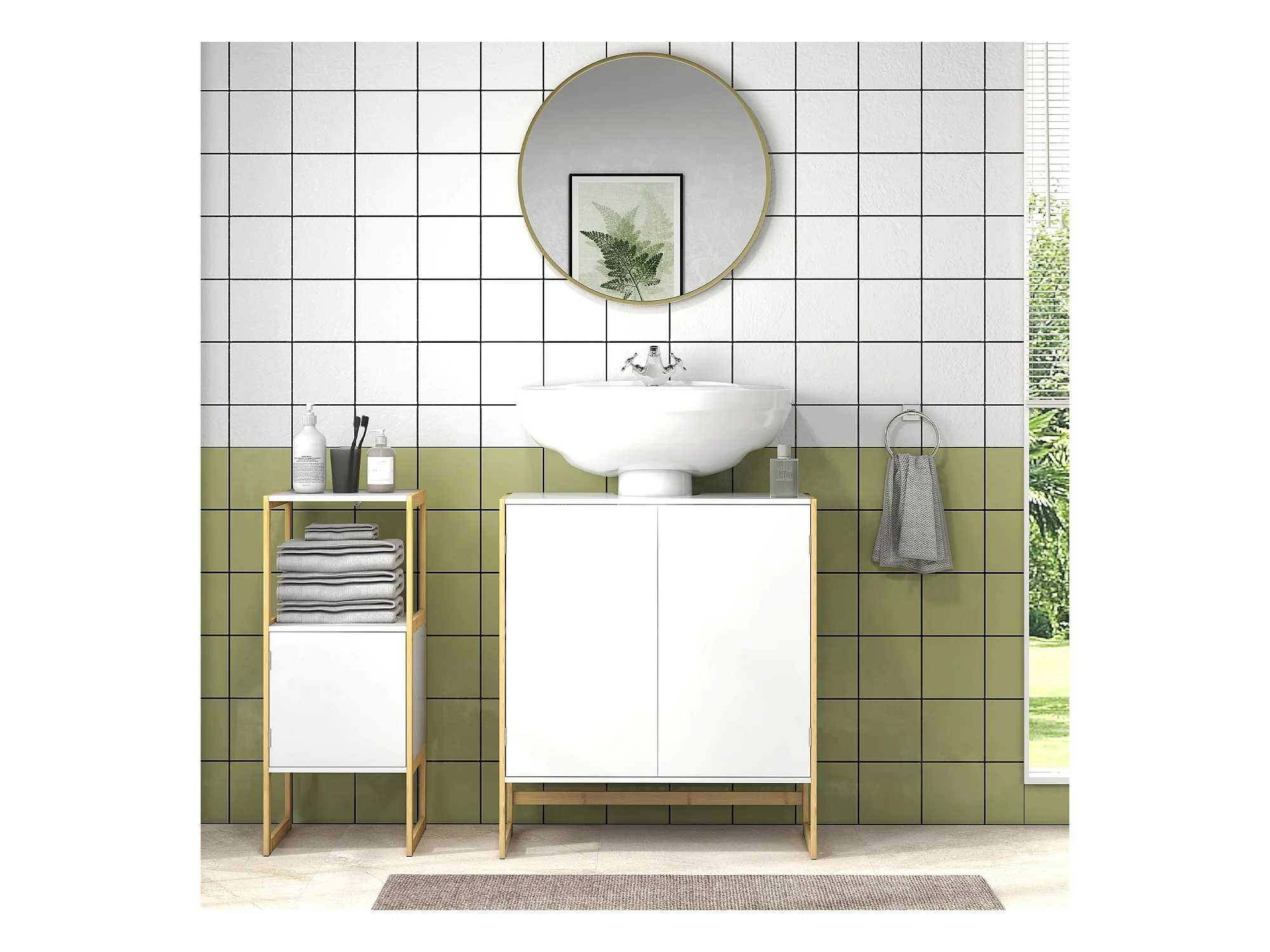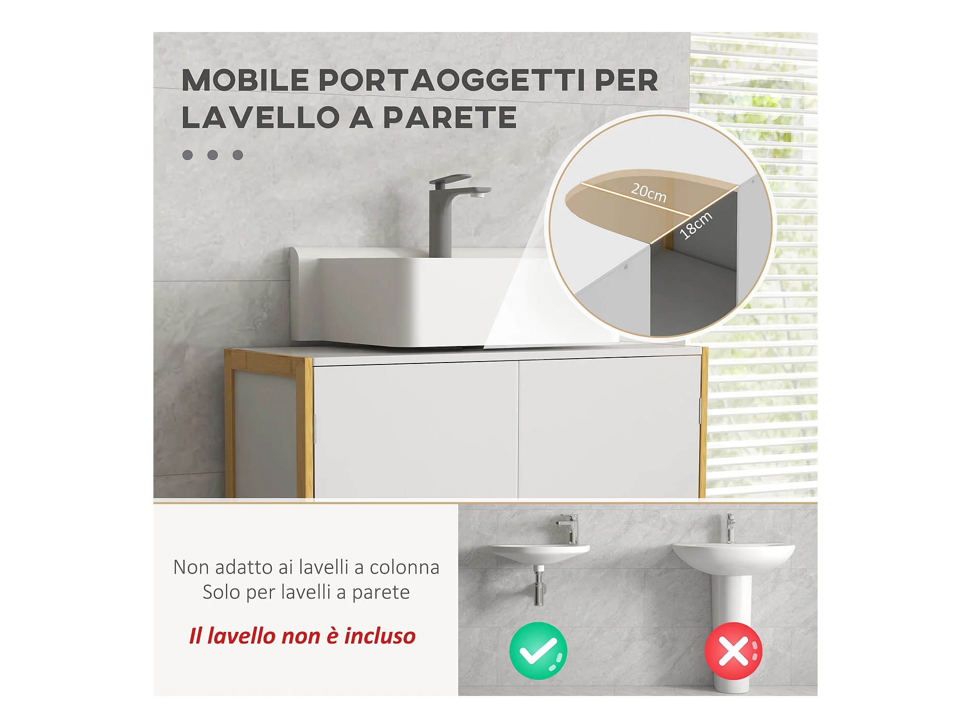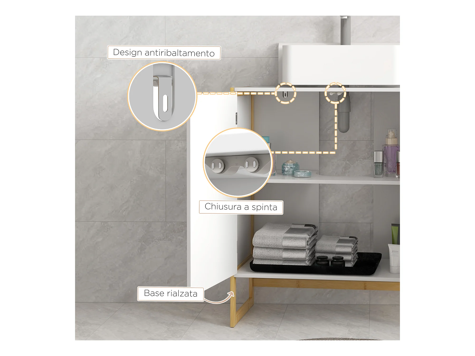 Mobile sottolavabo con 2 ante a pressione in legno bambù e mdf bianco