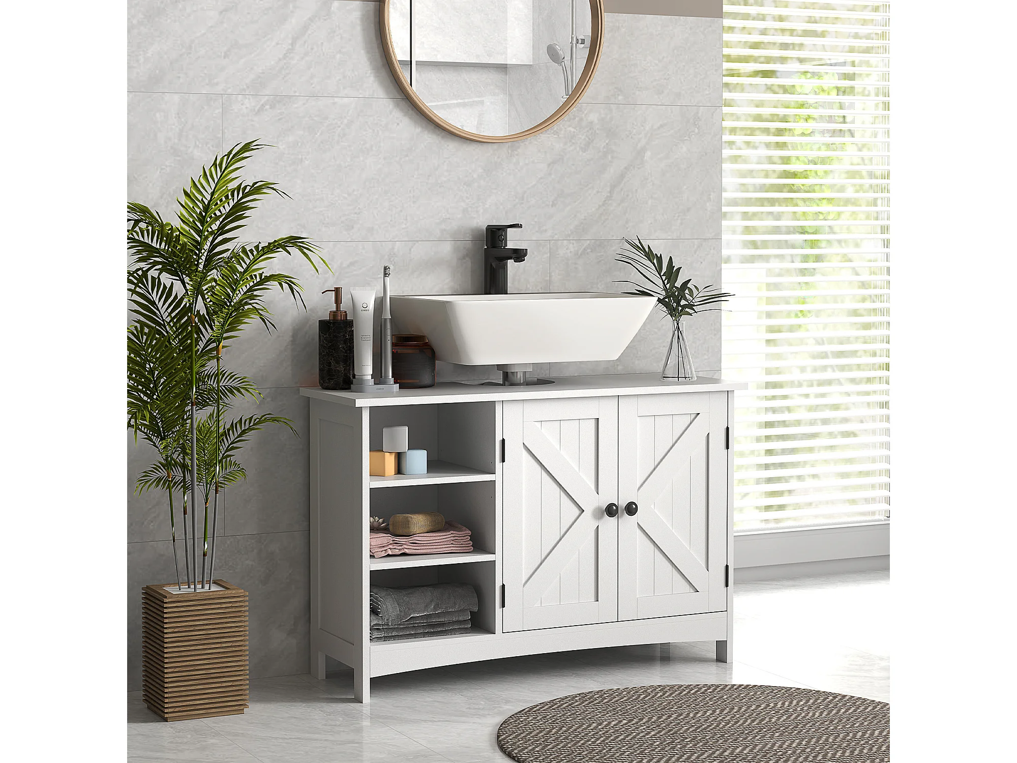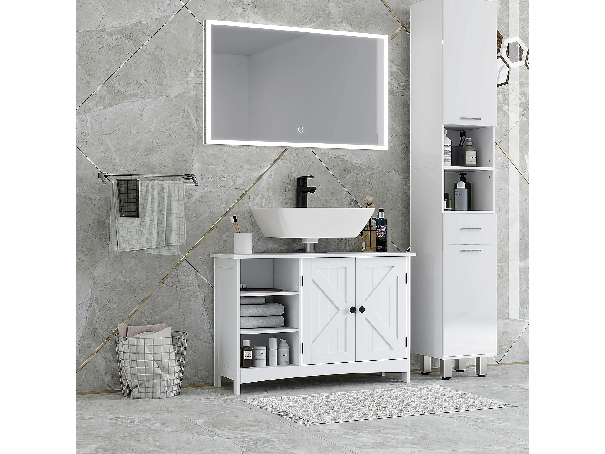 Mobile sottolavabo a 2 ante con ripiano regolabile in legno bianco