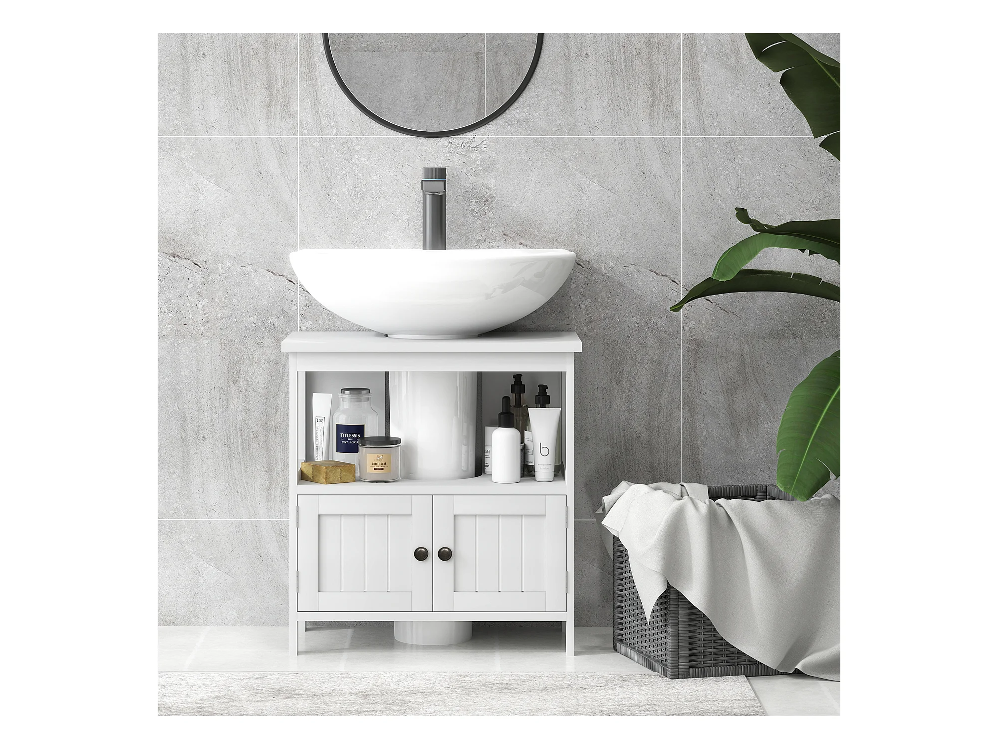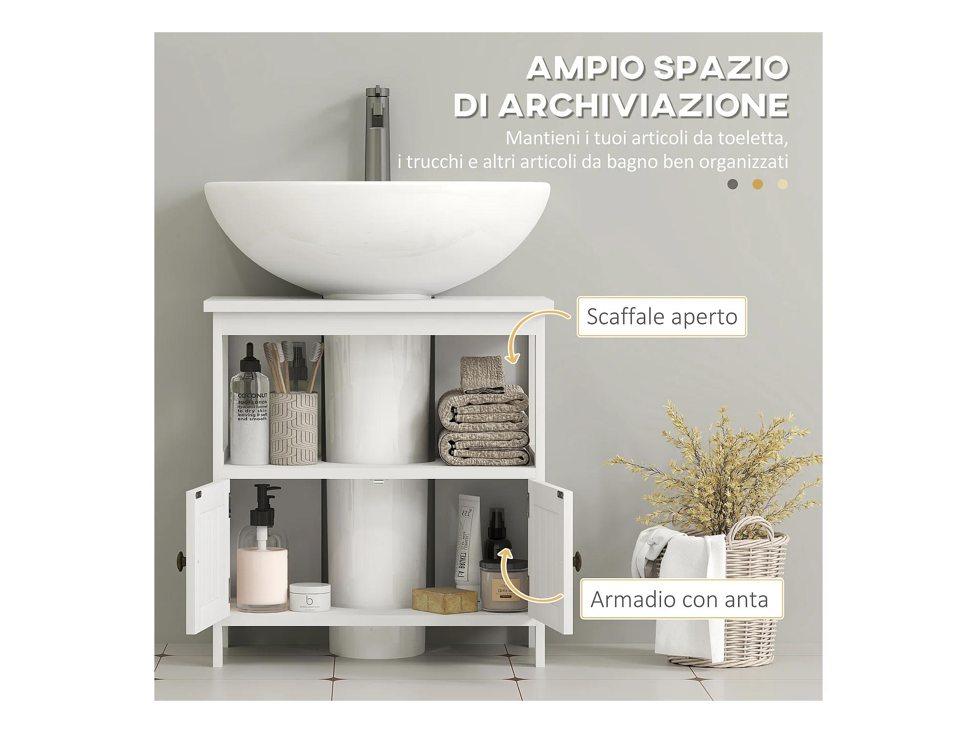 Mobile sottolavabo a 2 ante con ripiano regolabile in legno bianco