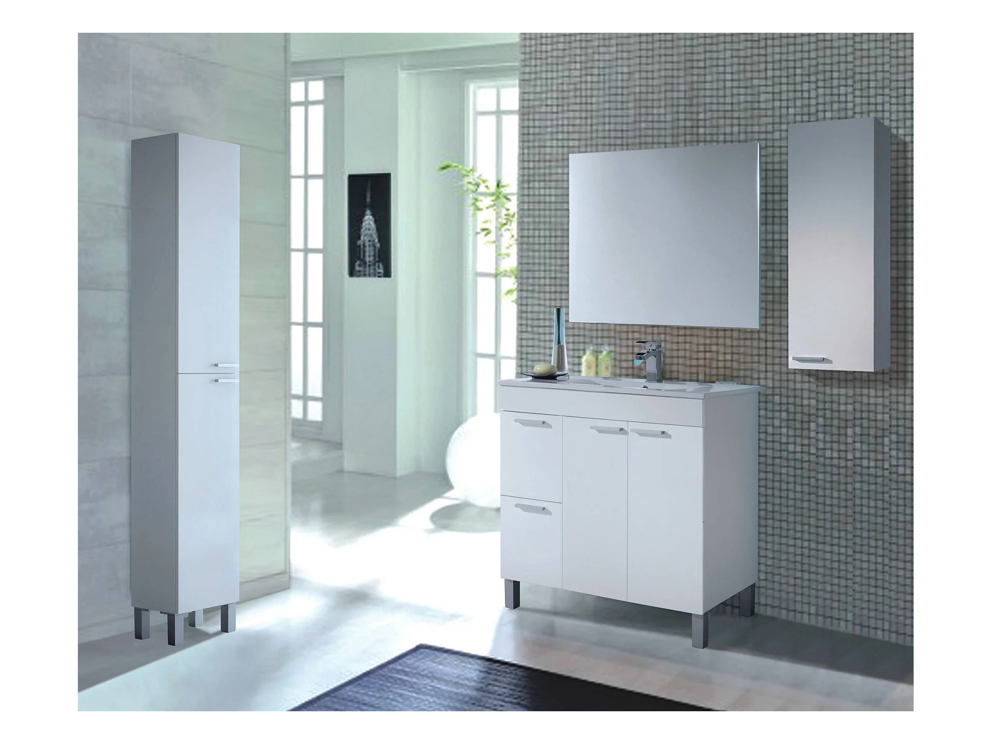 Dmora - Mobile sottolavabo Elleboro, 80x45h86 cm, Bianco lucido