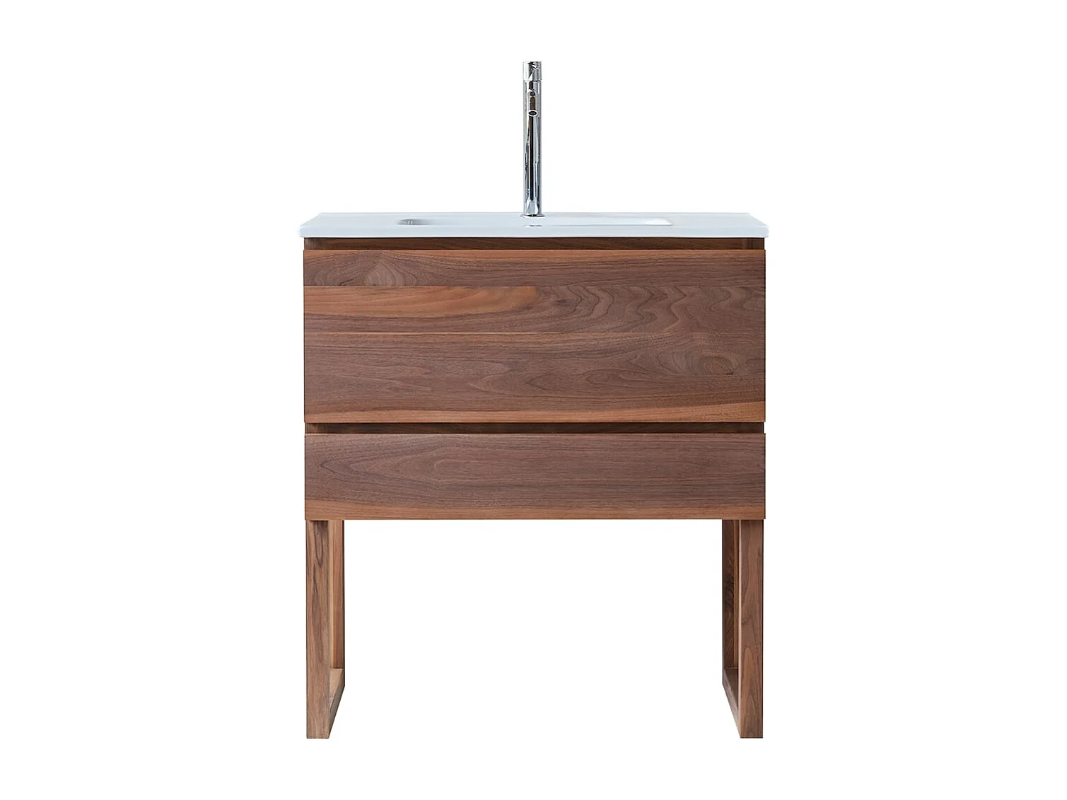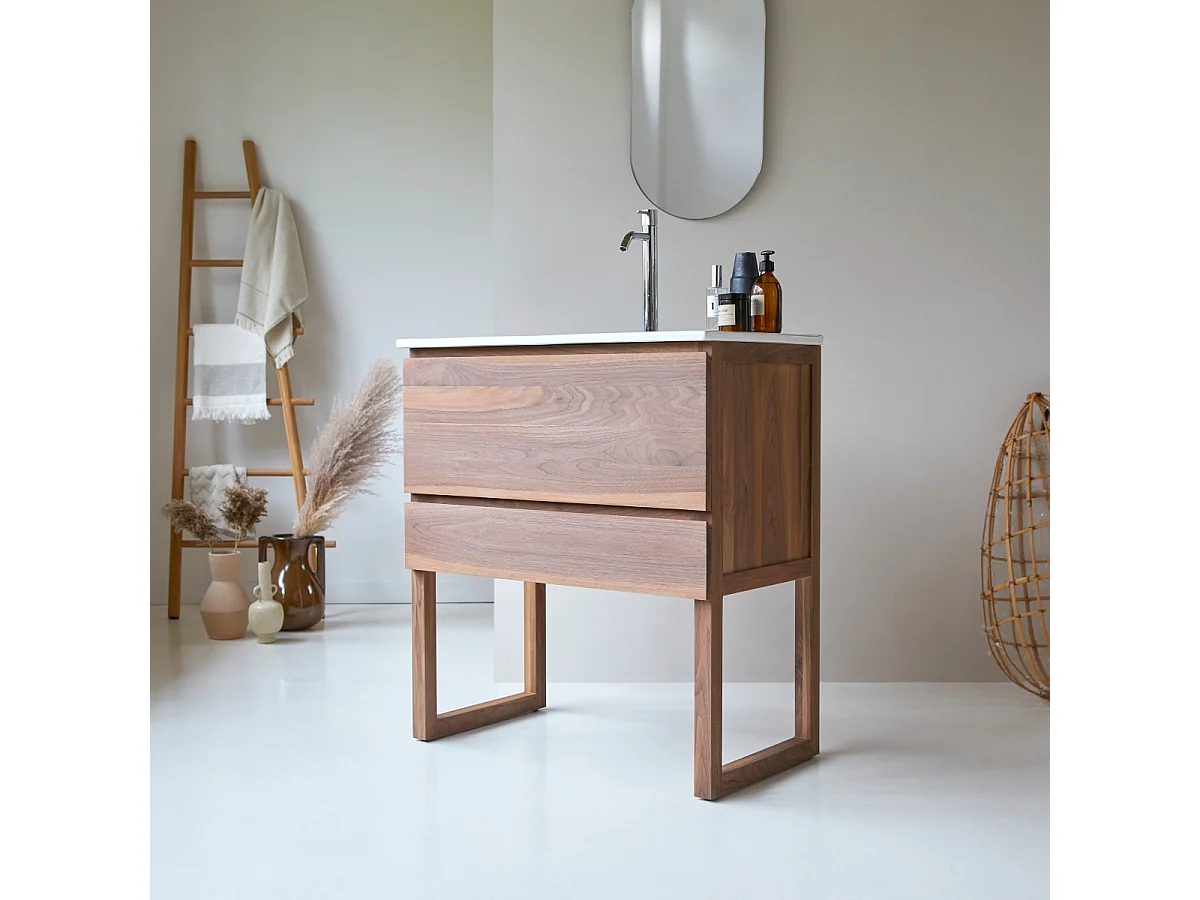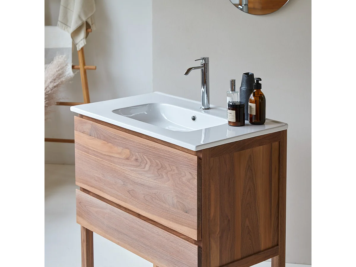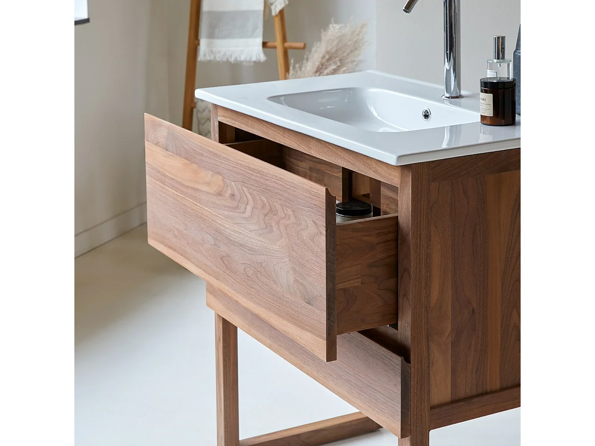 Mobile sottolavabo in legno di noce massello e lavabo in ceramica 80 Edgar