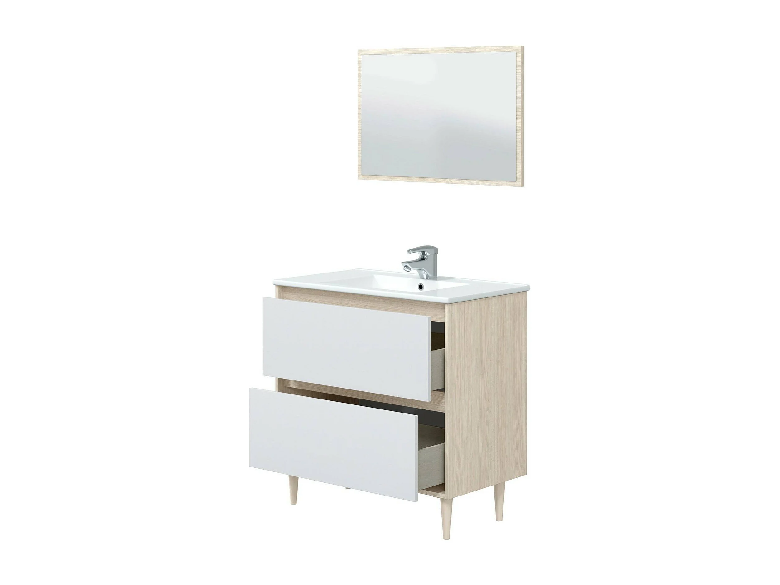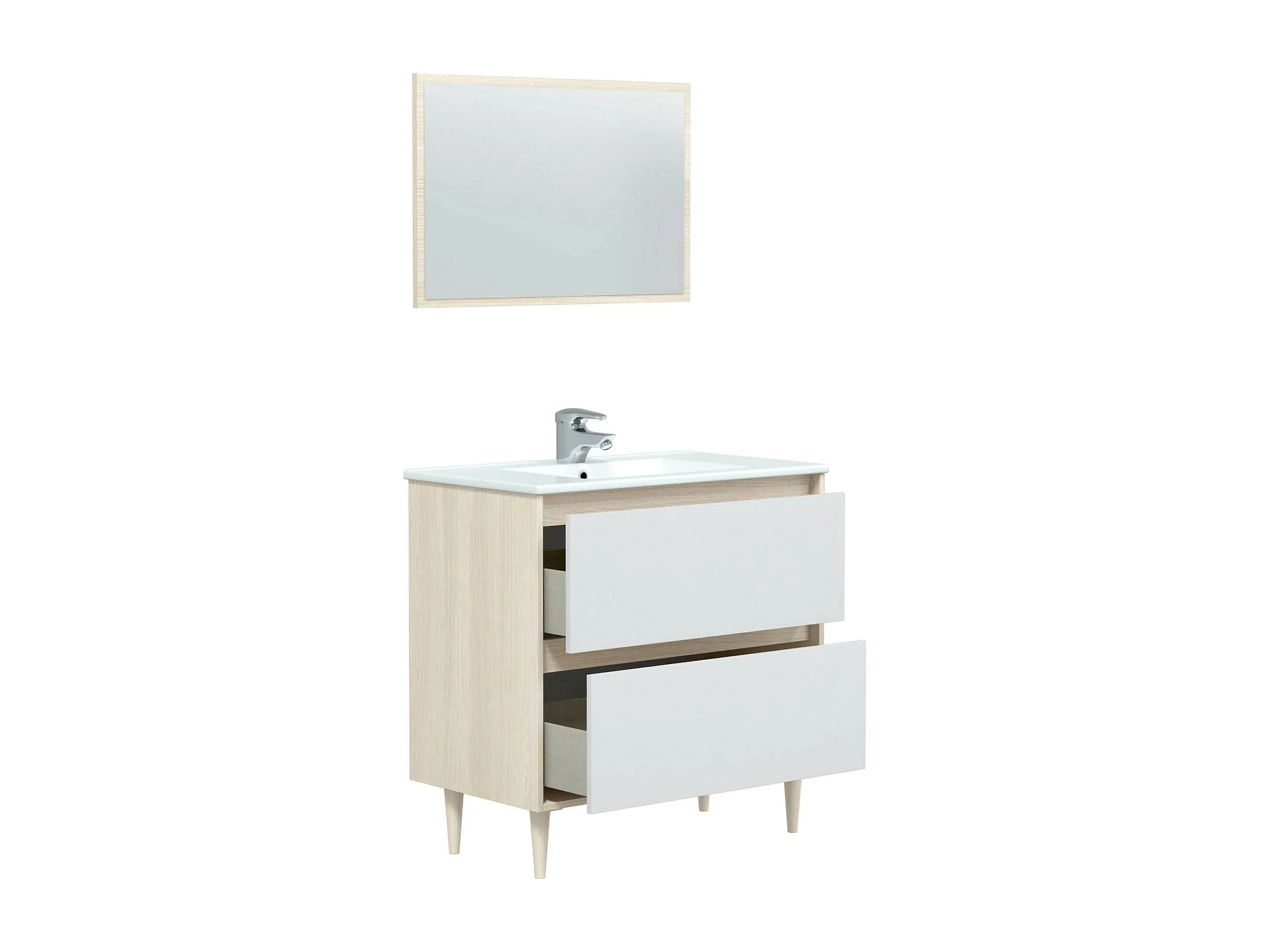Dmora Mobile Sottolavabo Yazoo 45x80x80h cm Bianco Lucido Specchio Incluso 2 Cassetti, Impermeabile, con Inserto Salva Sifone