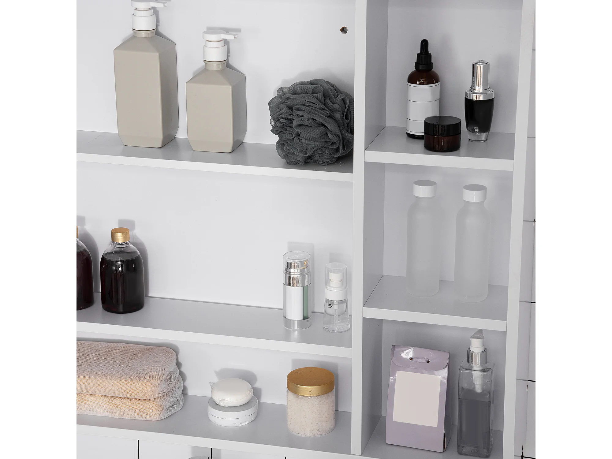 Mobile specchiera bagno con mensole e armadietto bianco