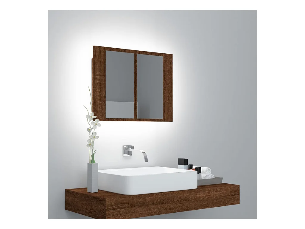 Armadietto Specchio con LED Rovere Marrone 80x12x45cm Acrilico