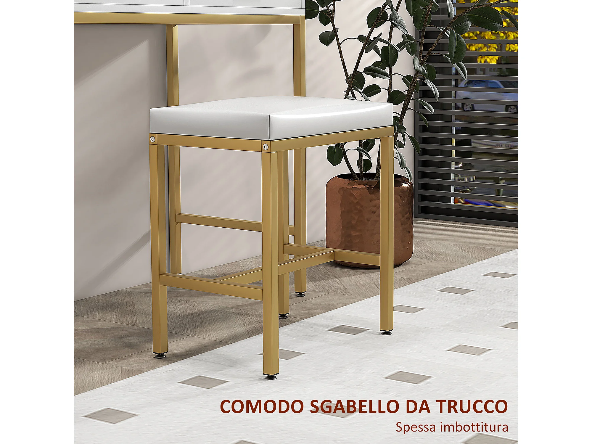 Mobile da trucco con specchio a scomparsa sgabello e cassetto bianco